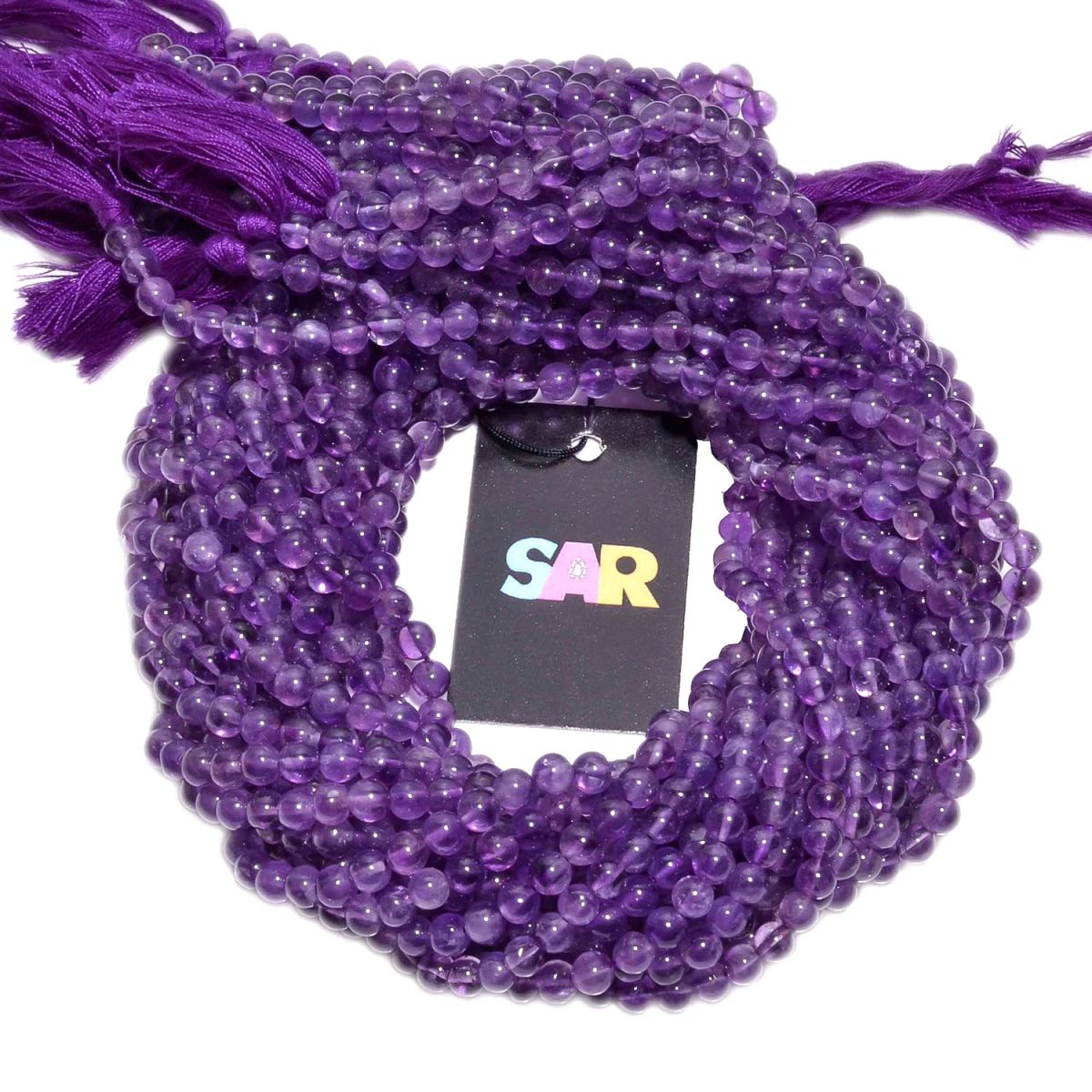 Brazil Amethyst 4-6mm Smooth Round Ball Beads Strand, Amethyst Plain Round Ball Beads, Amethyst Beads Strand