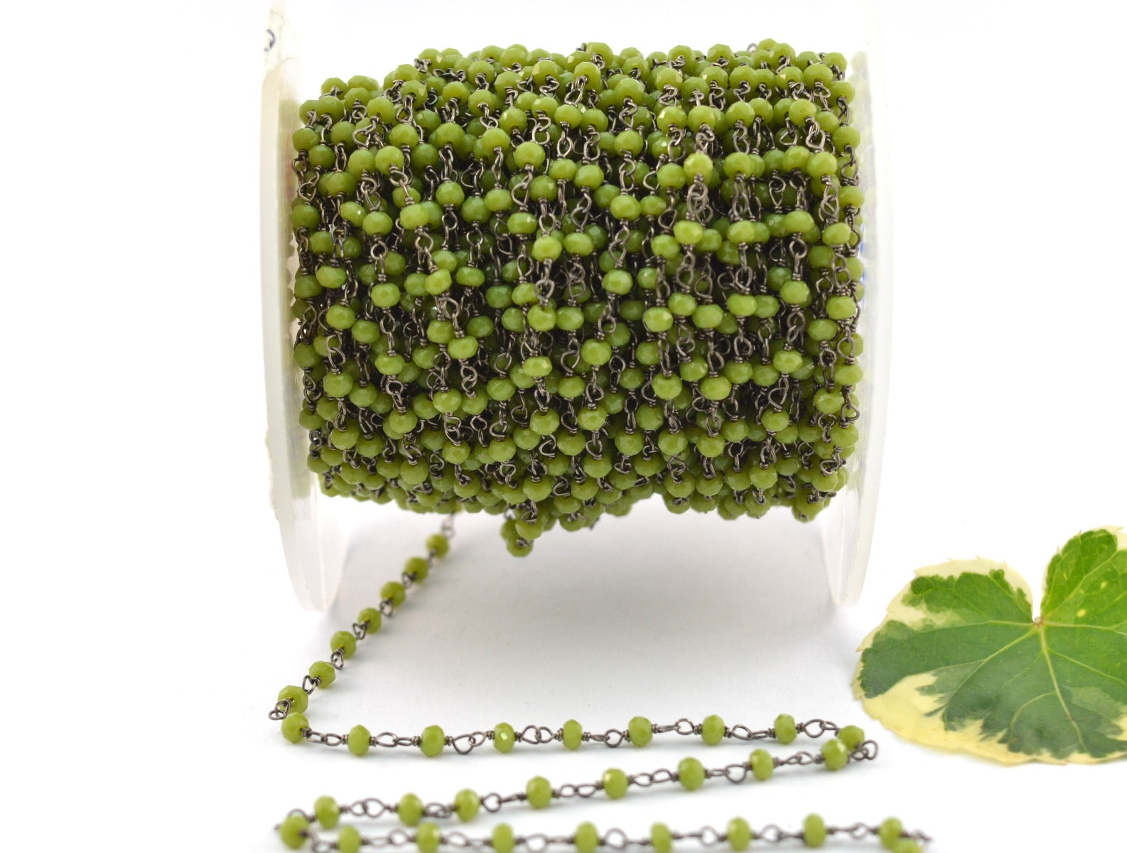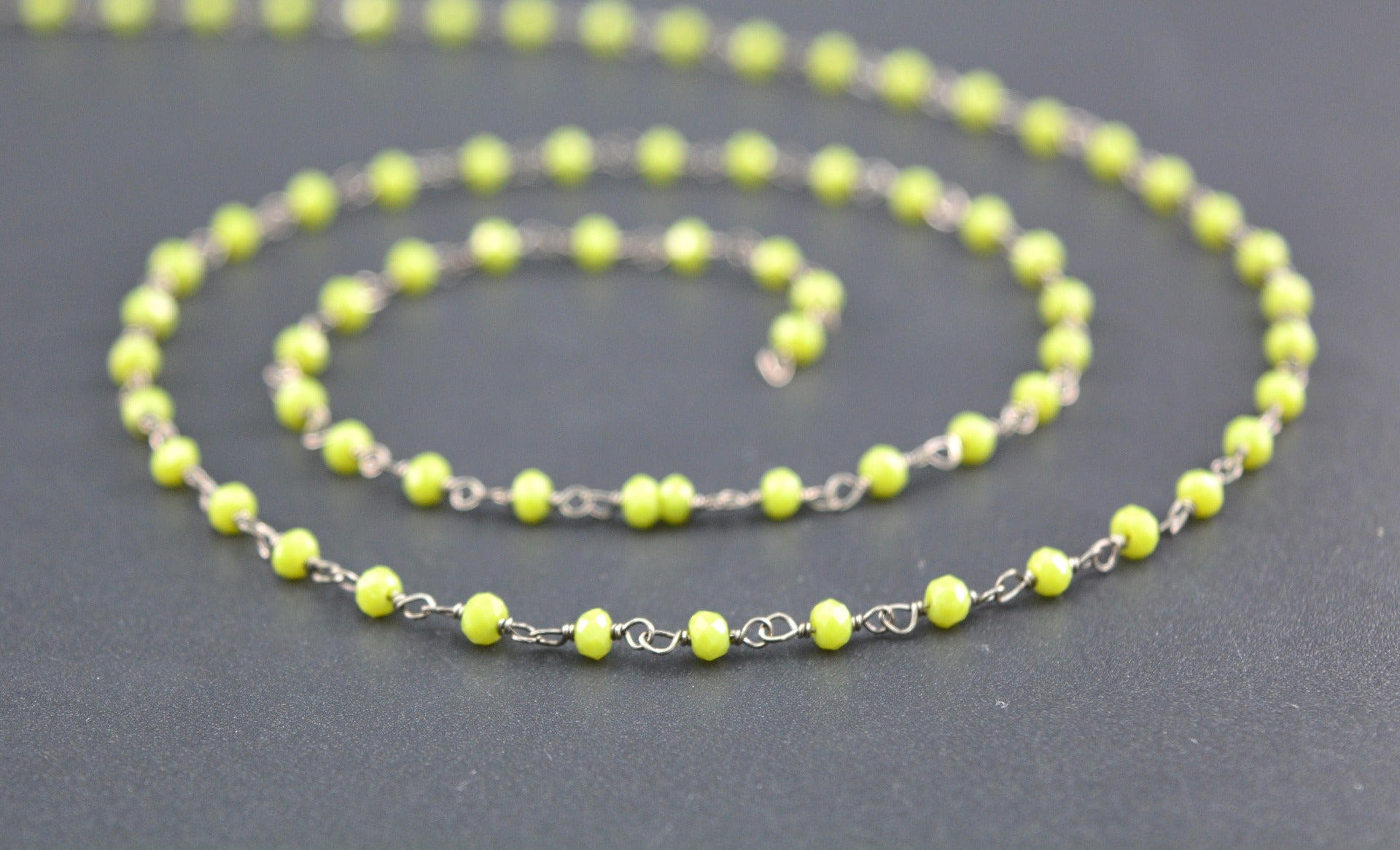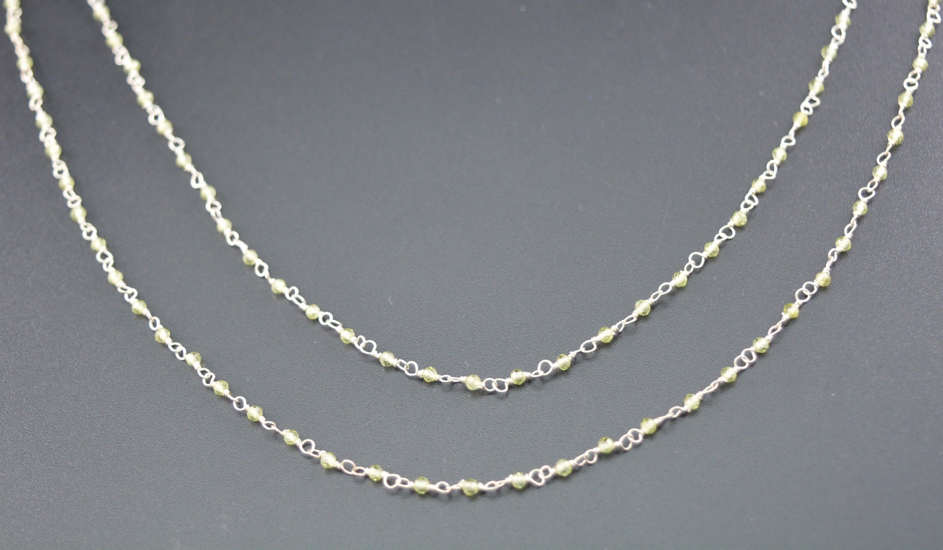 Chalcedony Rosary Chain - 925 Silver Gold, 2mm