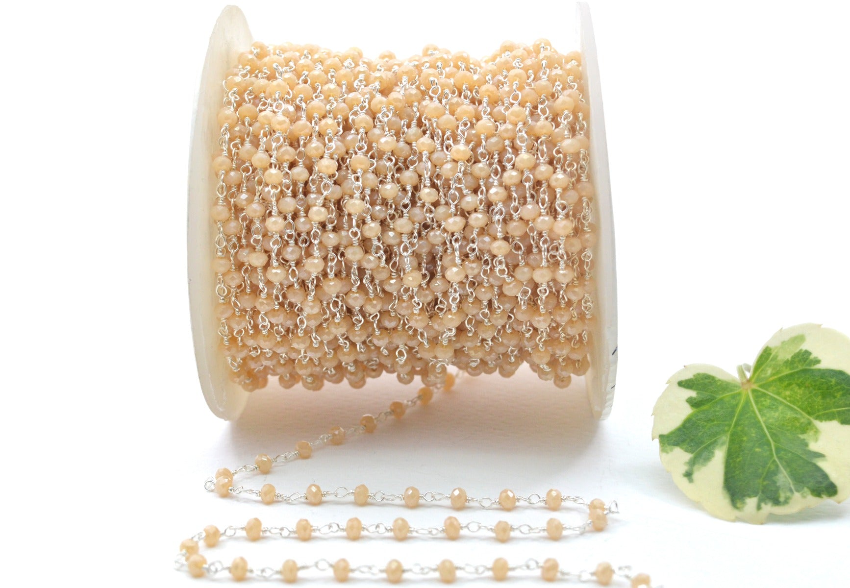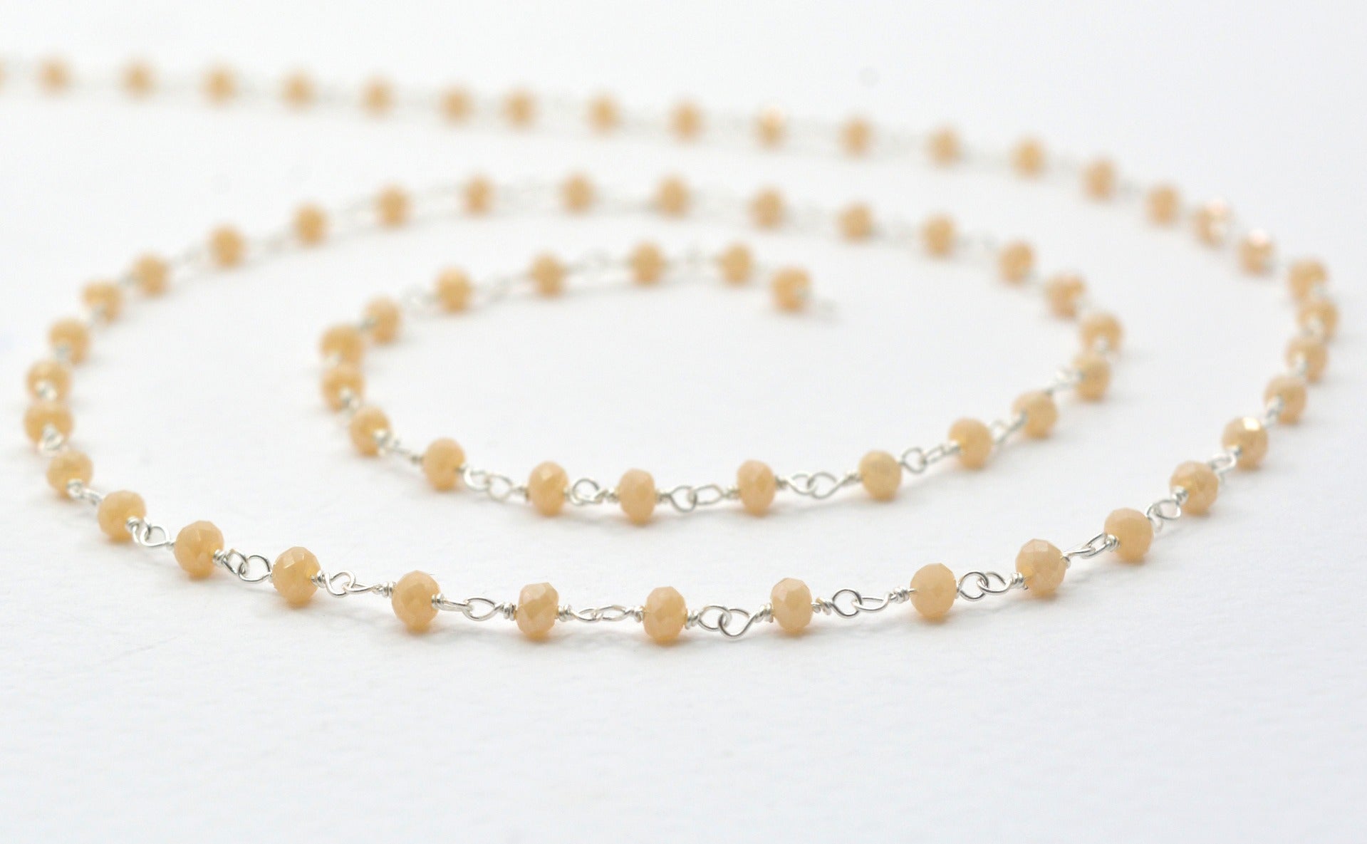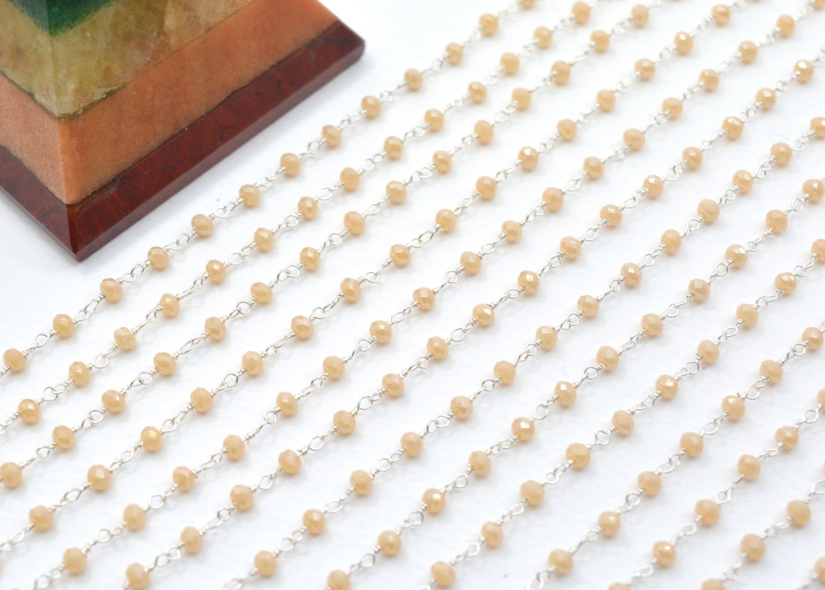 The gorgeous handmade 925 Sterling Silver Gold Rosary Chain Studded With Peach Chalcedony Coated Stone is perfect finding for DIY jewelry making and can be used in multiple different ways and design.