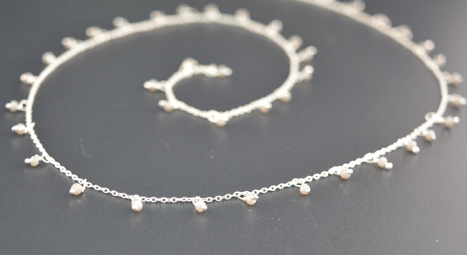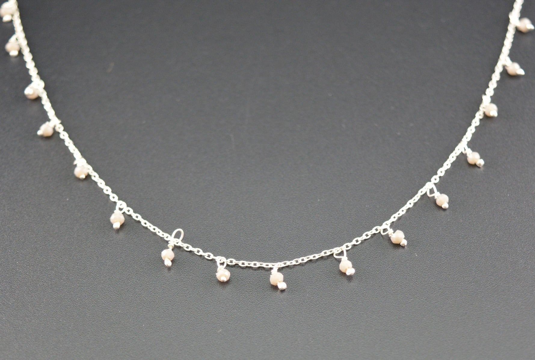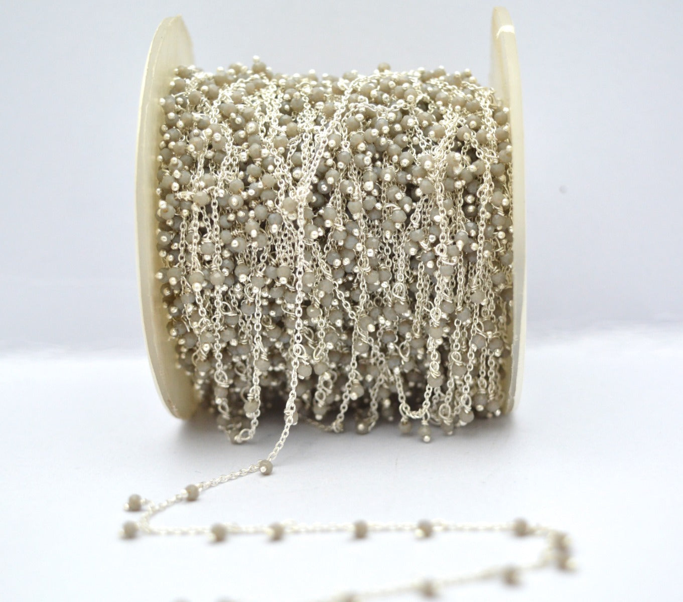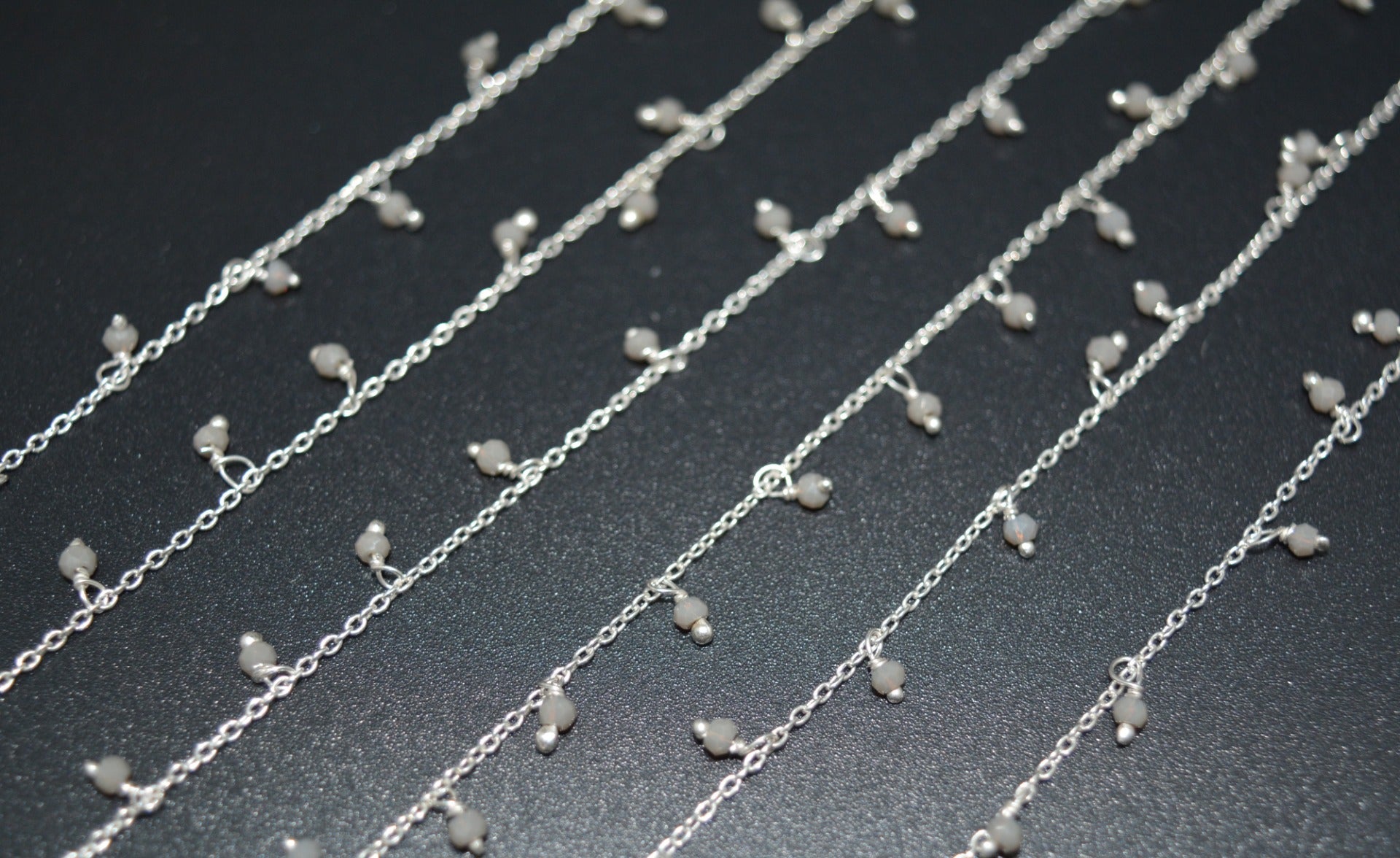 Chalcedony Rosary Chain - 925 Silver Gold, 2mm #6