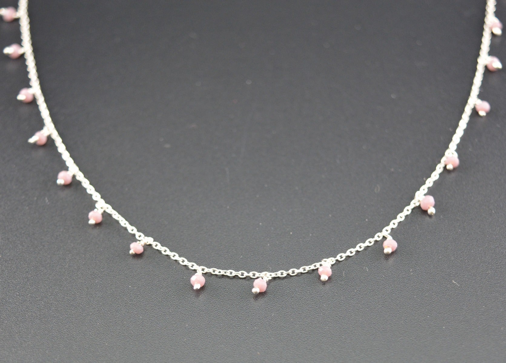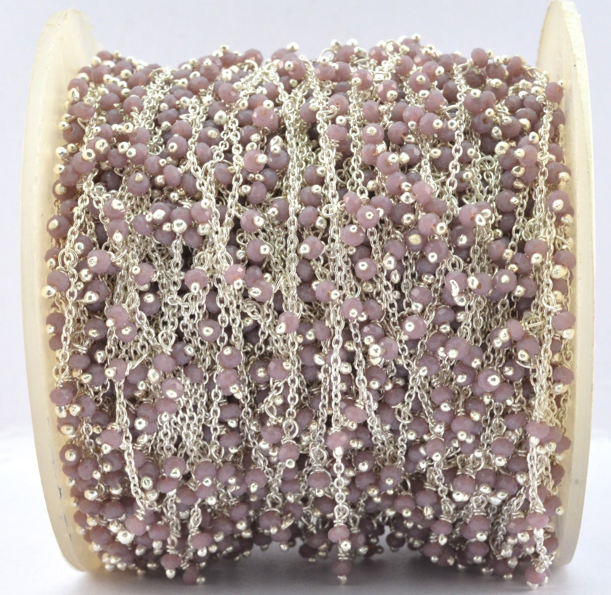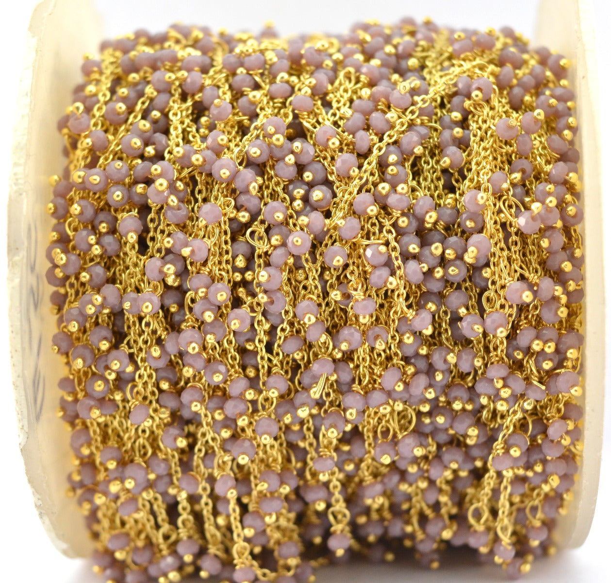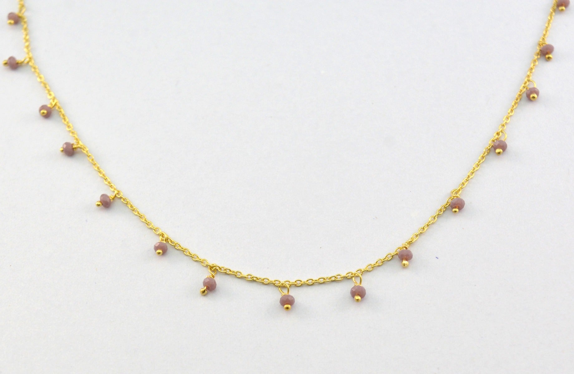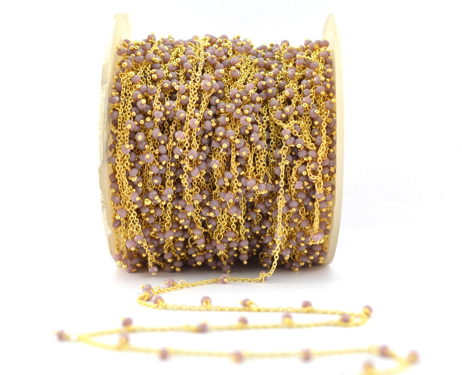 Chalcedony Rosary Chain - 925 Silver Gold, 2mm #7