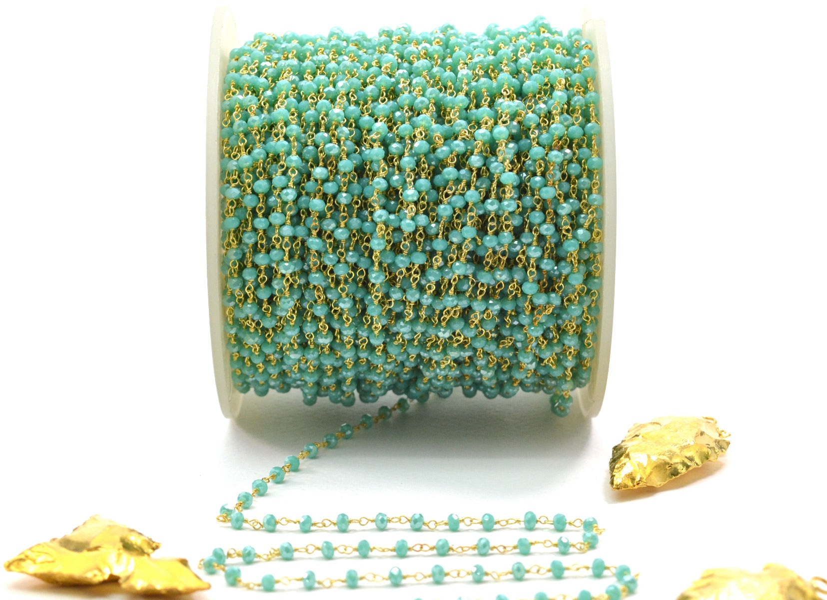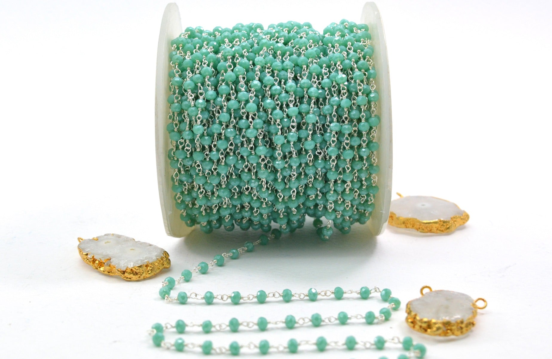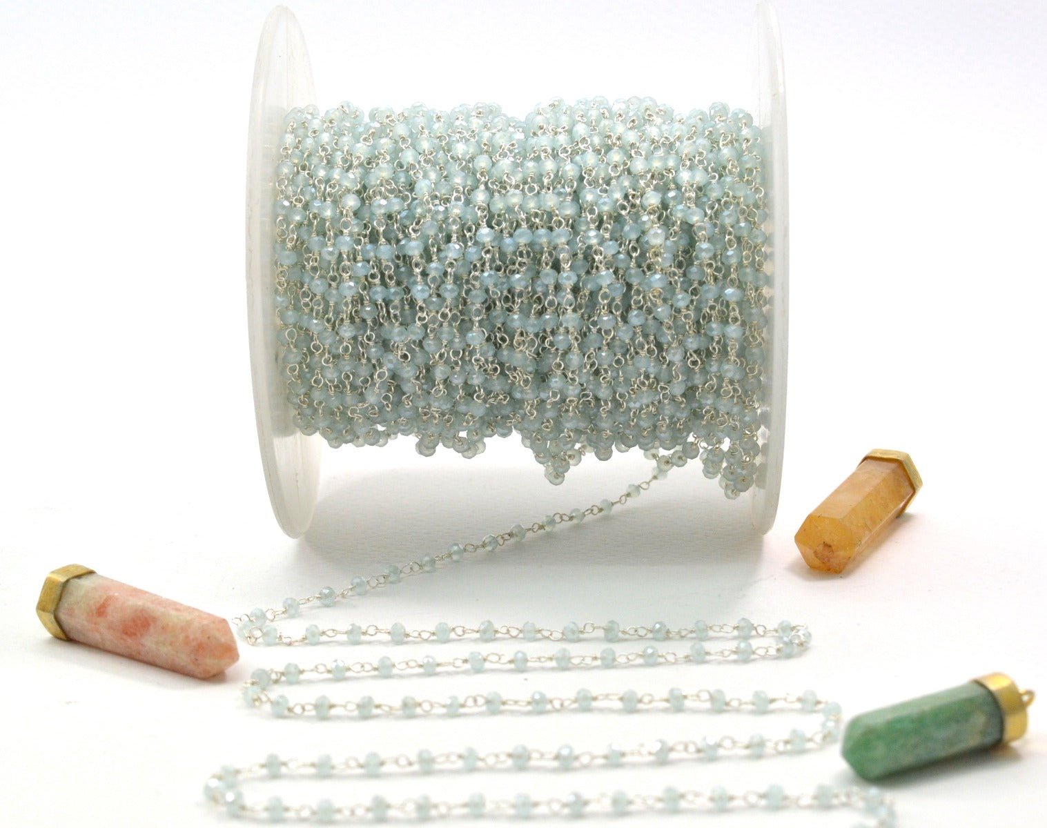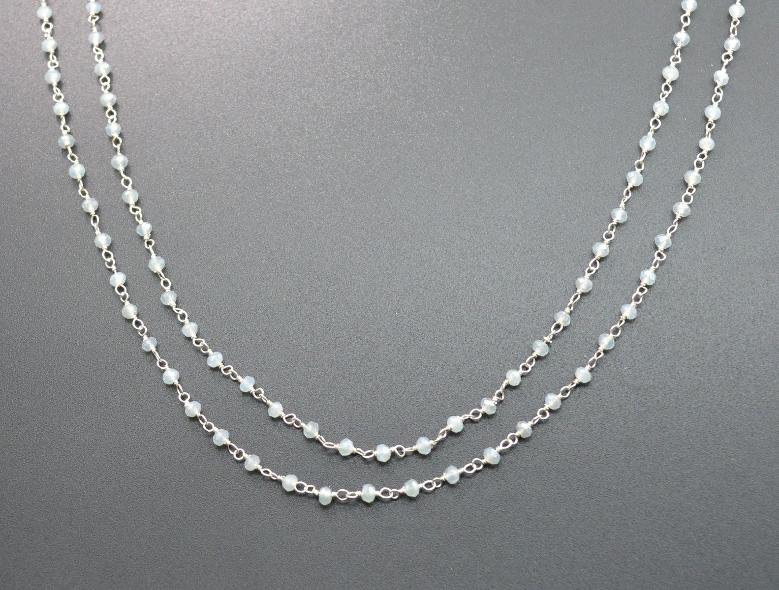 Chalcedony Rosary Chain - 925 Silver Gold, 3mm