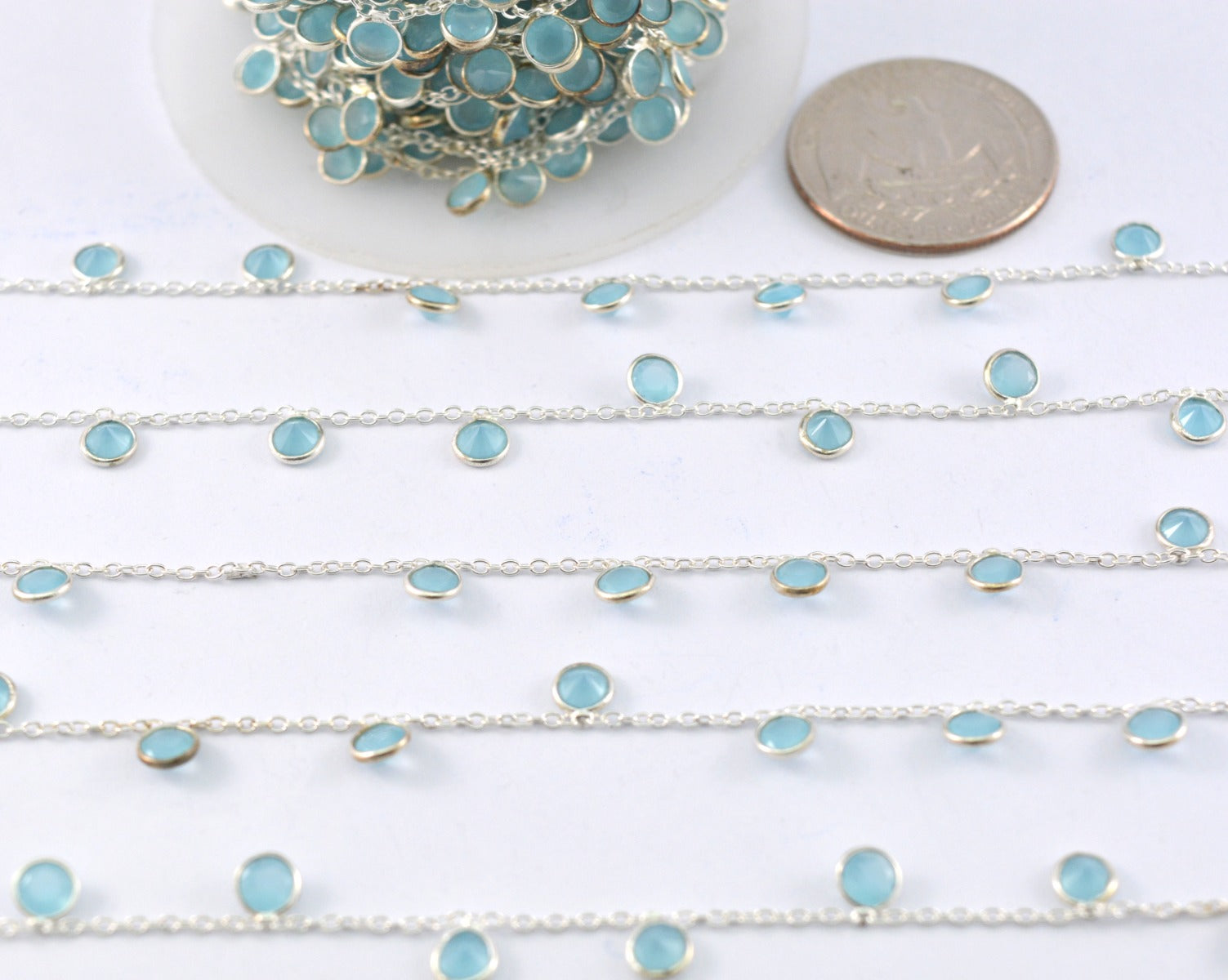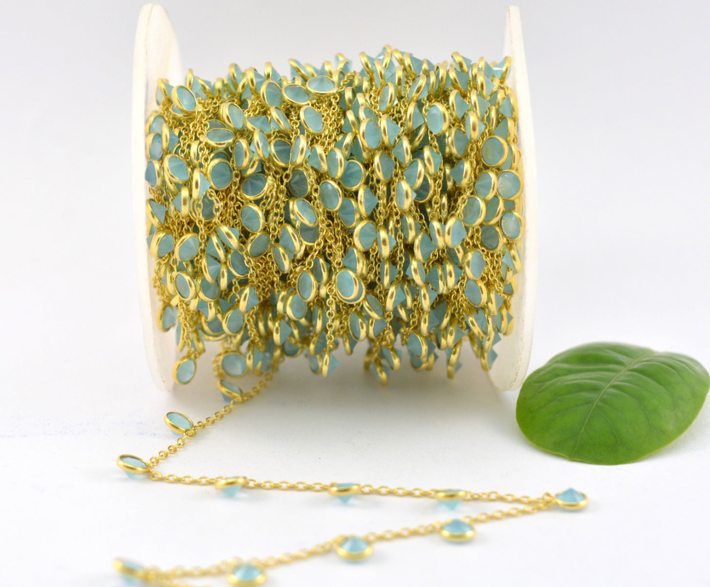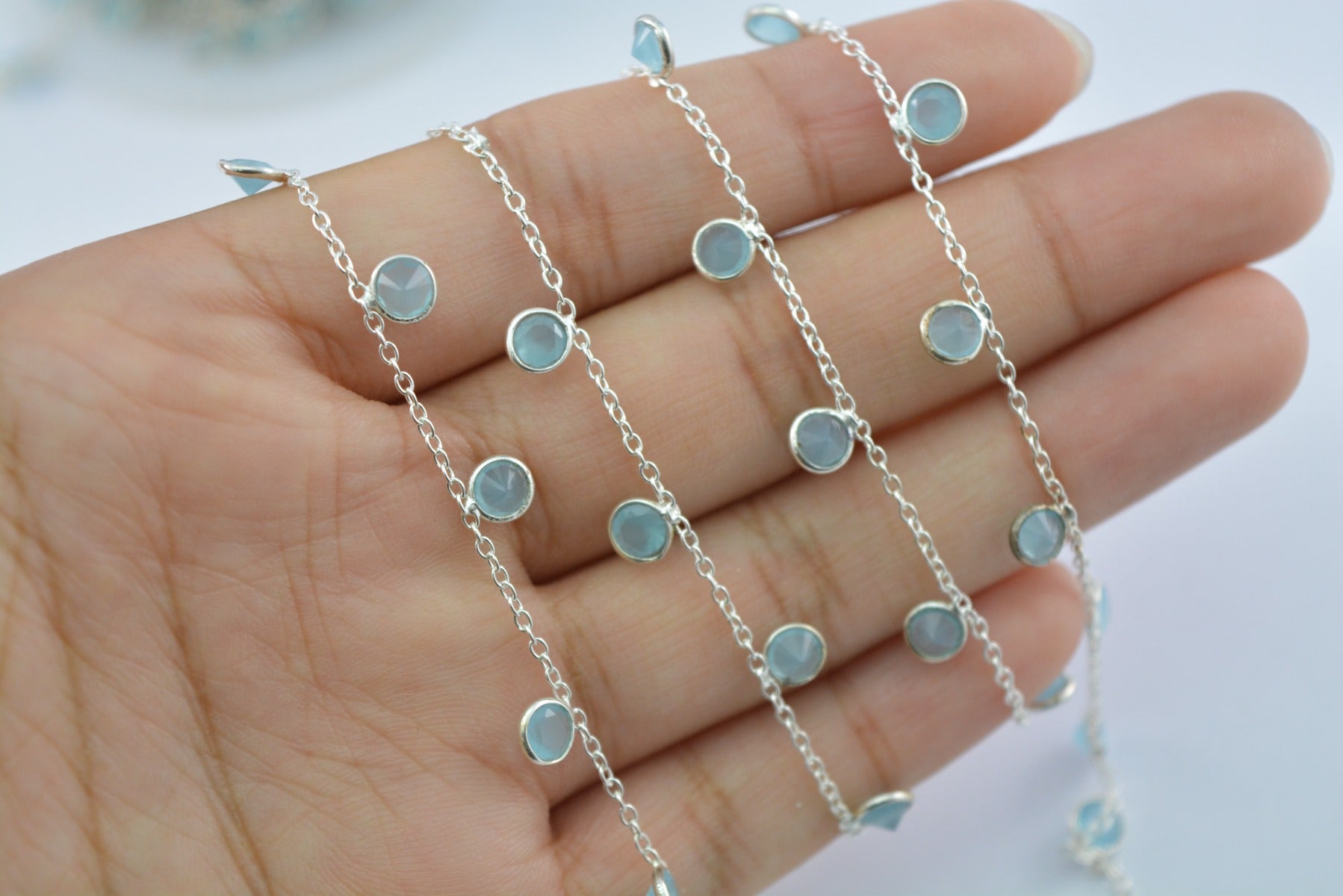 Chalcedony Rosary Chain - 925 Silver Gold, 4mm