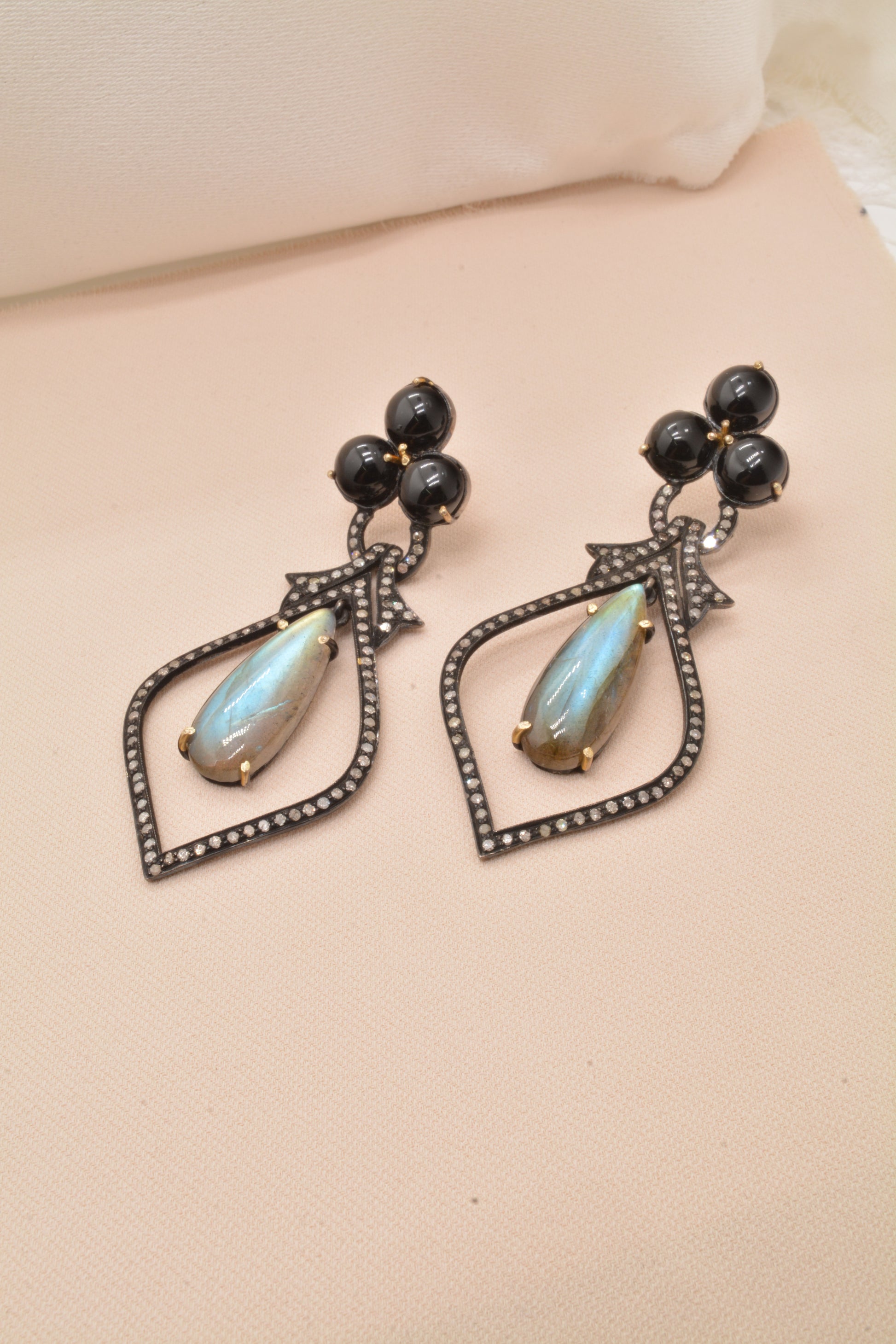 Make a bold yet elegant statement with these chic teardrop earrings, beautifully handcrafted in 925 sterling silver and adorned with striking black and mixed stones. The teardrop design enhances the natural beauty of the gemstones, while the polished finish adds a touch of sophistication. Designed for both comfort and security, the earrings feature a gold butterfly push back.
