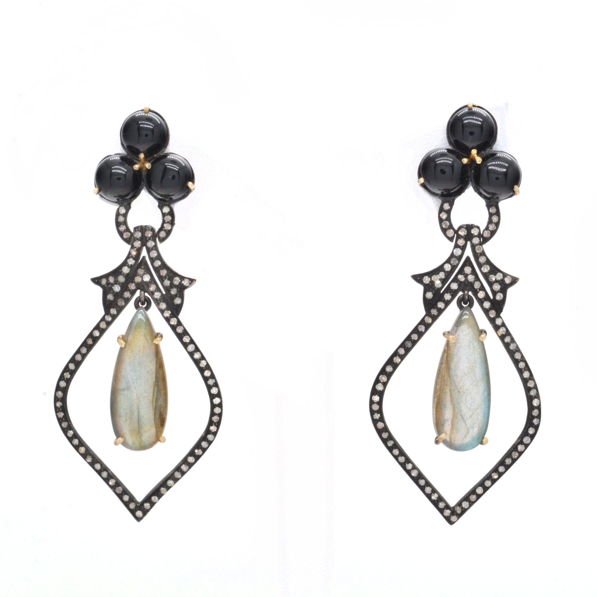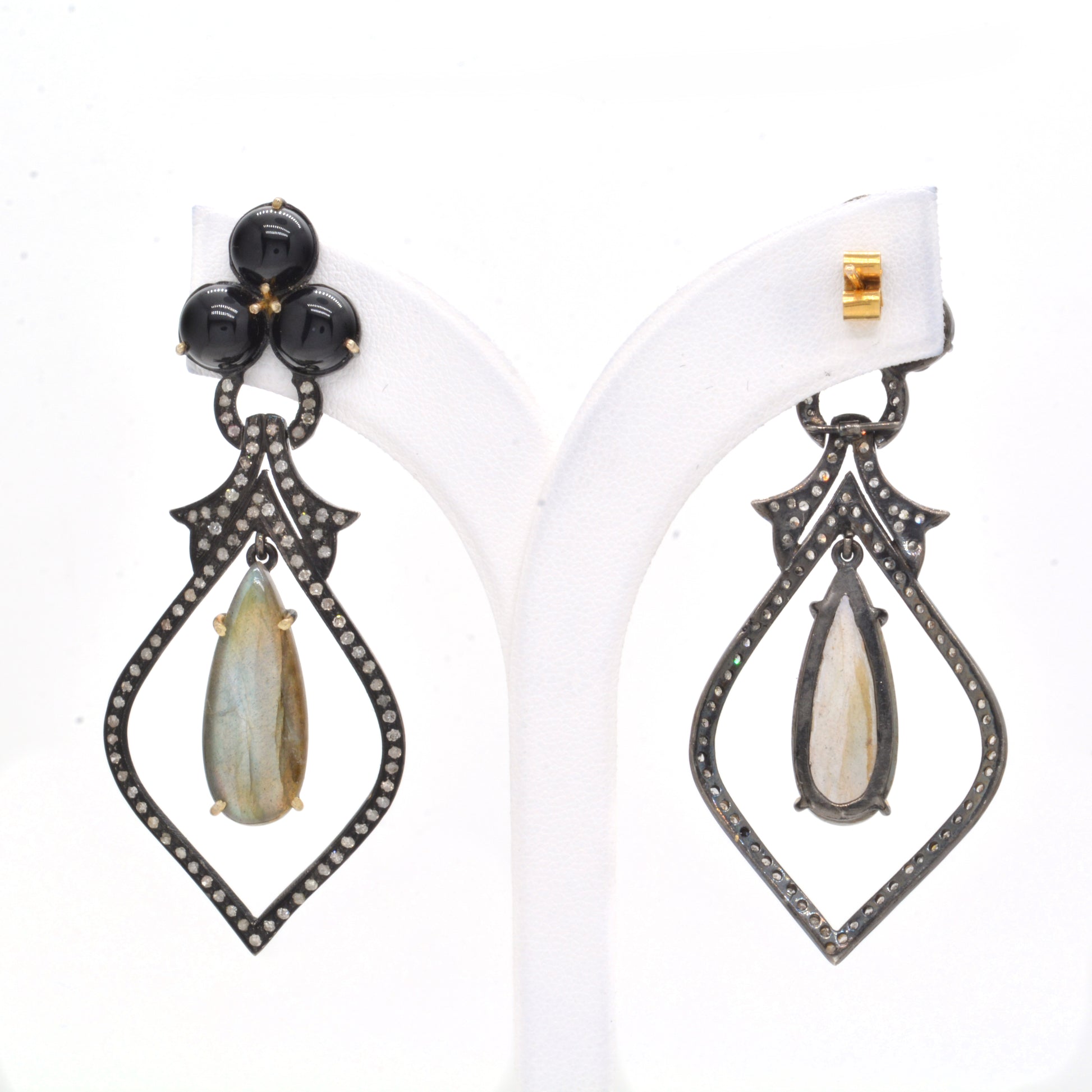 Chic Black and Mixed Stone Teardrop Silver Earrings