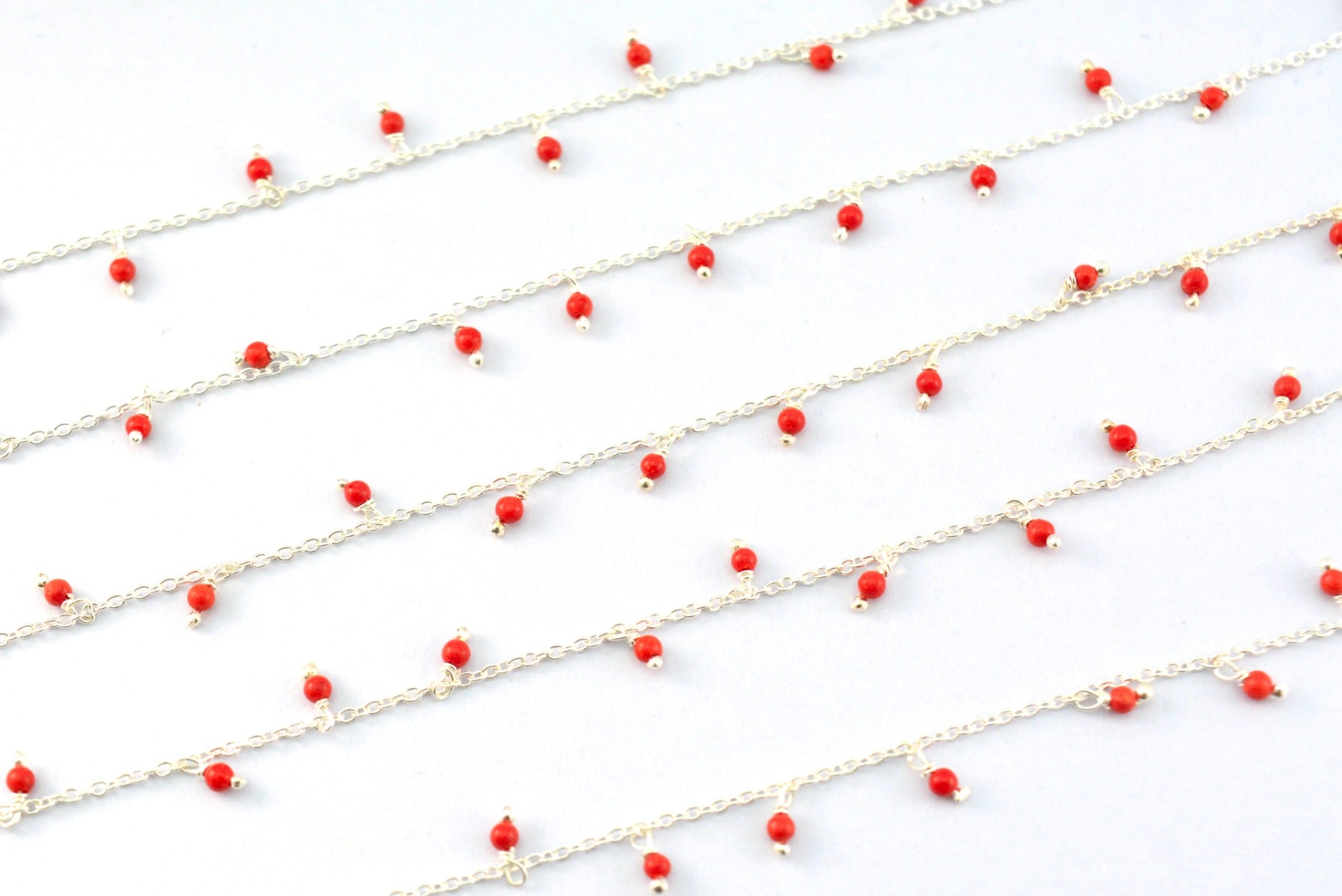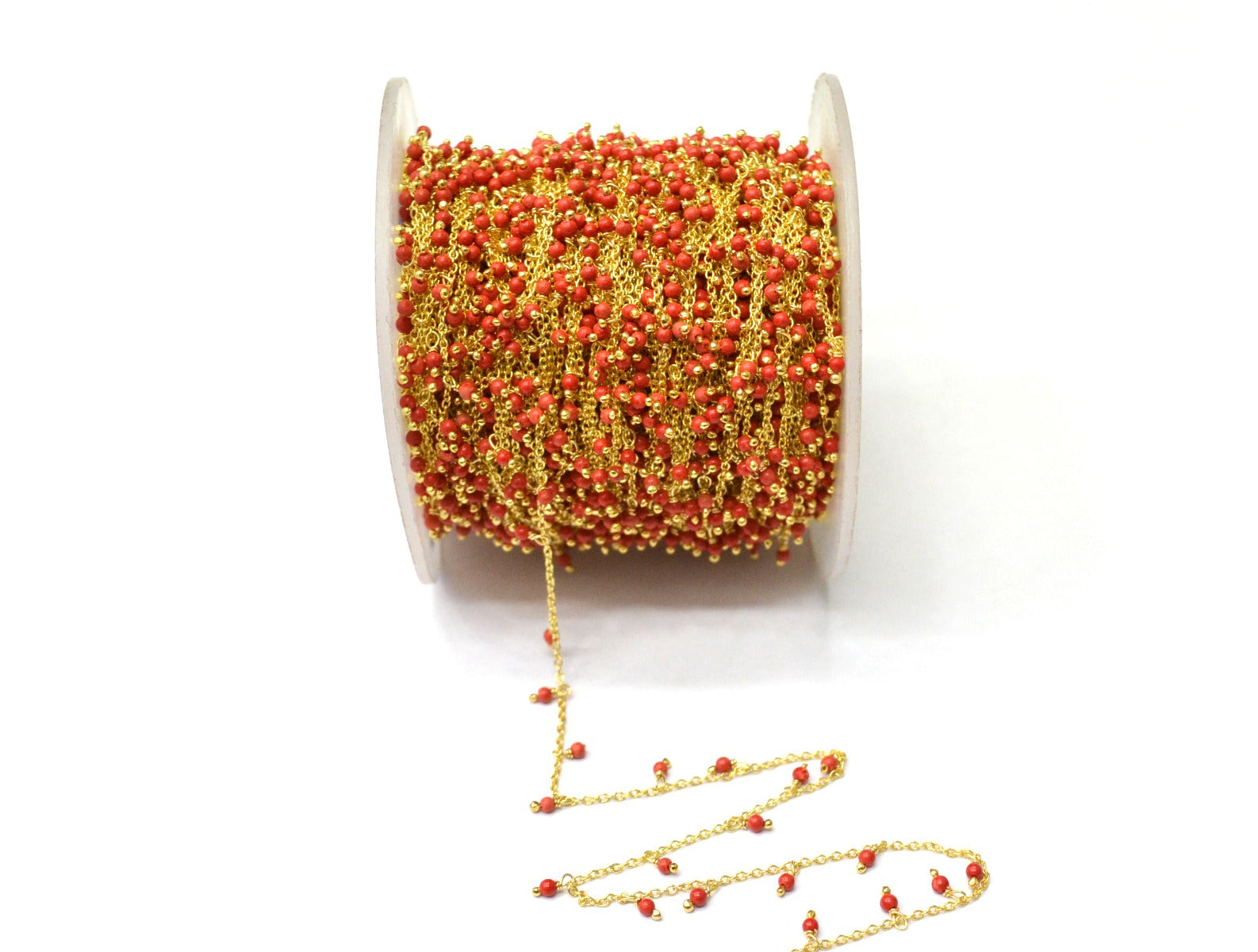 Classic 925 Silver Gold Rosary Chain - Coral 2mm