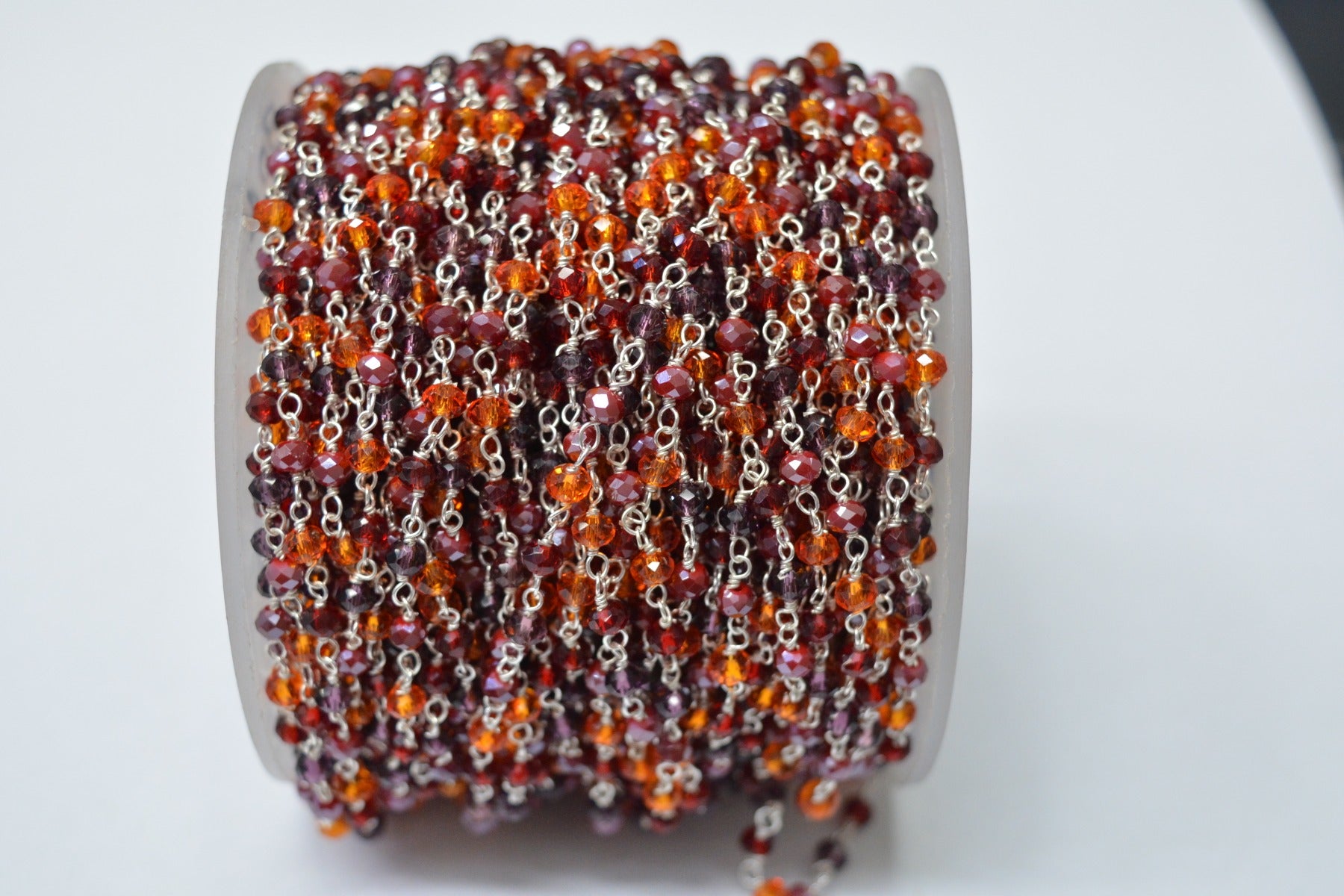 925 Sterling Silver Gold Plated Roundel Wire Wrapped Rosary Chain Multi Crystal Stone. Sold By foot, ROS2-5512