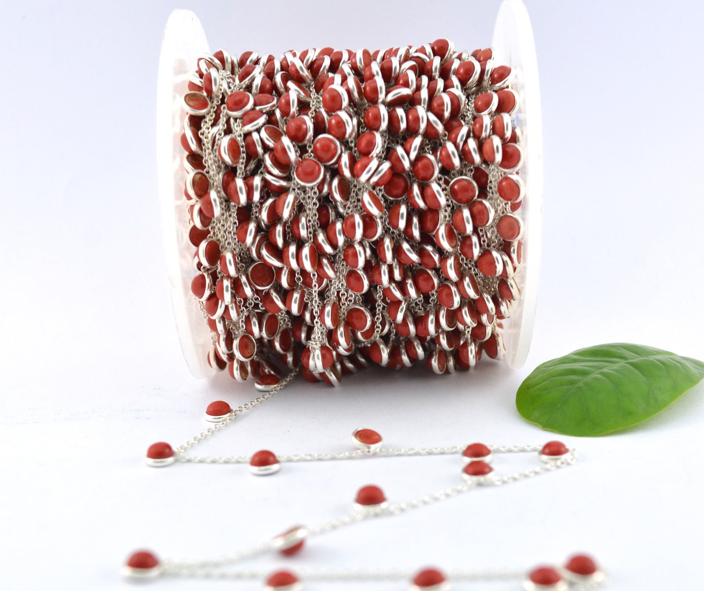 Coral Rosary Chain - 925 Silver Gold, 4mm