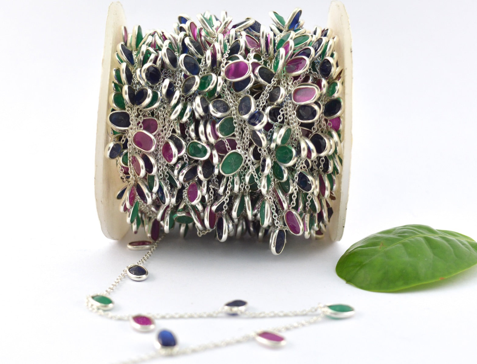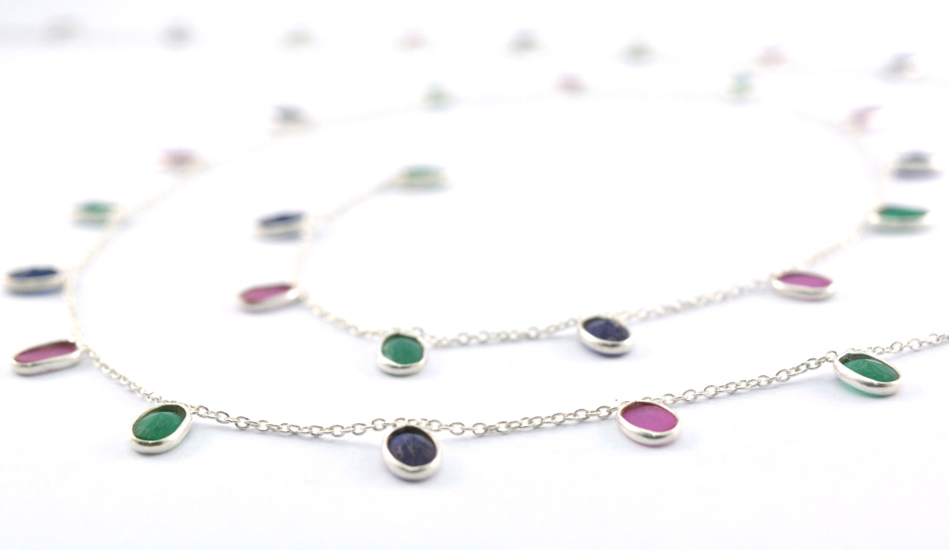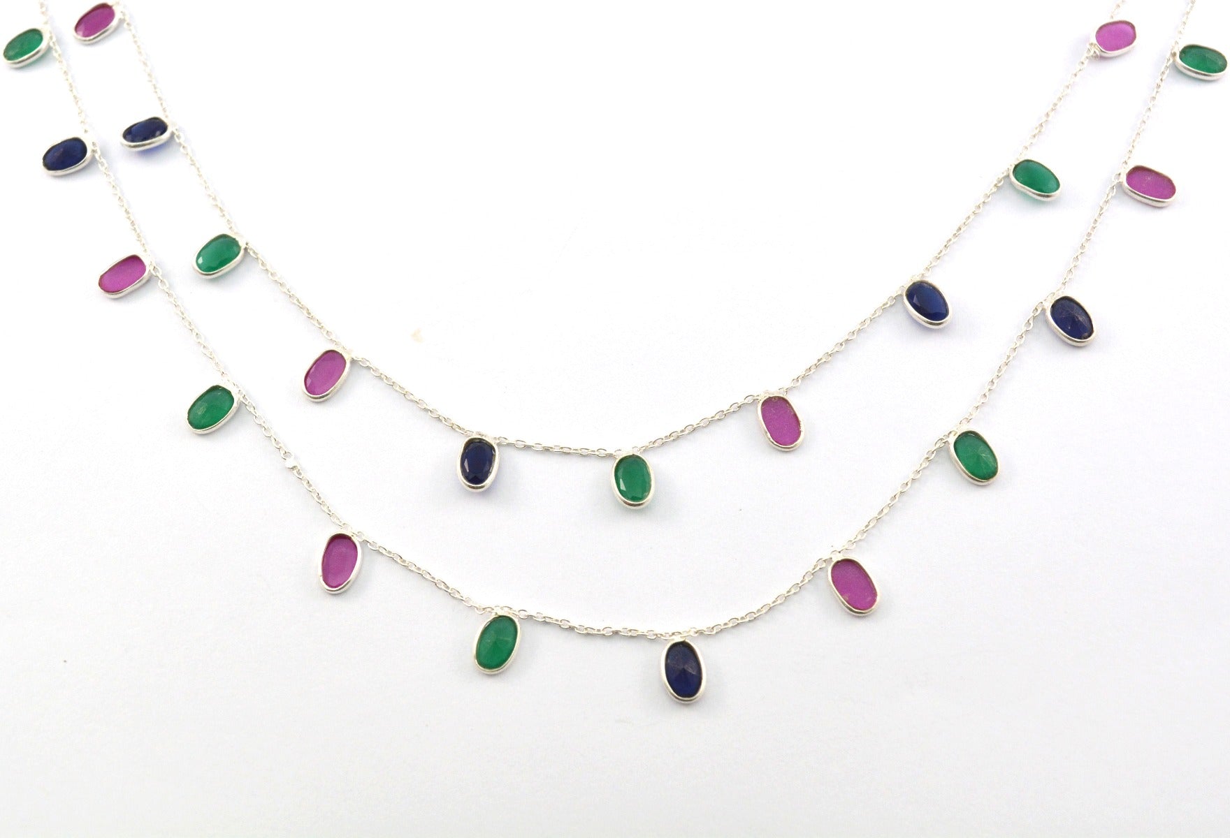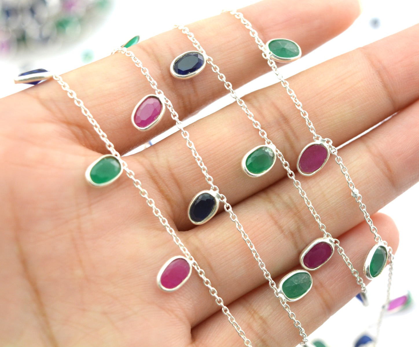 Delicate 925 Silver Gold Rosary Chain - Emerald 4.00mm
