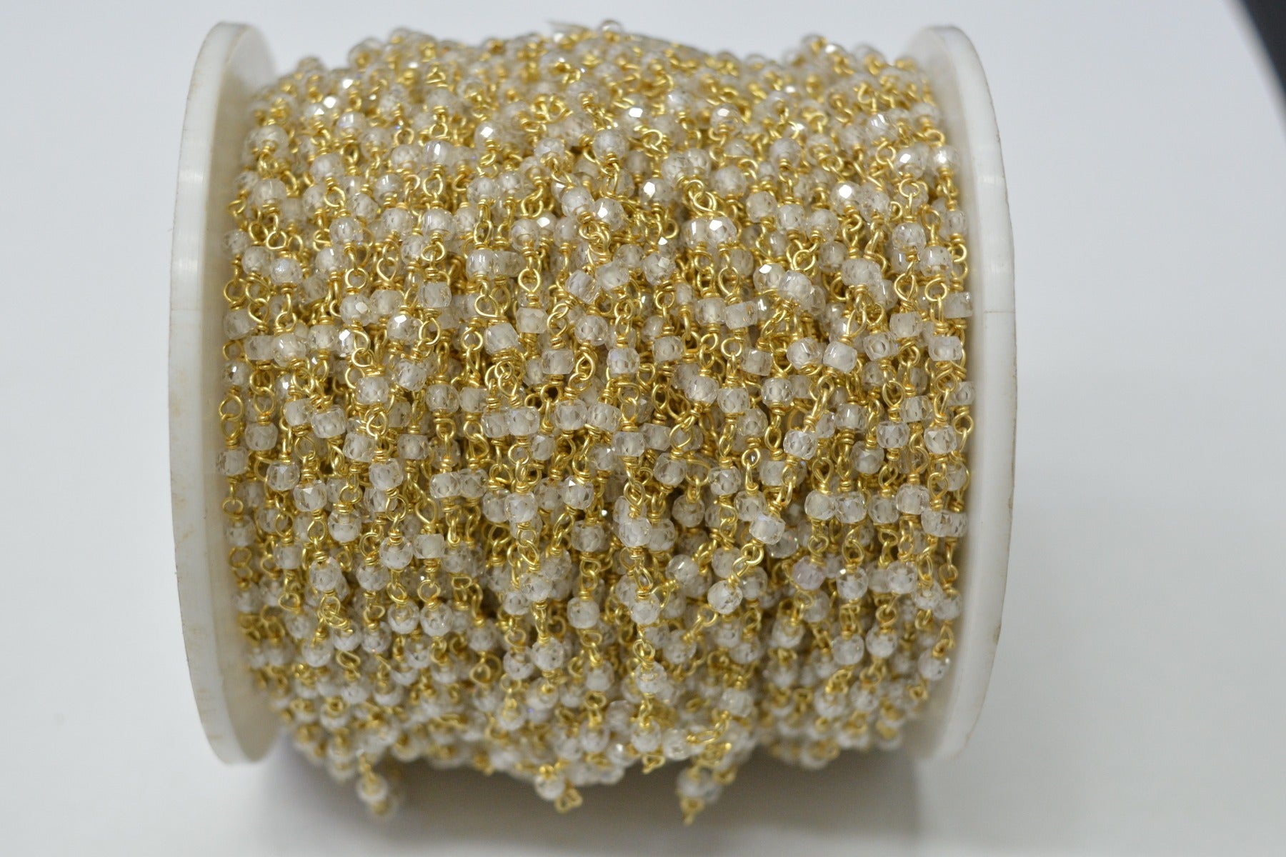 925 Sterling Silver Gold Plated Glorious Wire Wrapped Rosary Chain With Roundel Shape 3.00mm White Cubic Zirconia Stone. Sold By foot, ROS2-5506