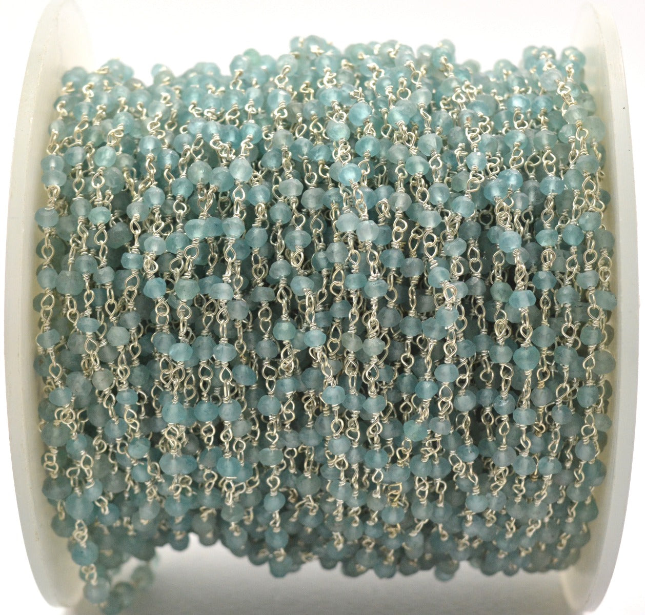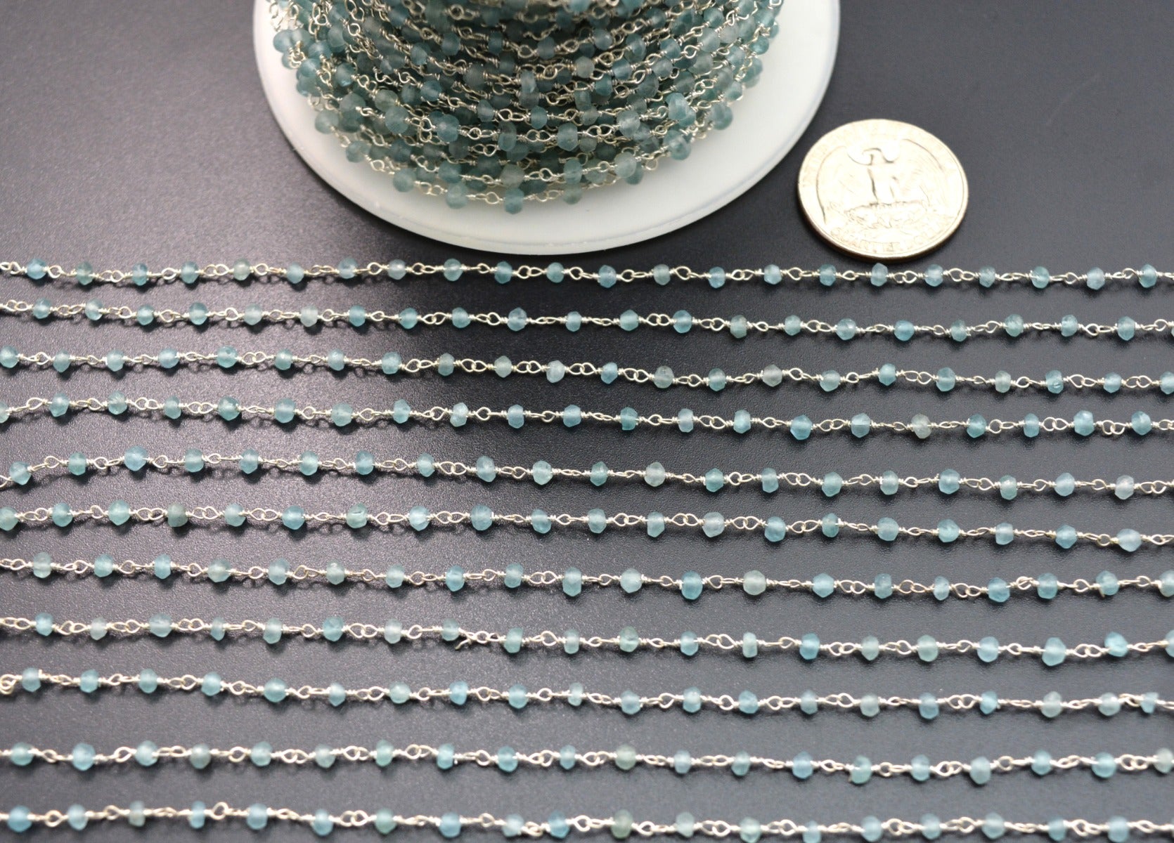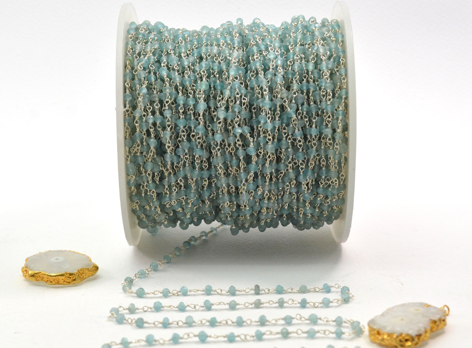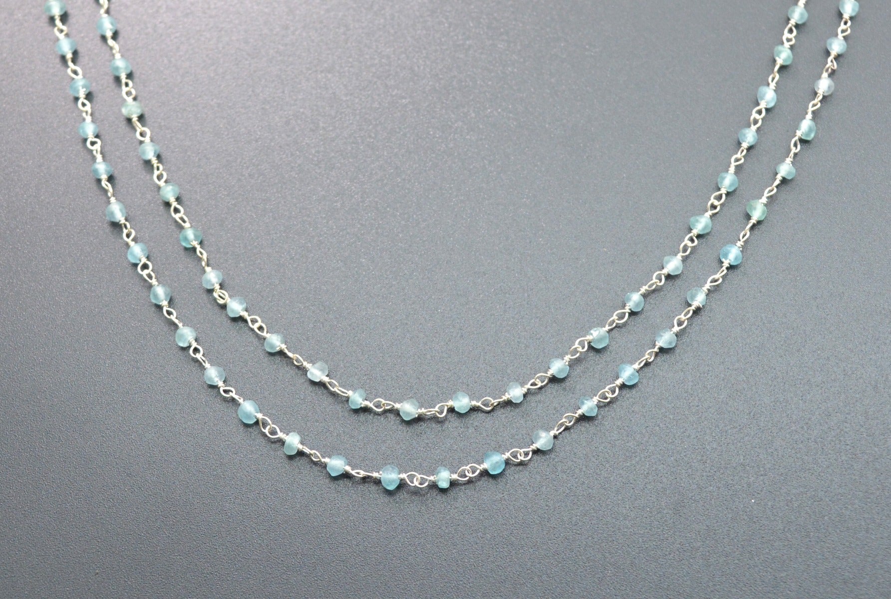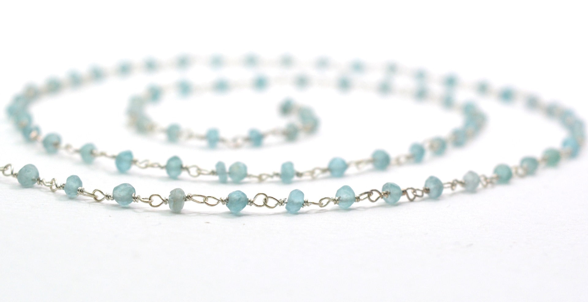 Delicate Stone Rosary Chain in 925 Silver Gold - 3mm
