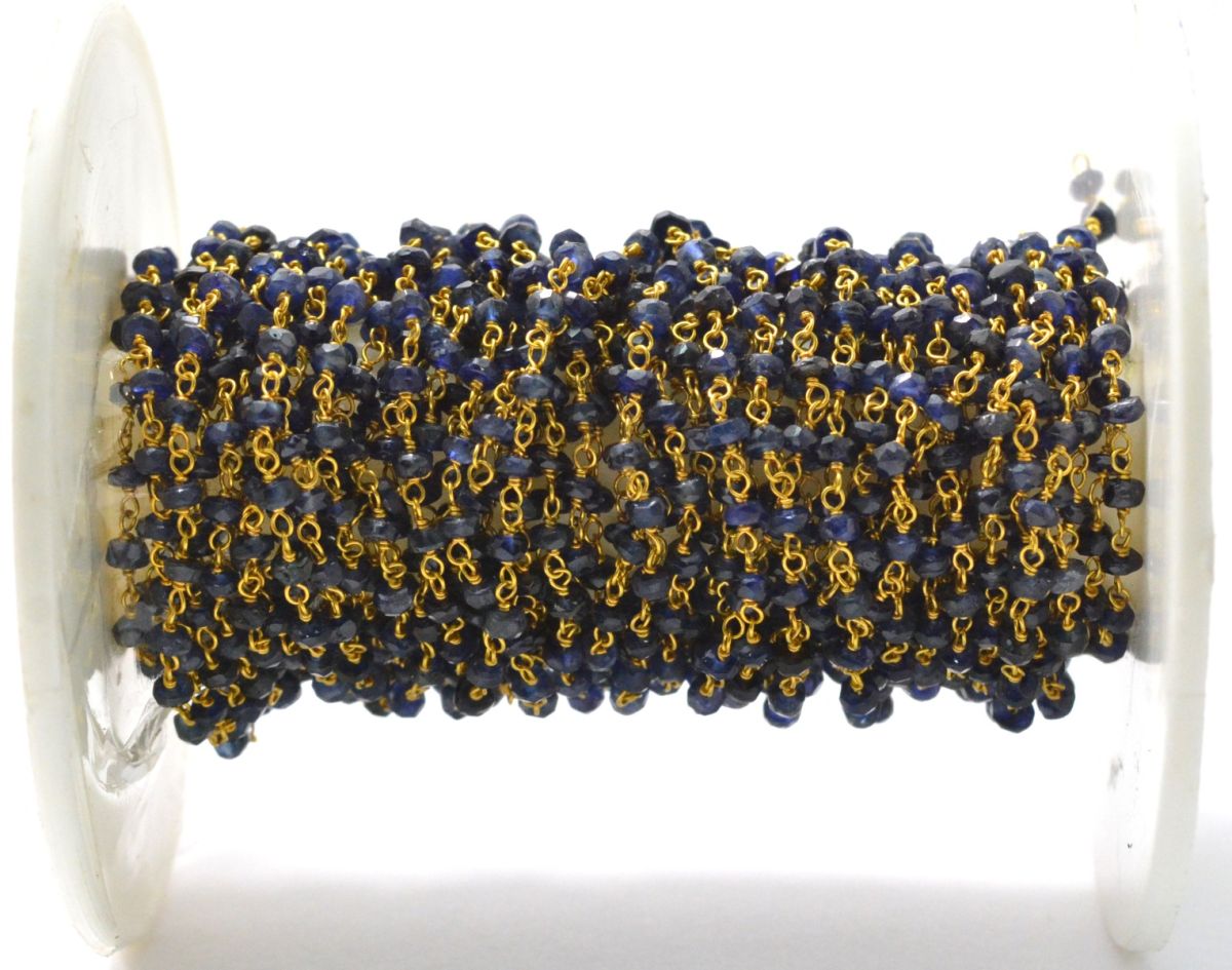 Elegant 14k Solid Gold Rosary Chain With Natural Sapphire Stone - 2-2.50mm Size - SGGRC-012A, Sold By 1 Inch.
