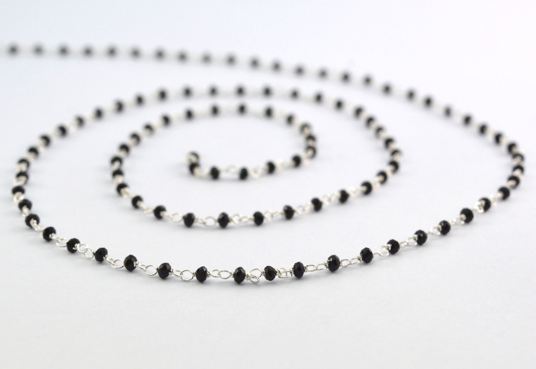 The gorgeous handmade 925 Sterling Silver Gold Rosary Chain In Black Spinel is perfect finding for DIY jewelry making and can be used in multiple different ways and design.