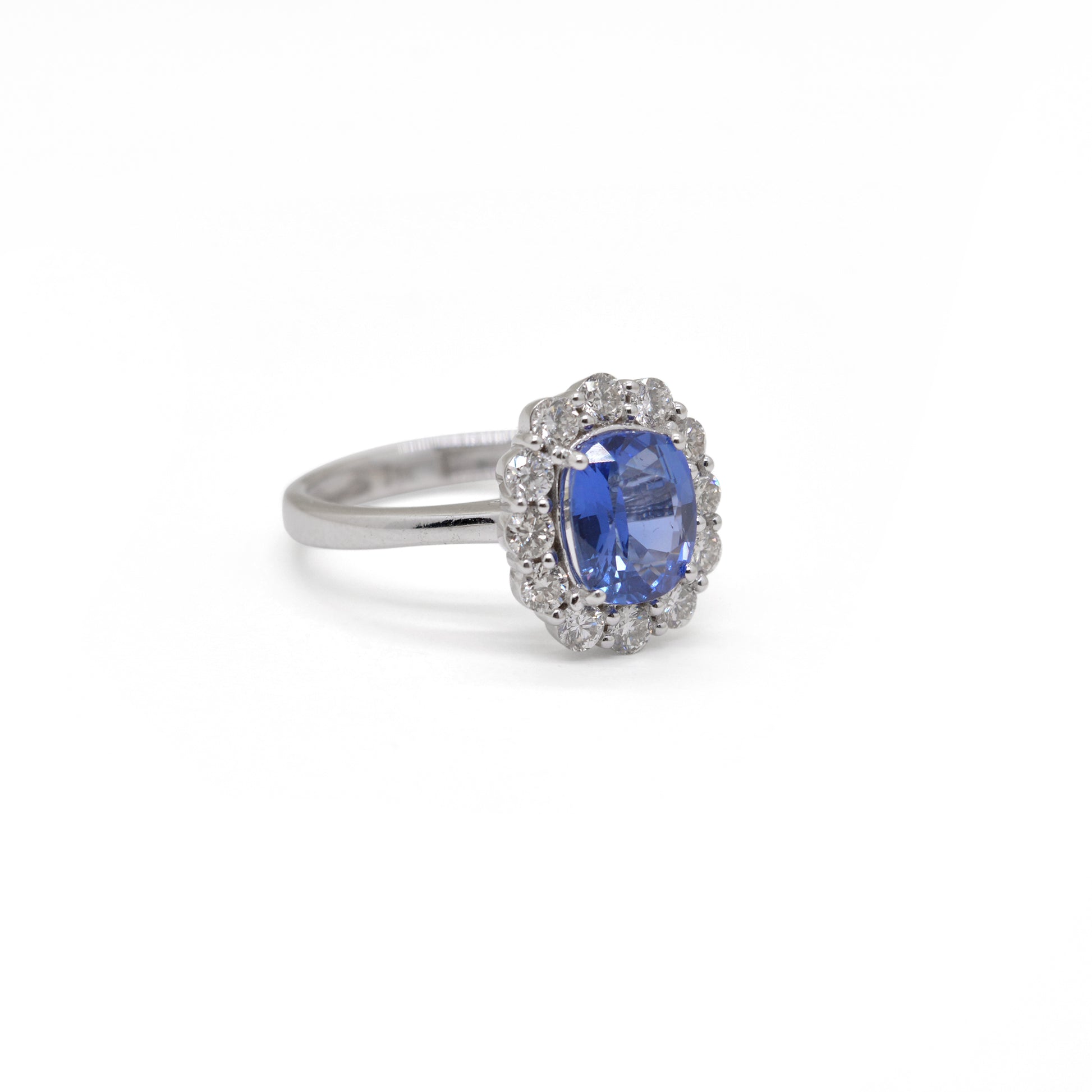 Embrace timeless sophistication with this elegant handcrafted ring, designed in luxurious 18K gold. Featuring a captivating blue sapphire accented by brilliant diamonds, this statement ring radiates elegance and charm. Its refined design makes it a versatile piece, perfect for both everyday wear and special occasions.