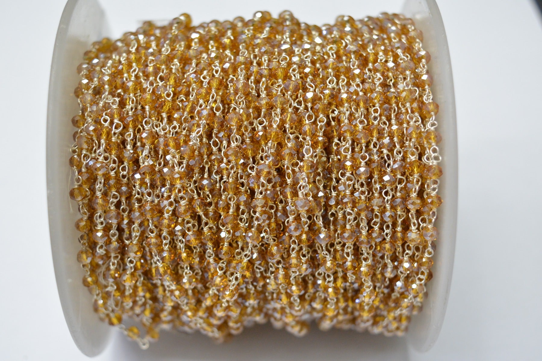 925 Sterling Silver Gold Plated Wire Wrapped Rosary Chain With Citrine Crystal Coated Stone. Sold By foot, ROS2-5499