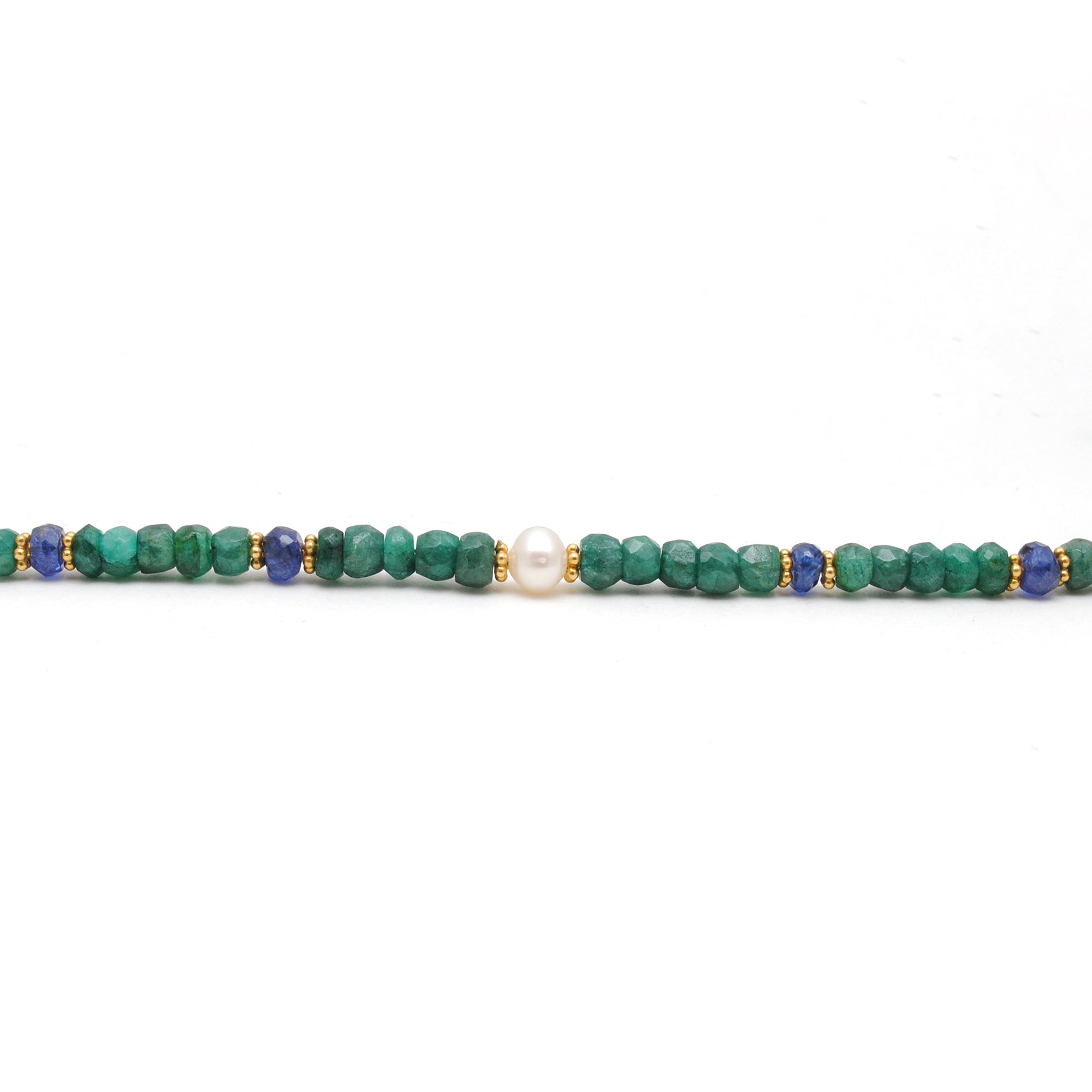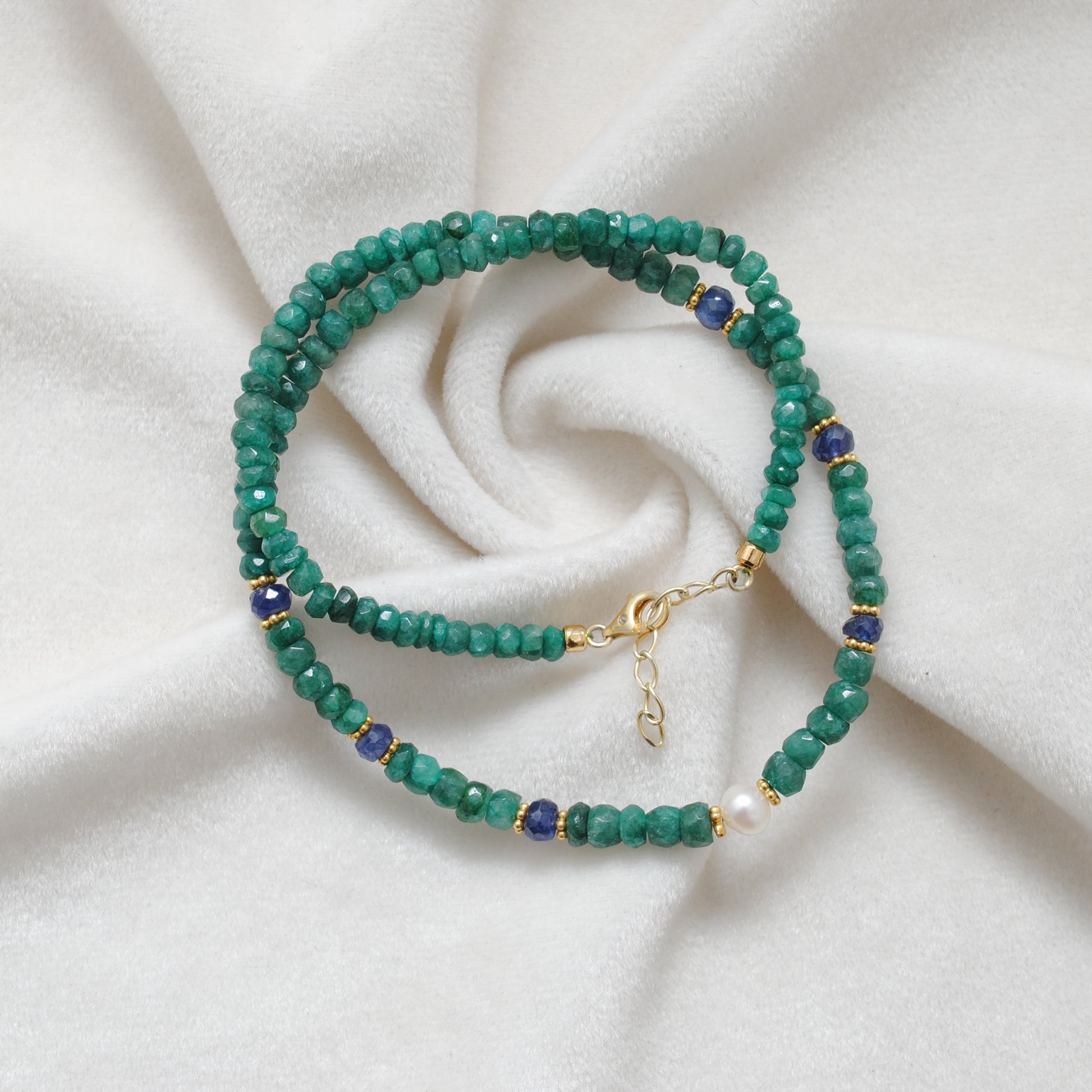 Emerald Rondelle Beads 18k Gold Plated Pearl & Blue Sapphire Beaded Necklace