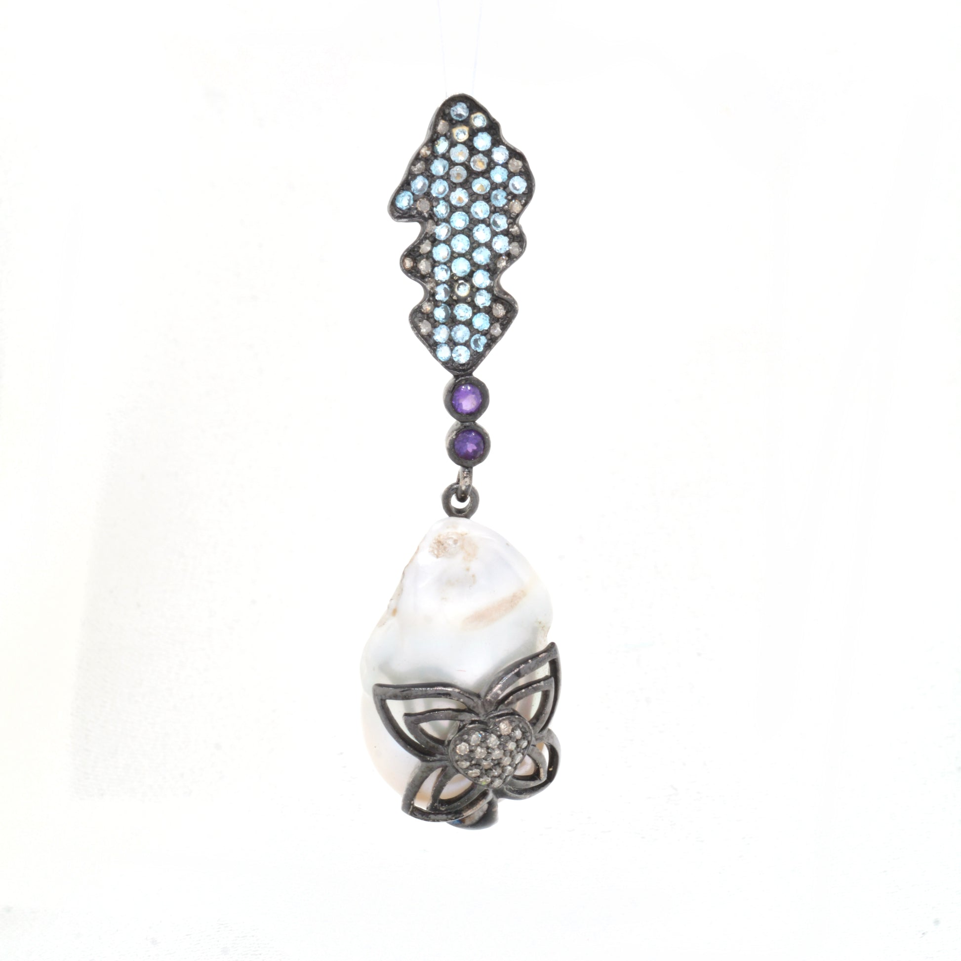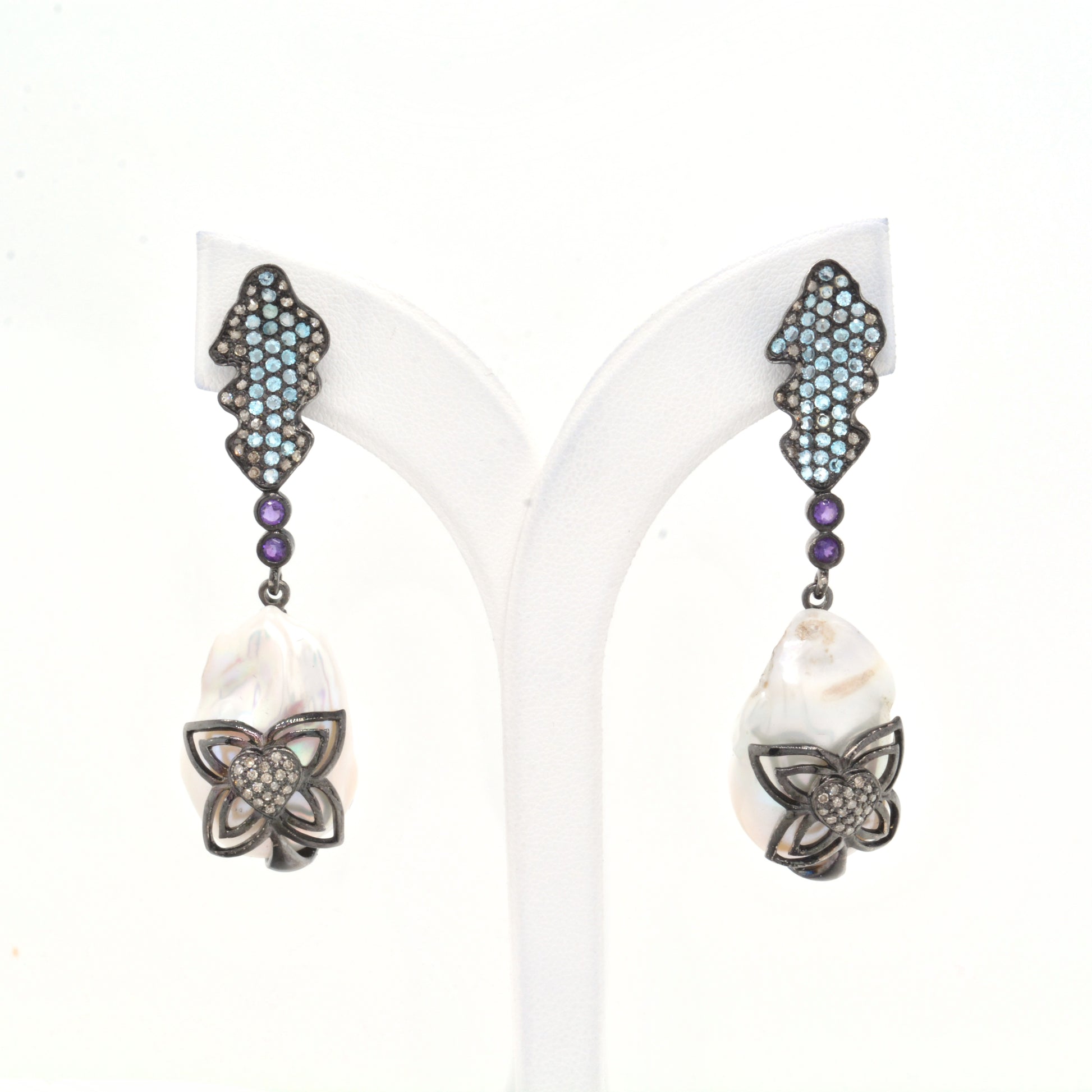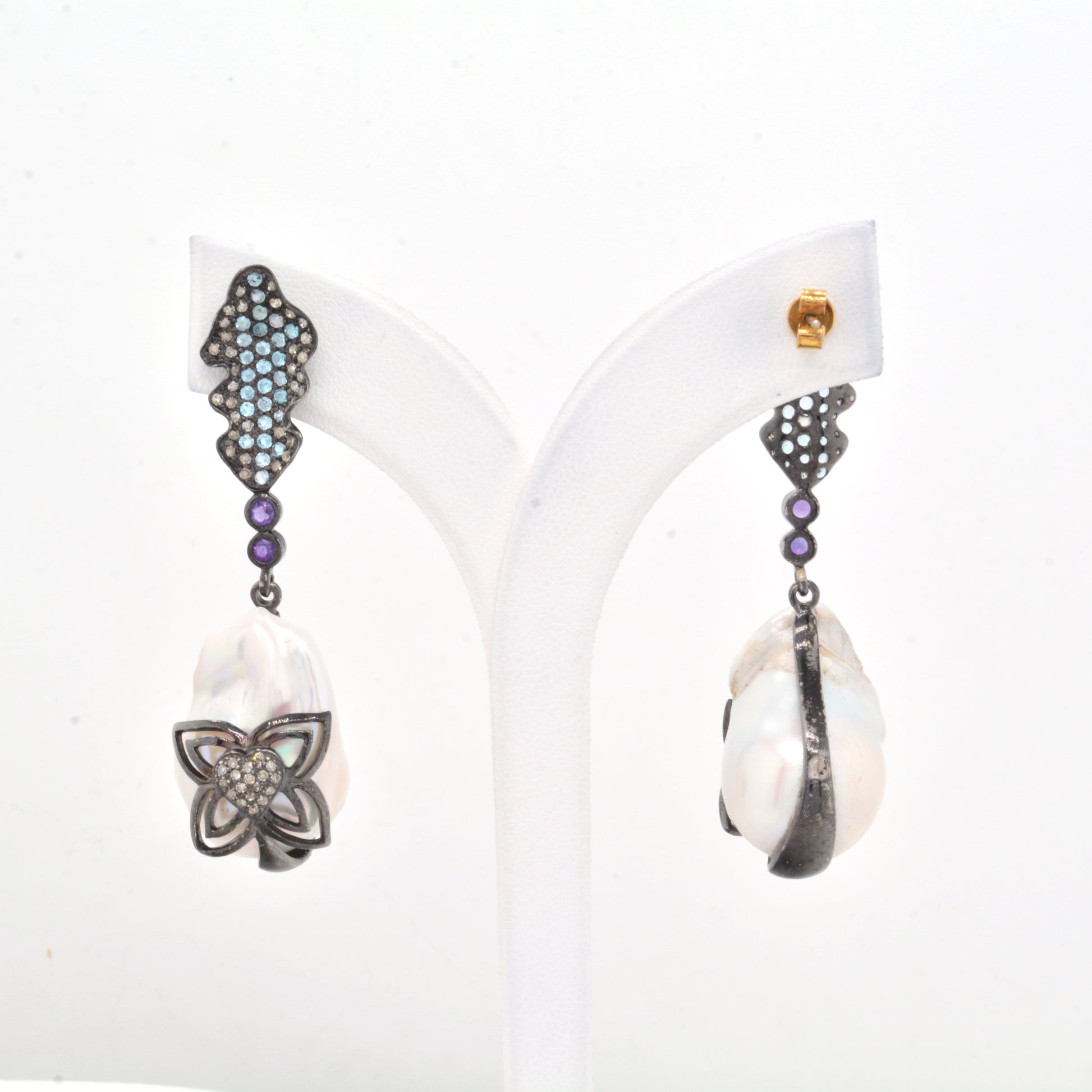 Exquisite 925 Sterling Silver Mixed Stone Floral Drop Earrings