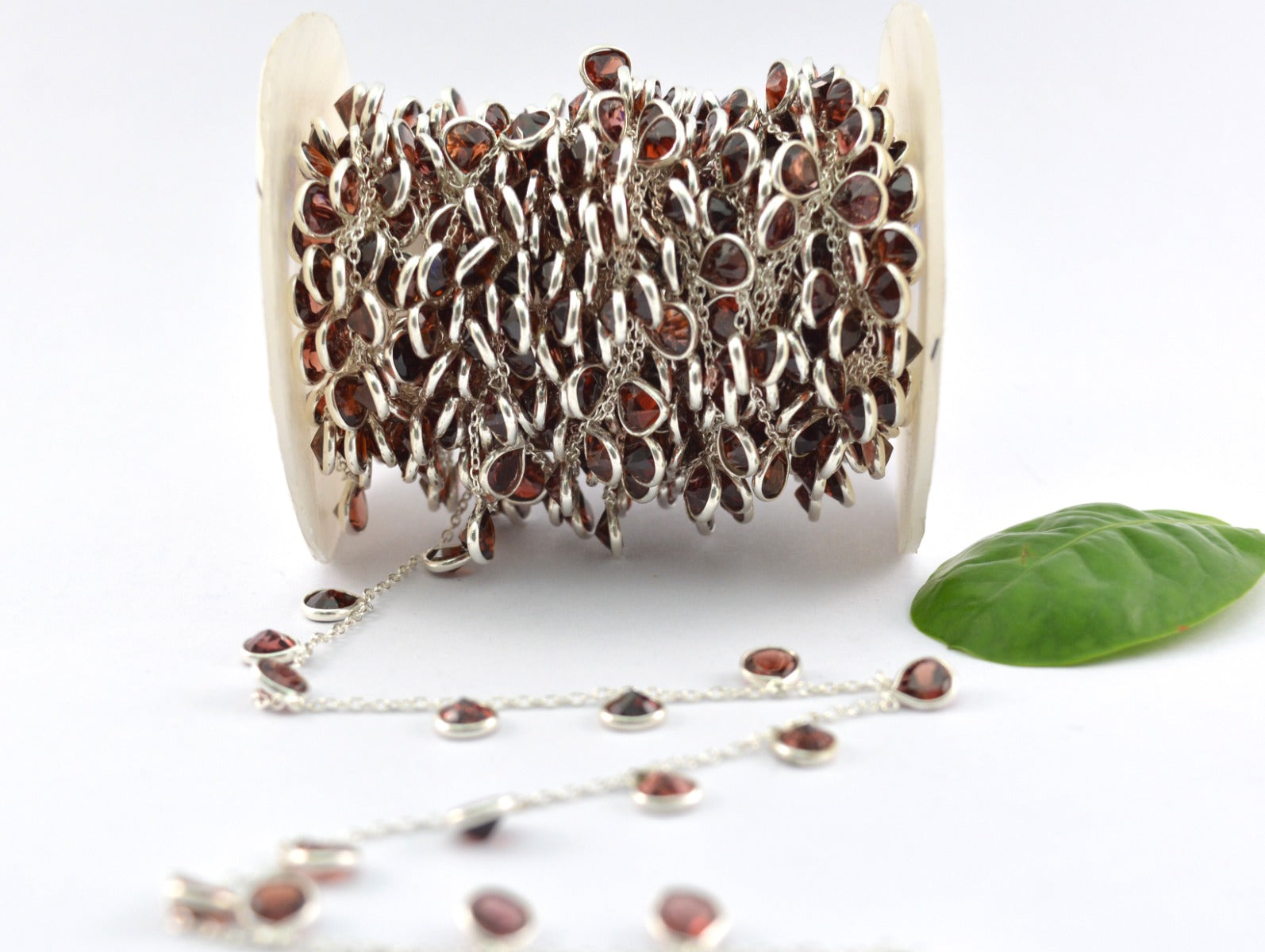 The gorgeous handmade Beautiful 925 Sterling Silver Gold Garnet Chain is perfect finding for DIY jewelry making and can be used in multiple different ways and design.