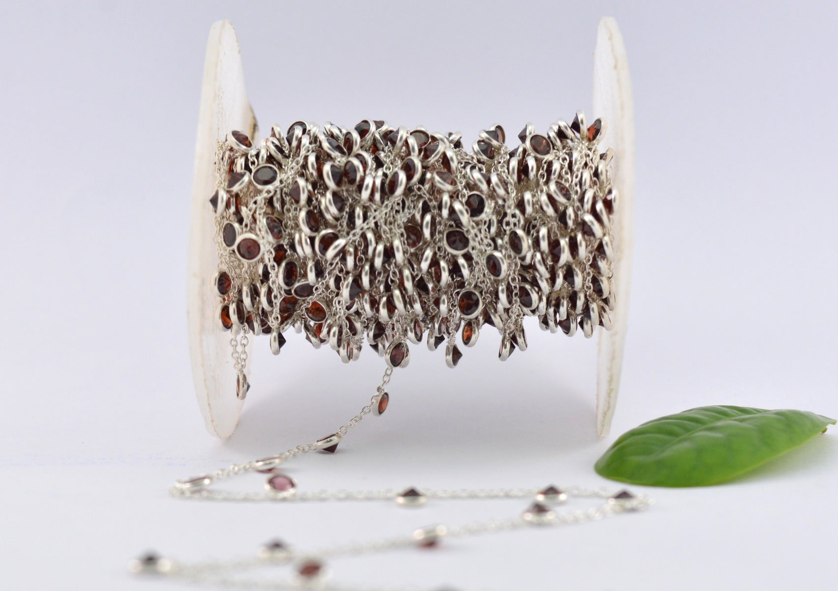 Garnet Rosary Chain - 925 Silver Gold, 3mm
