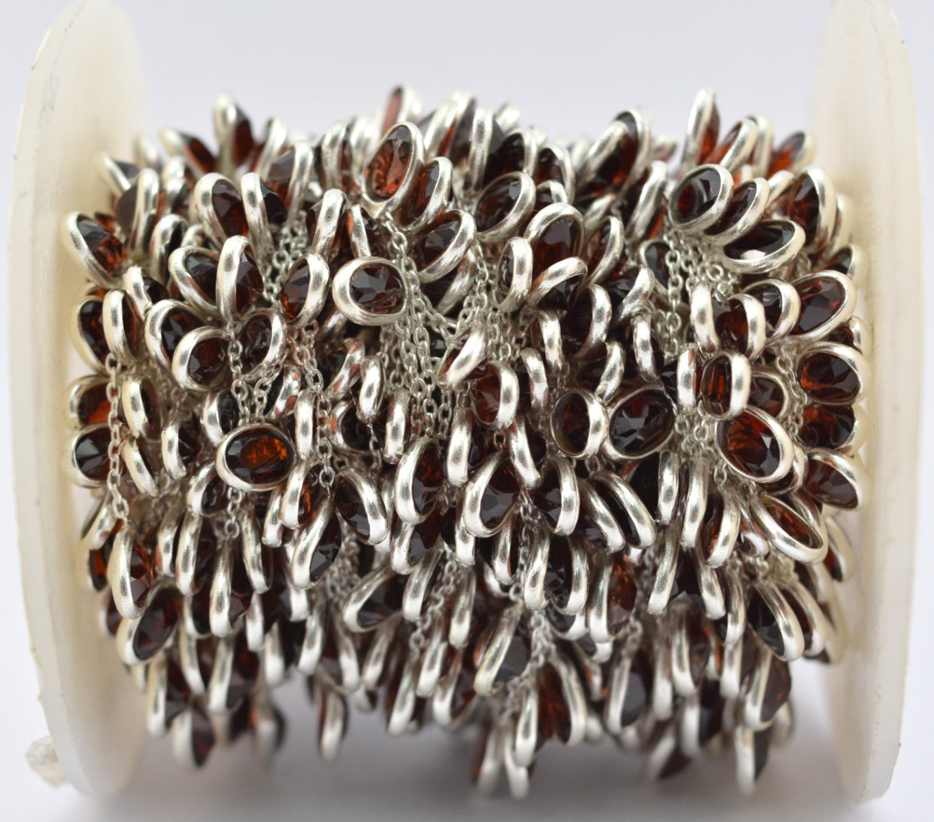 Garnet Rosary Chain - 925 Silver Gold, 4.00mm