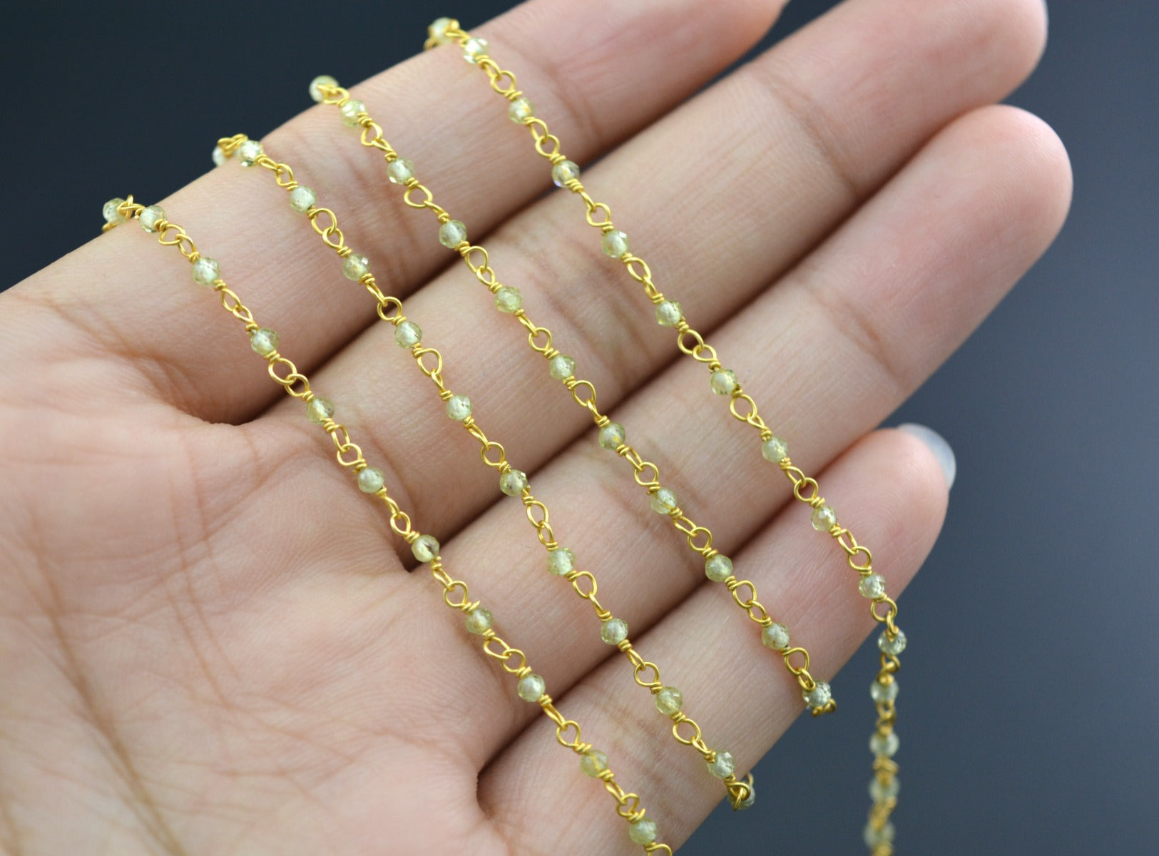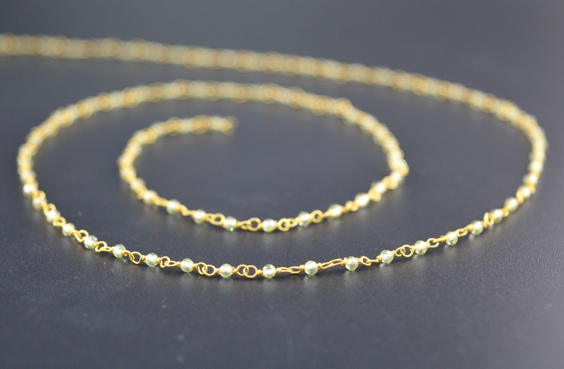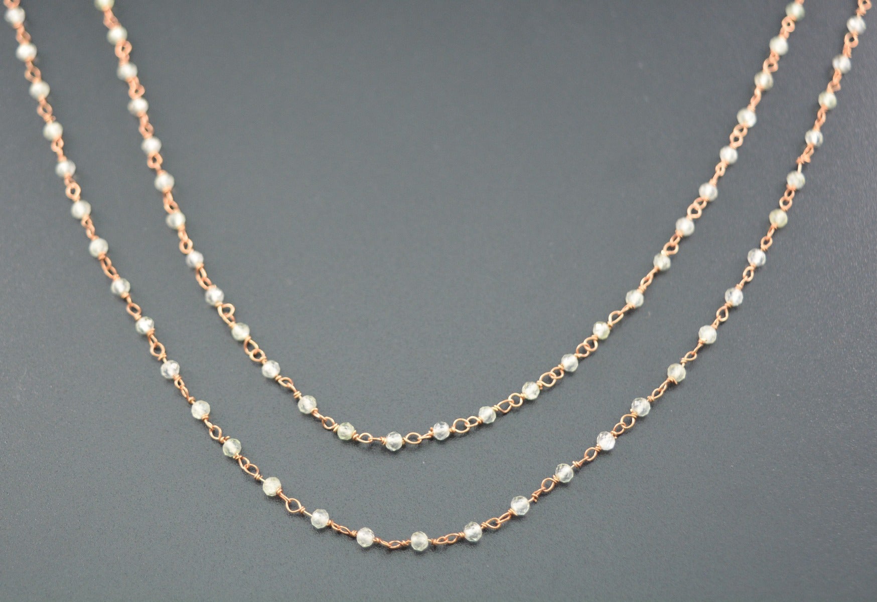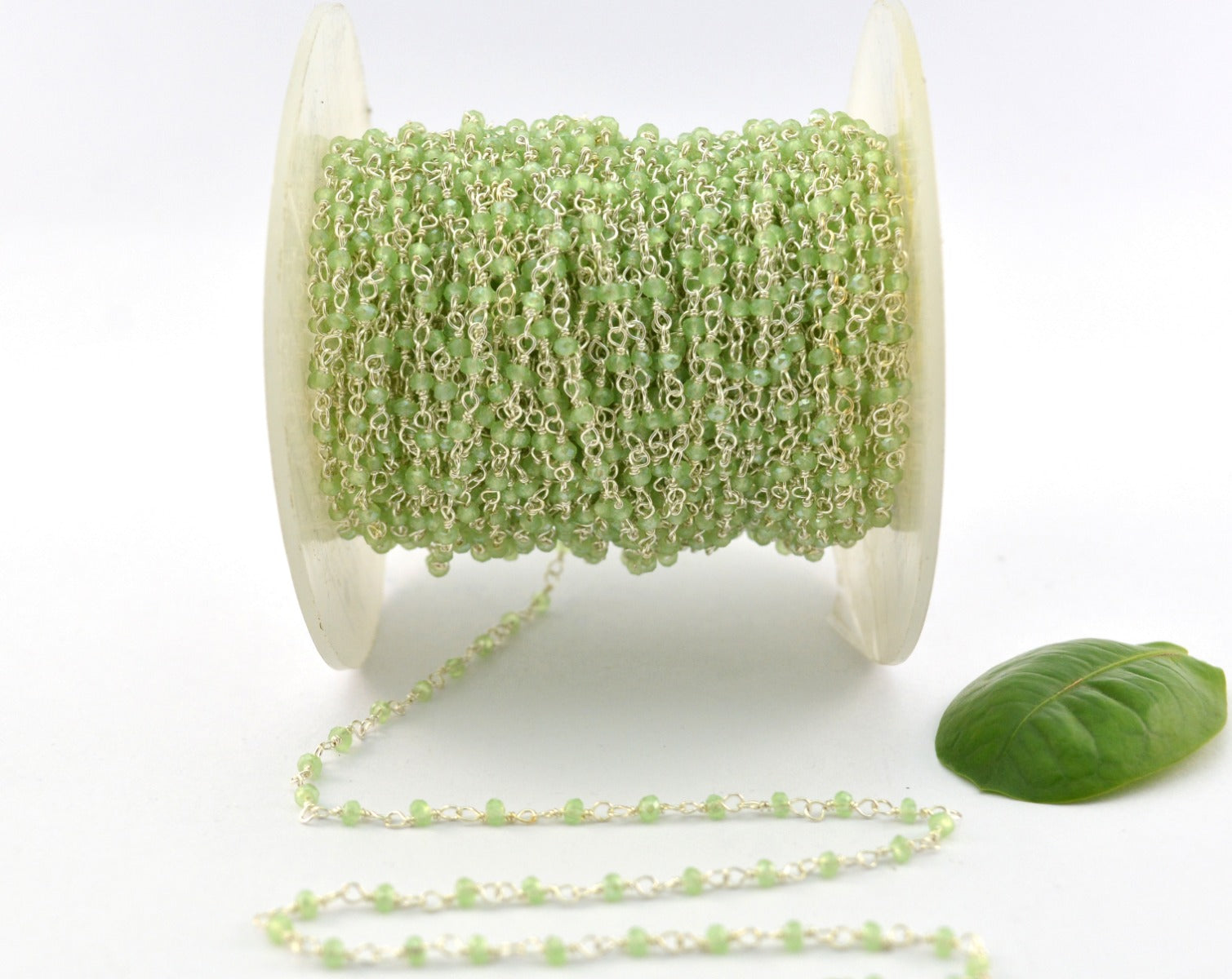 Gorgeous Rosary Chain - Chalcedony 925 Silver Gold 2mm