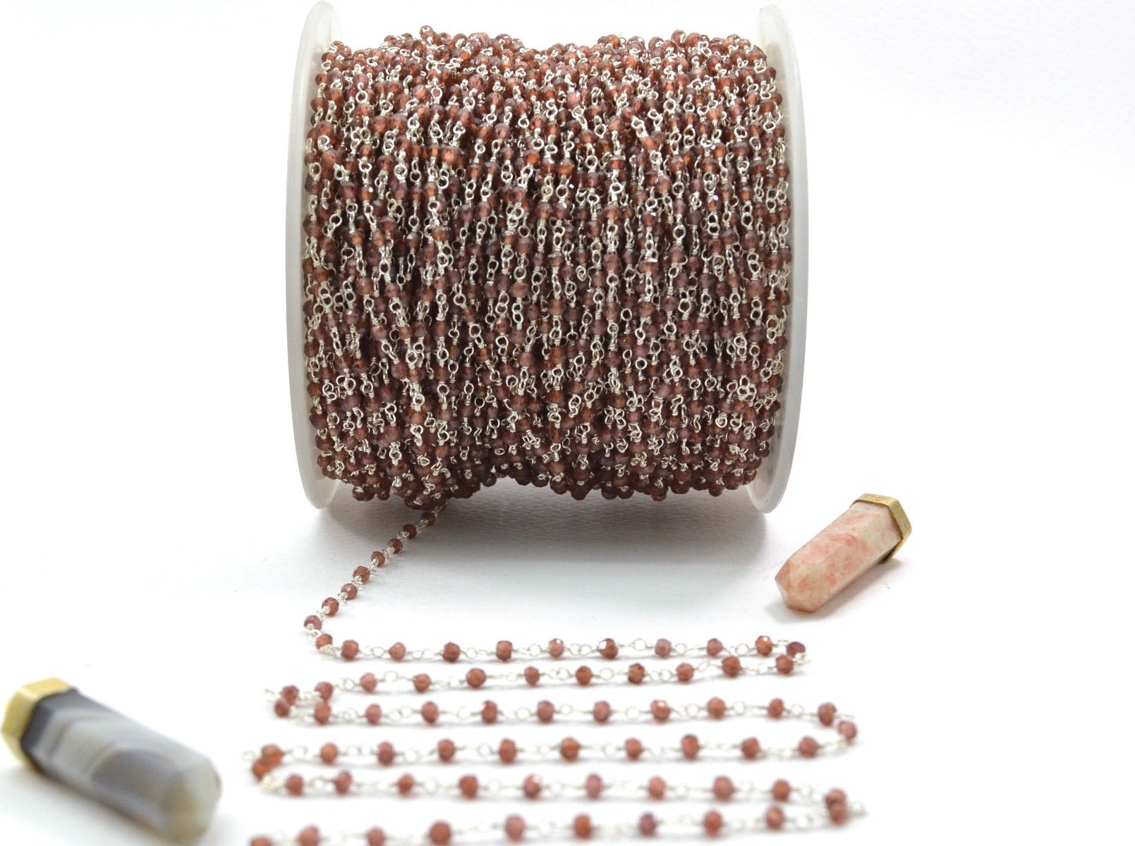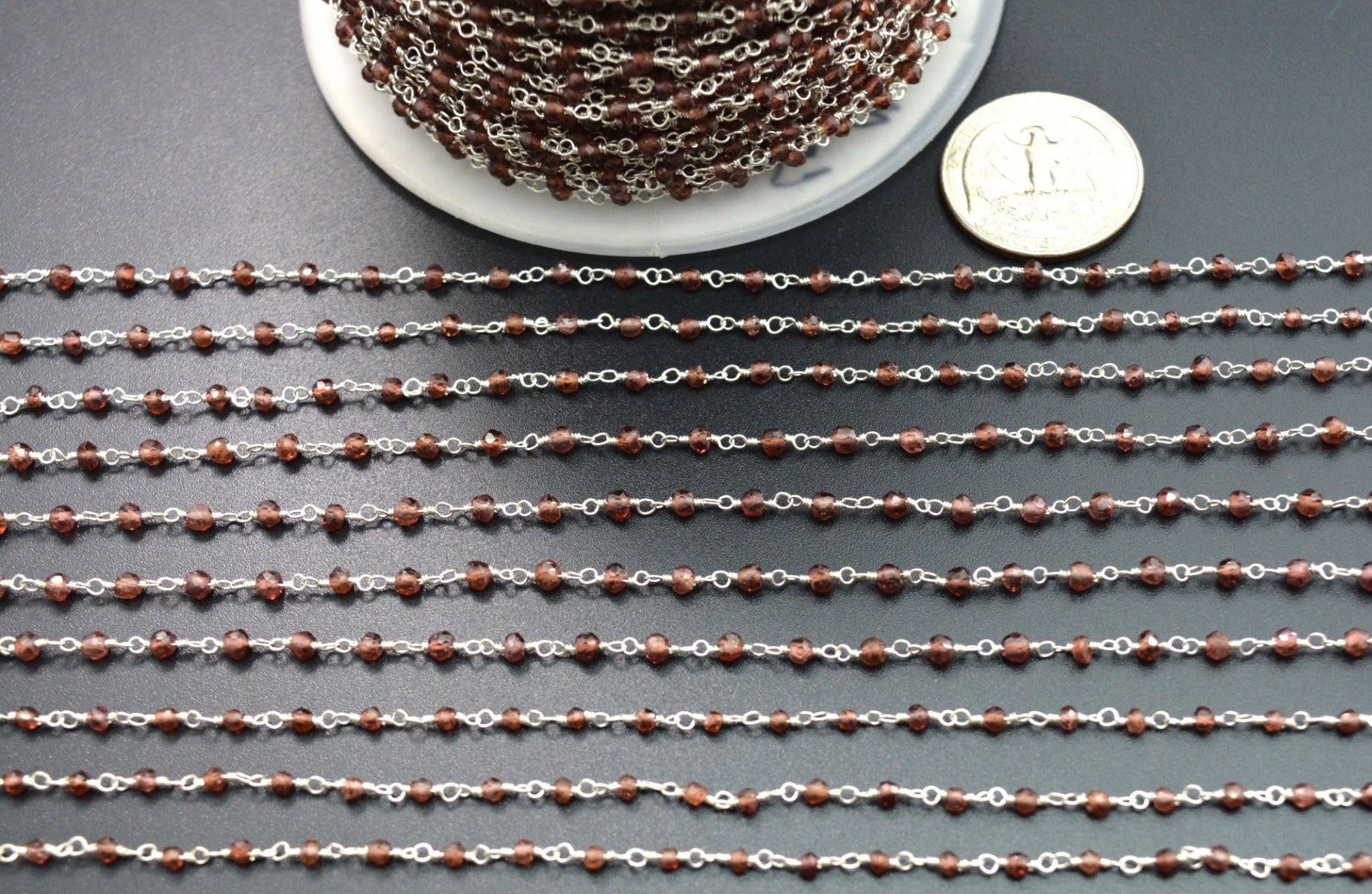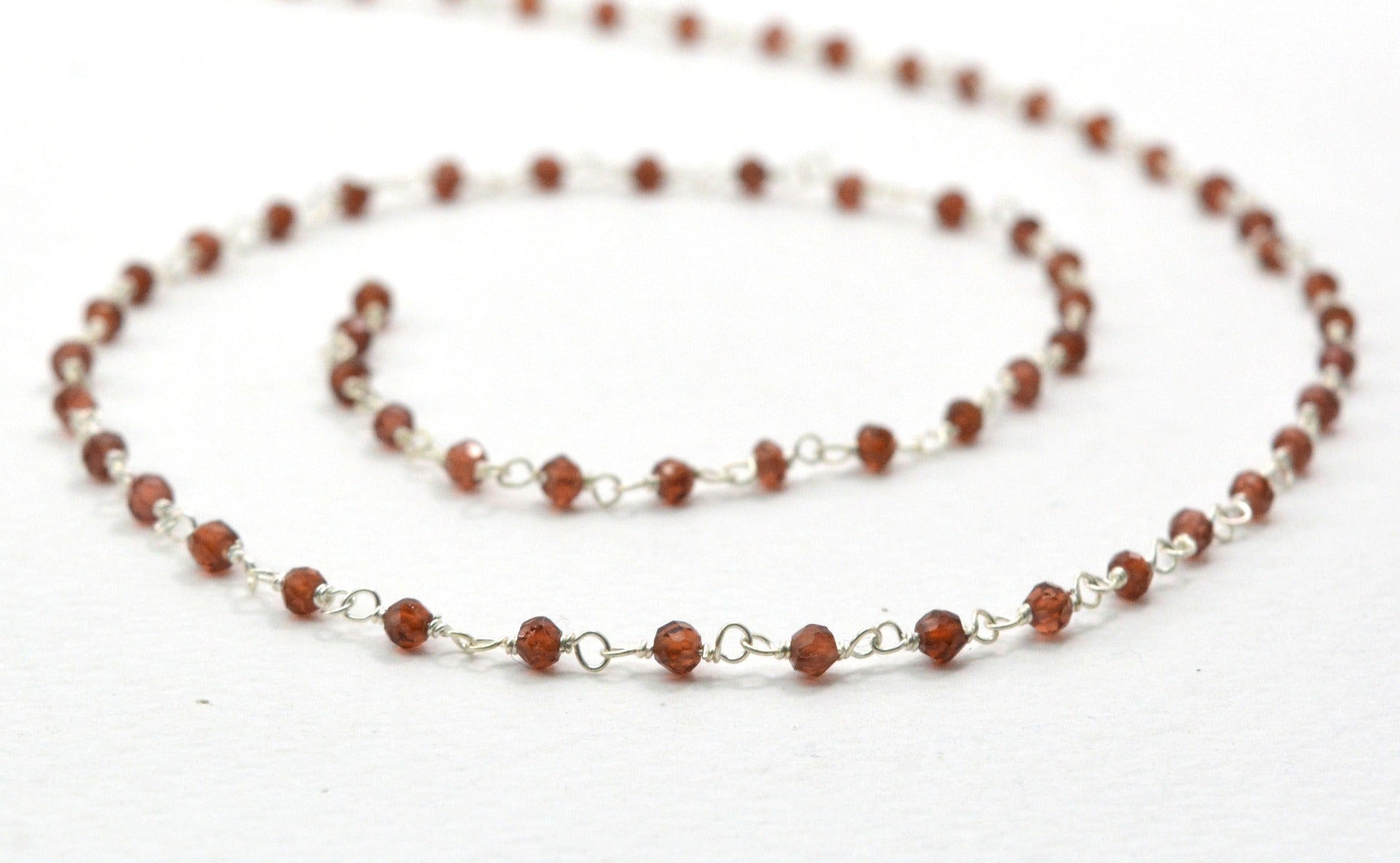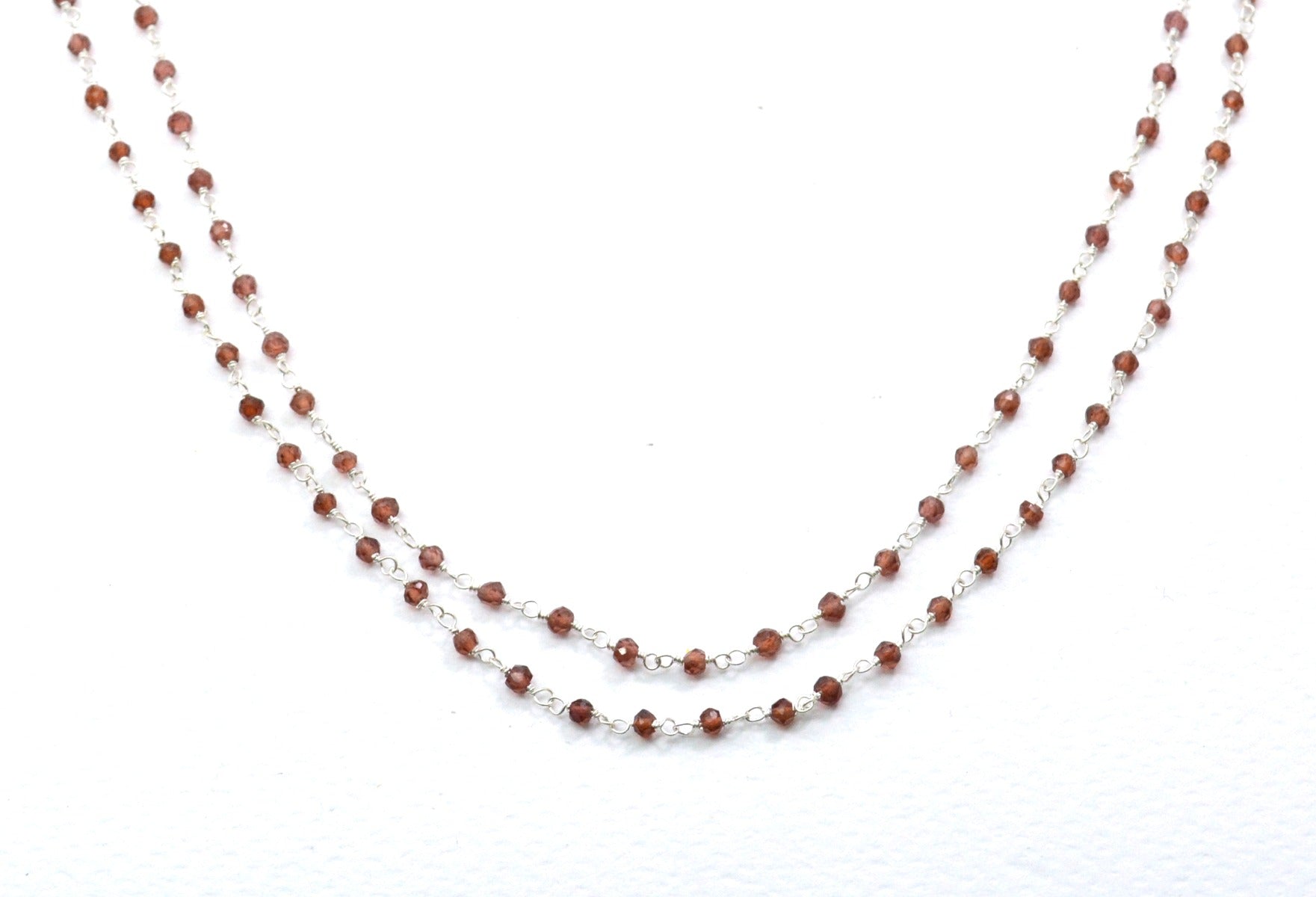 Gorgeous Rosary Chain - Garnet 925 Silver Gold 3mm