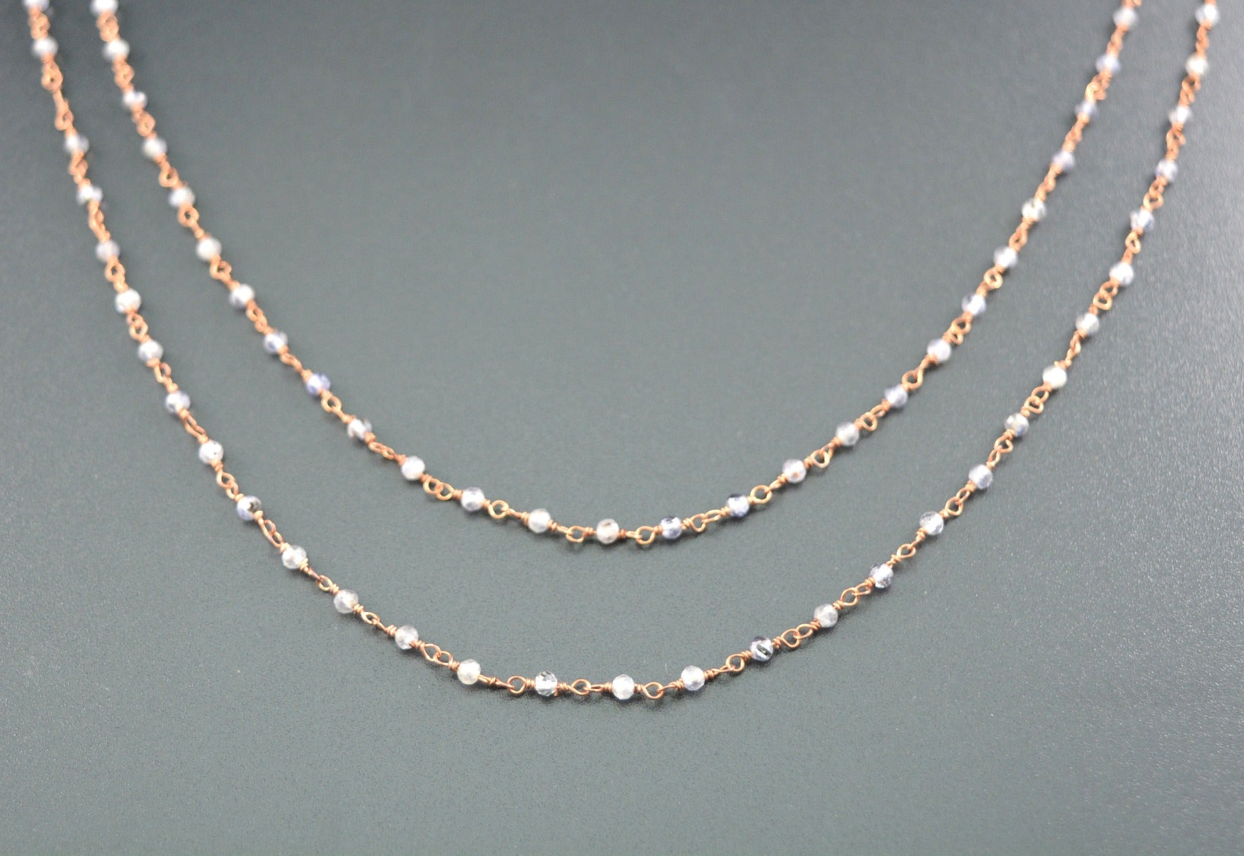 Gorgeous Rosary Chain - Stone 925 Silver Gold 2mm