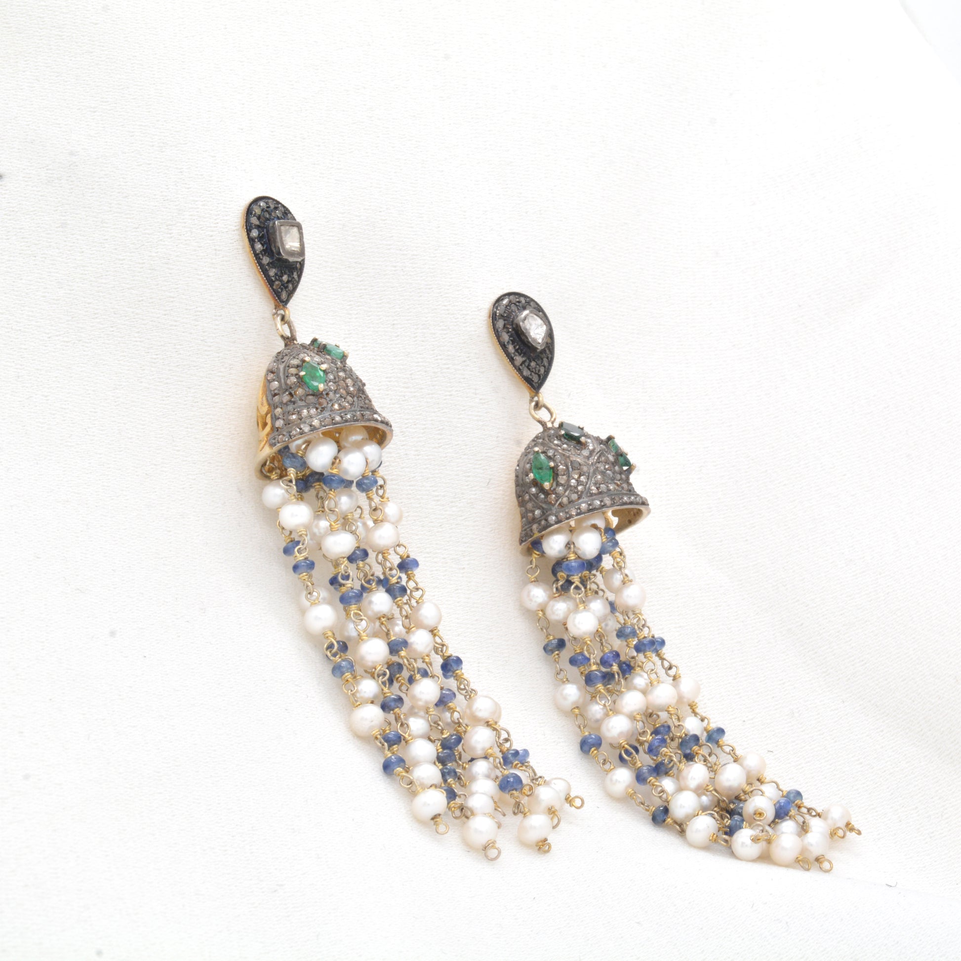 An elegant fusion of pearls, colorful stones, and expert craftsmanship, these earrings are a timeless addition to any jewelry collection.