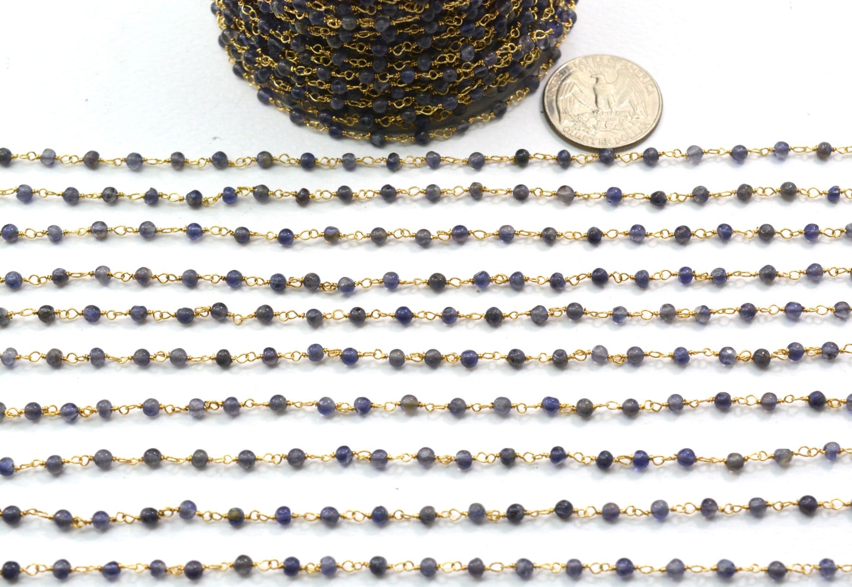 Graceful Iolite Rosary Chain in 925 Silver Gold - 3mm