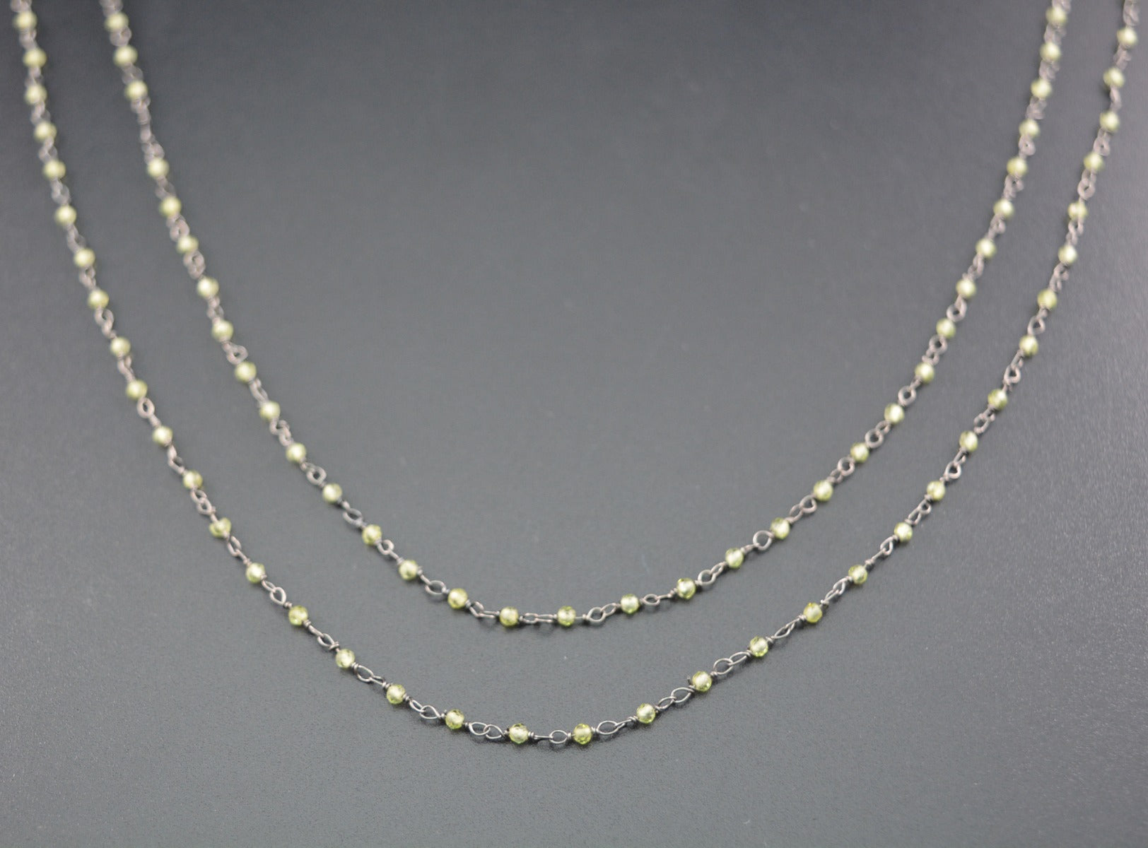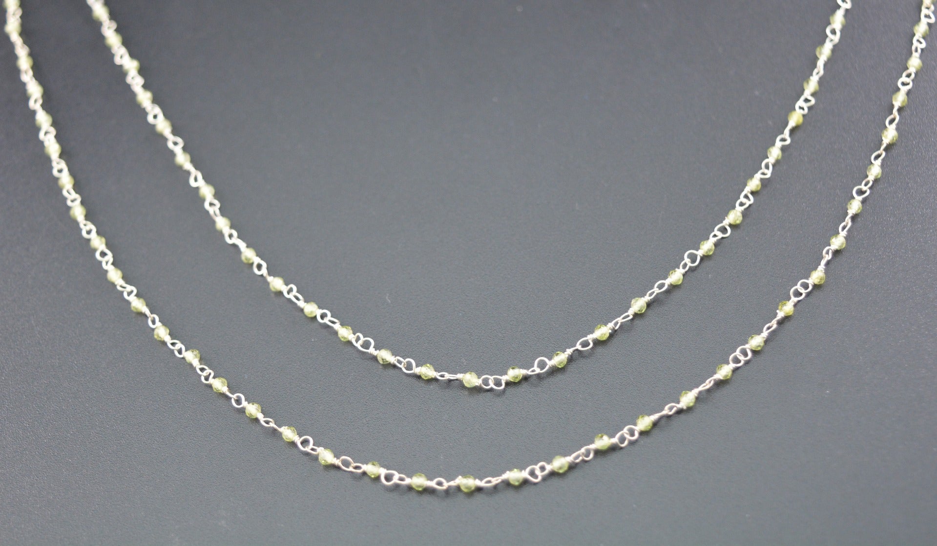 Graceful Peridot Rosary Chain in 925 Silver Gold - 2mm