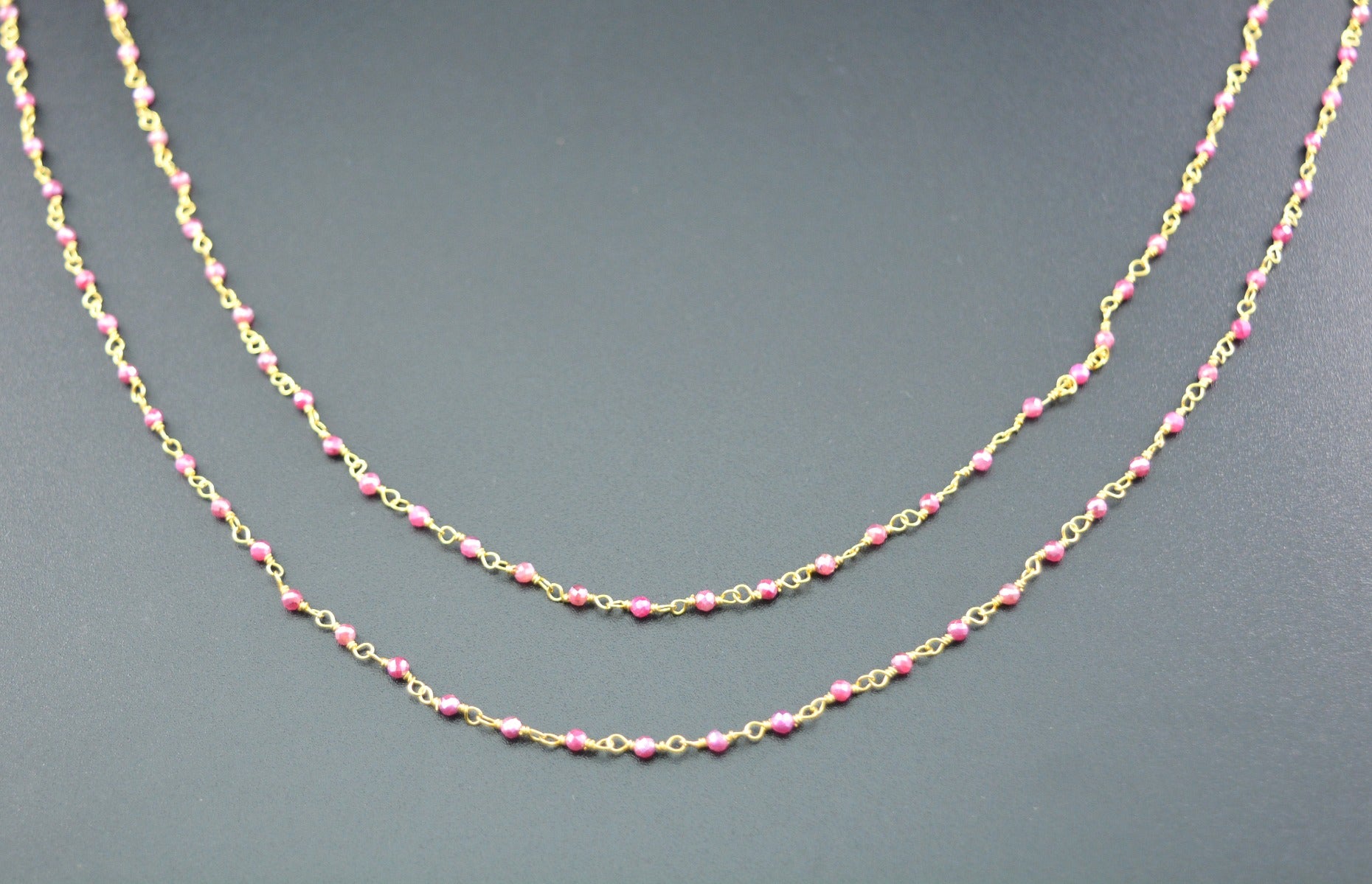 Graceful Rosary Chain - Stone 925 Silver Gold 2mm