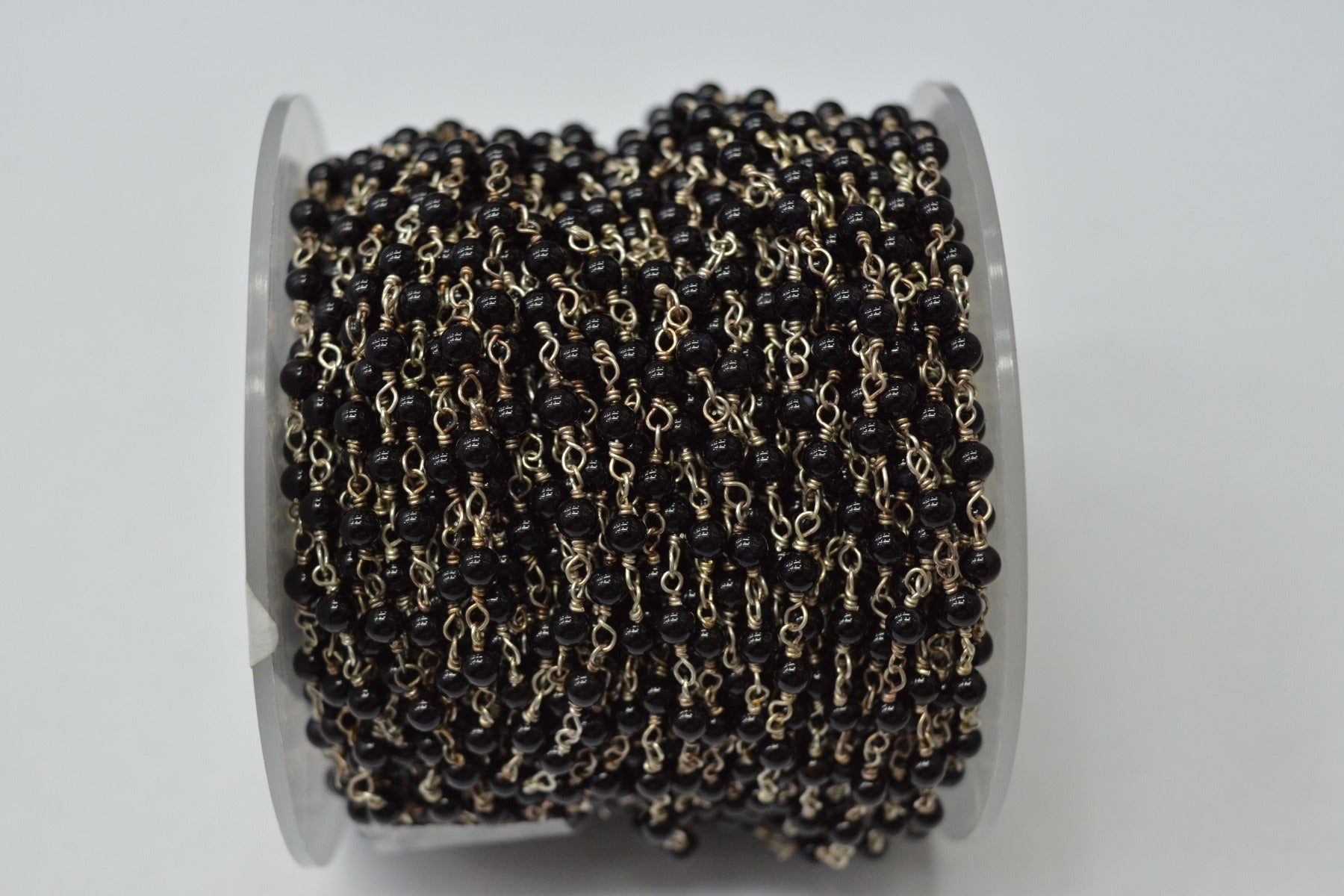 925 Sterling Silver Gold Plated Beautiful Wire Wrapped Rosary Chain With Roundel Shape 3.00mm Black Spinel Stone. Sold By foot, ROS2-5551