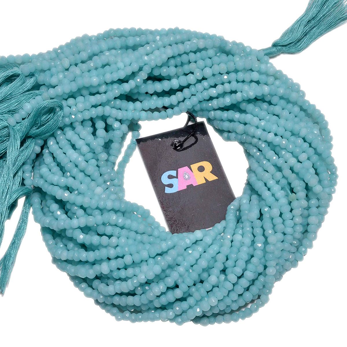 Green Chalcedony Faceted Roundel Beads - (Dyed) Lite 3.5-4mm