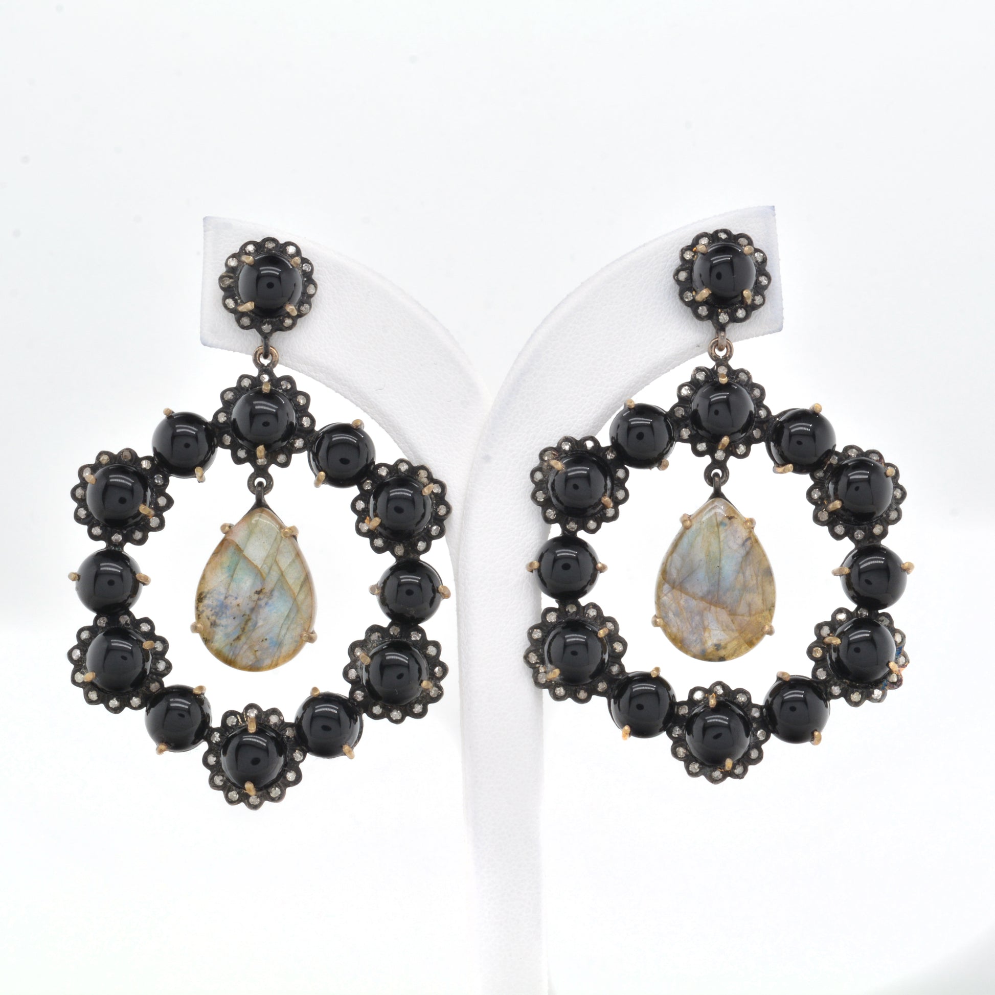 Handcrafted 925 Silver Drop Earrings with Mixed Gemstones