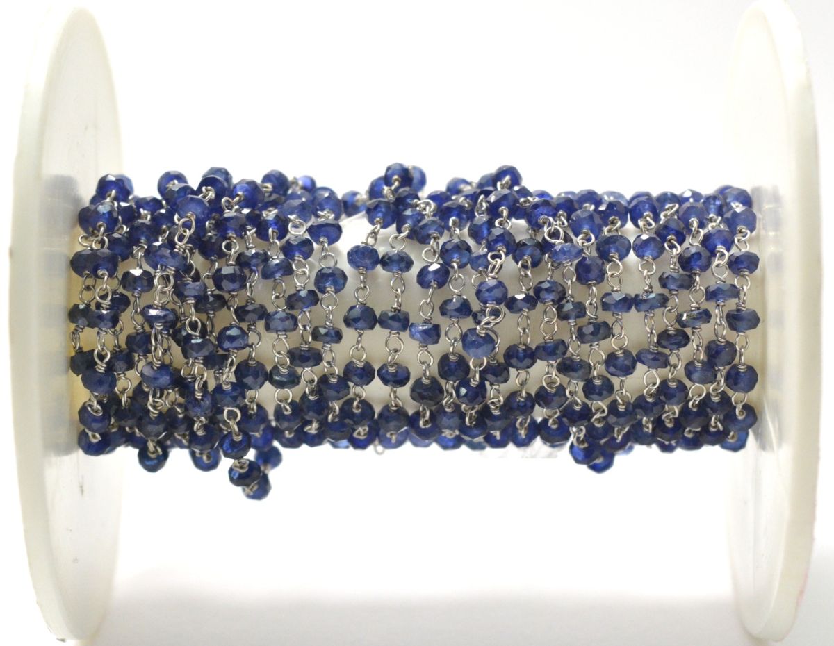 Handmade 14k Solid White Gold Rosary Chain Studded With Natural Sapphire in 2.2.50mm Size - SGGRC-012B, Sold By 1 Inch.