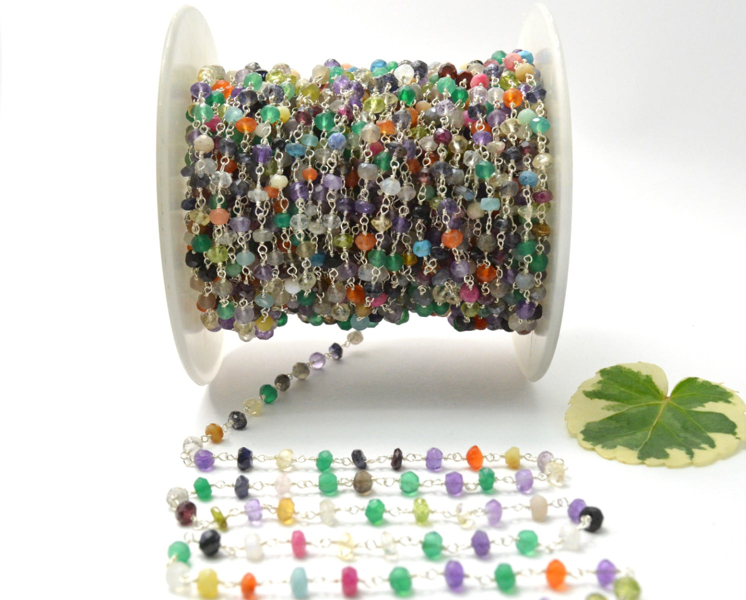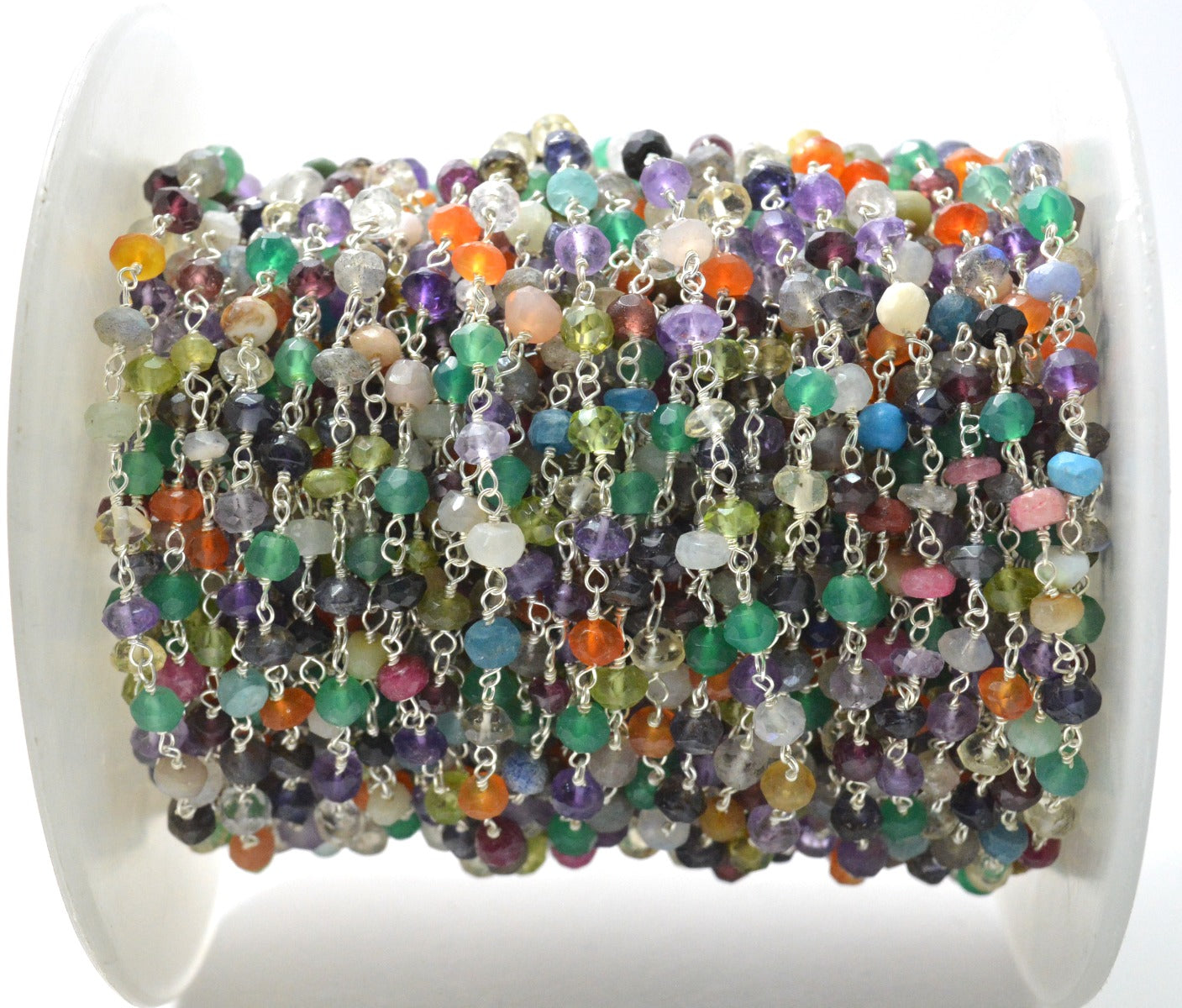 Handmade 925 Silver Rosary Chain - Multi Stone 3.50mm