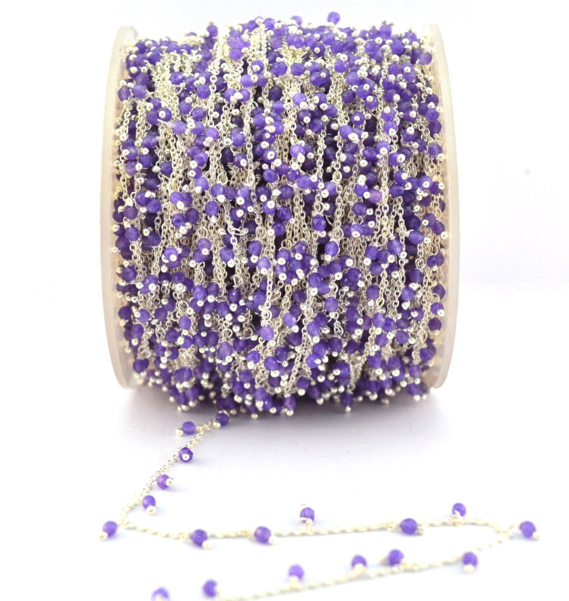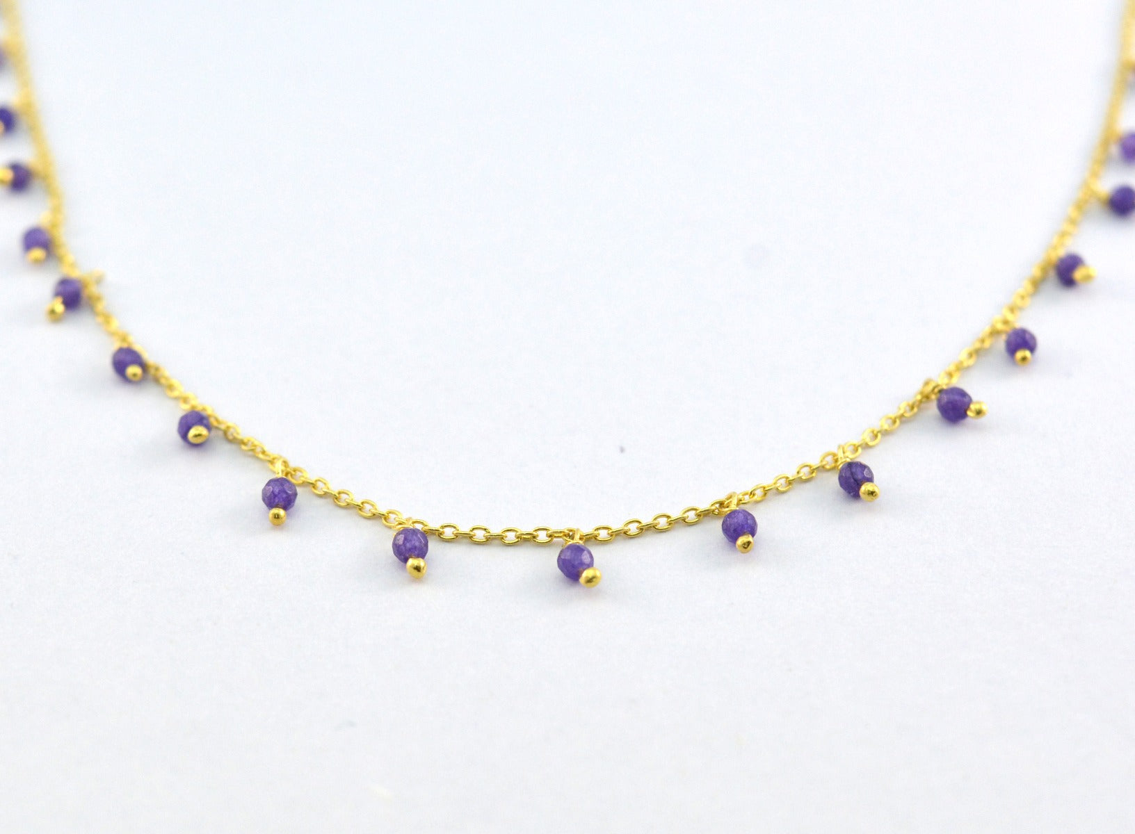 Handmade Amethyst Rosary Chain in 925 Silver Gold - 2mm