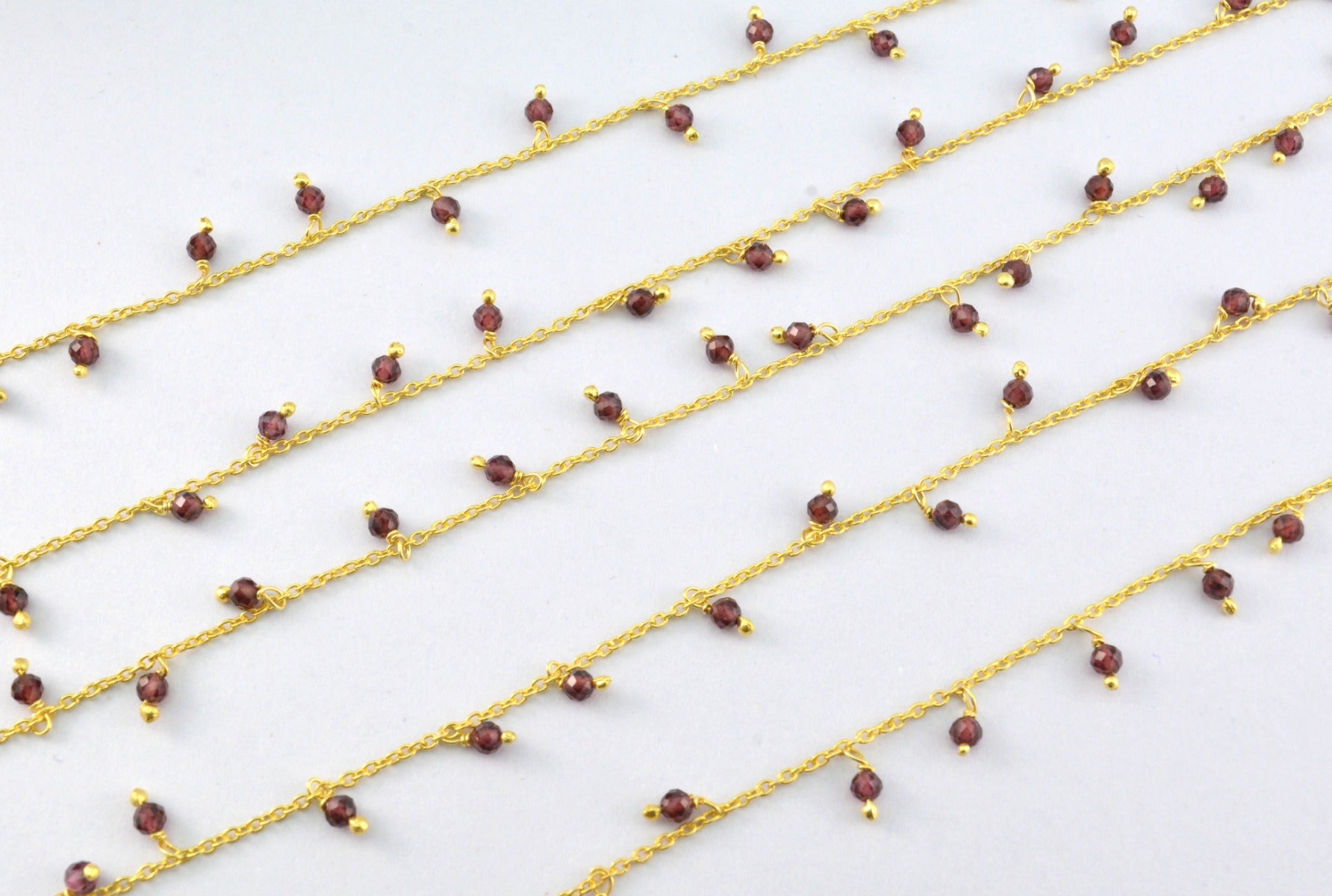 Handmade Garnet Rosary Chain in 925 Silver Gold - 2mm
