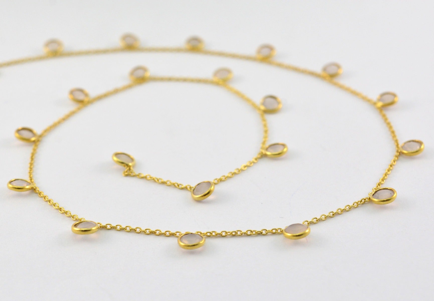 Handmade Quartz Rosary Chain in 925 Silver Gold - 4mm