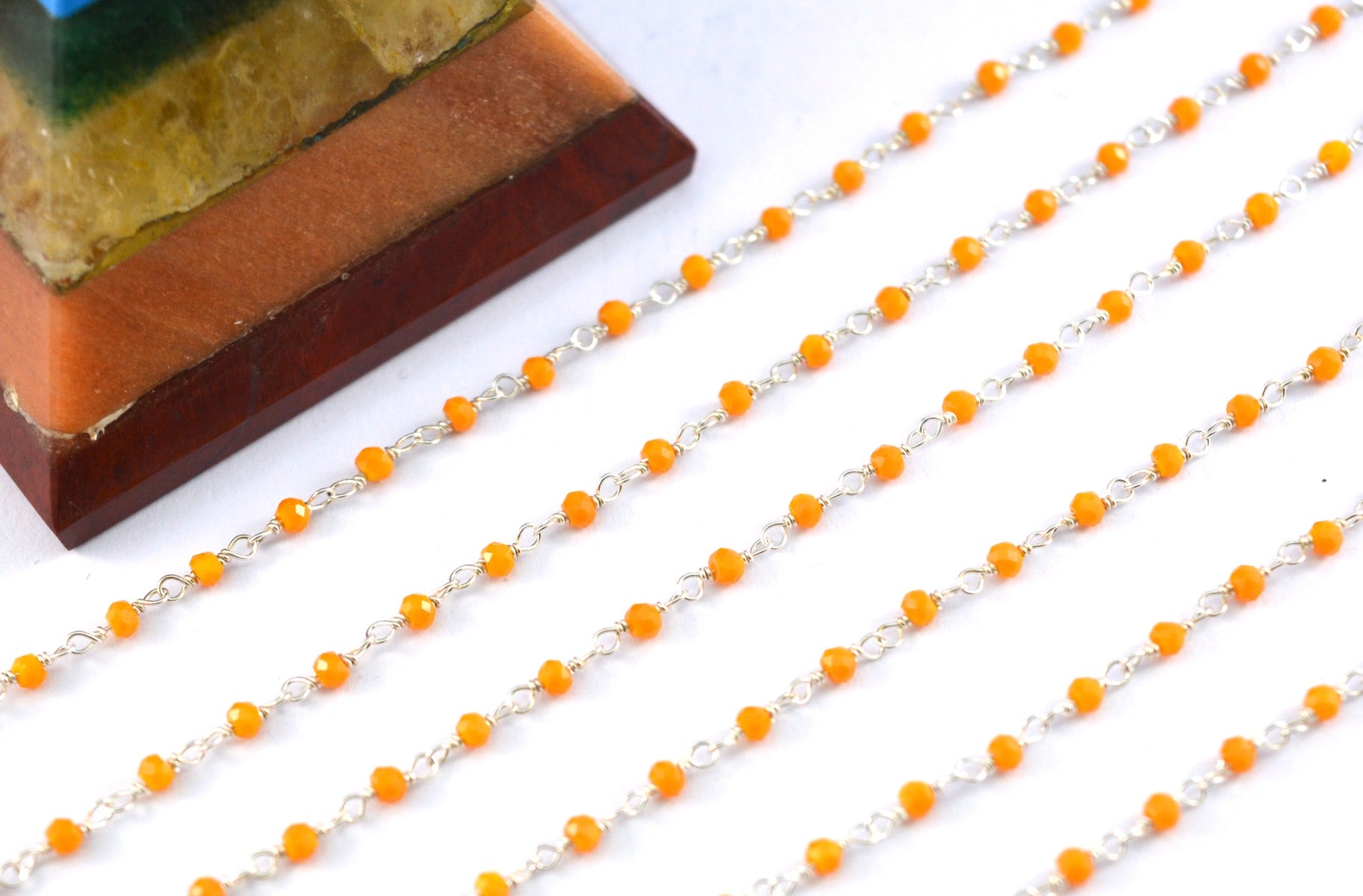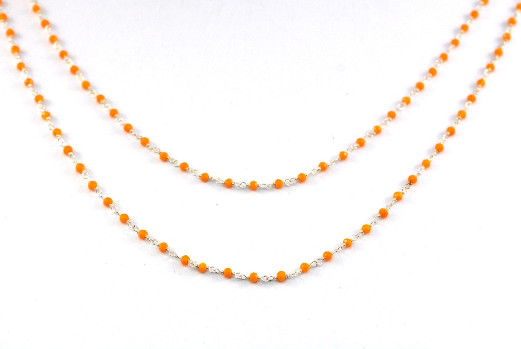 The gorgeous handmade 925 Sterling Silver Gold Hydro Orange Chalcedony Rosary Chain is perfect finding for DIY jewelry making and can be used in multiple different ways and design. Order Now !