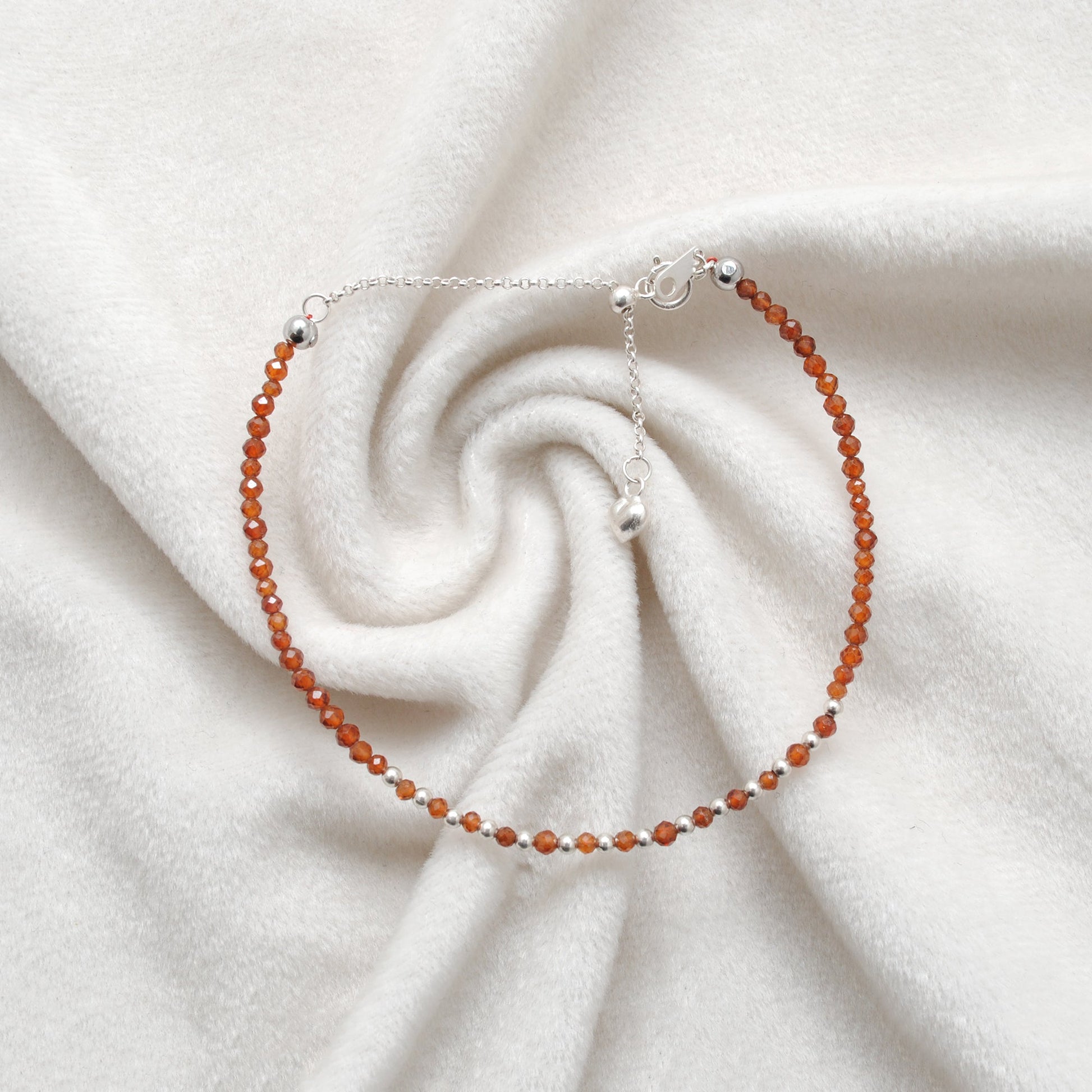 This elegant Hessonite Silver Dainty Bracelet is a timeless accessory that adds a touch of sophistication to any outfit. Crafted with high-quality hessonite stones and silver, this bracelet is sure to catch the eye. The perfect combination of luxury and simplicity, it makes a great addition to any jewelry collection.
