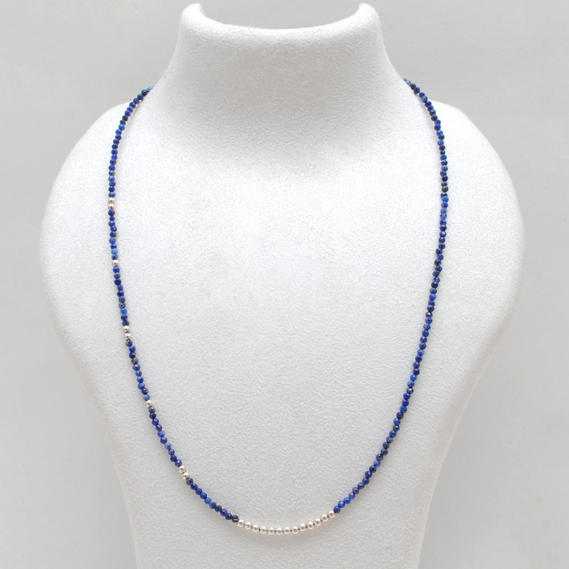 Lapis Lazuli Gemstone Silver Beaded Necklace with Silver Charms – 18 Inch Necklace