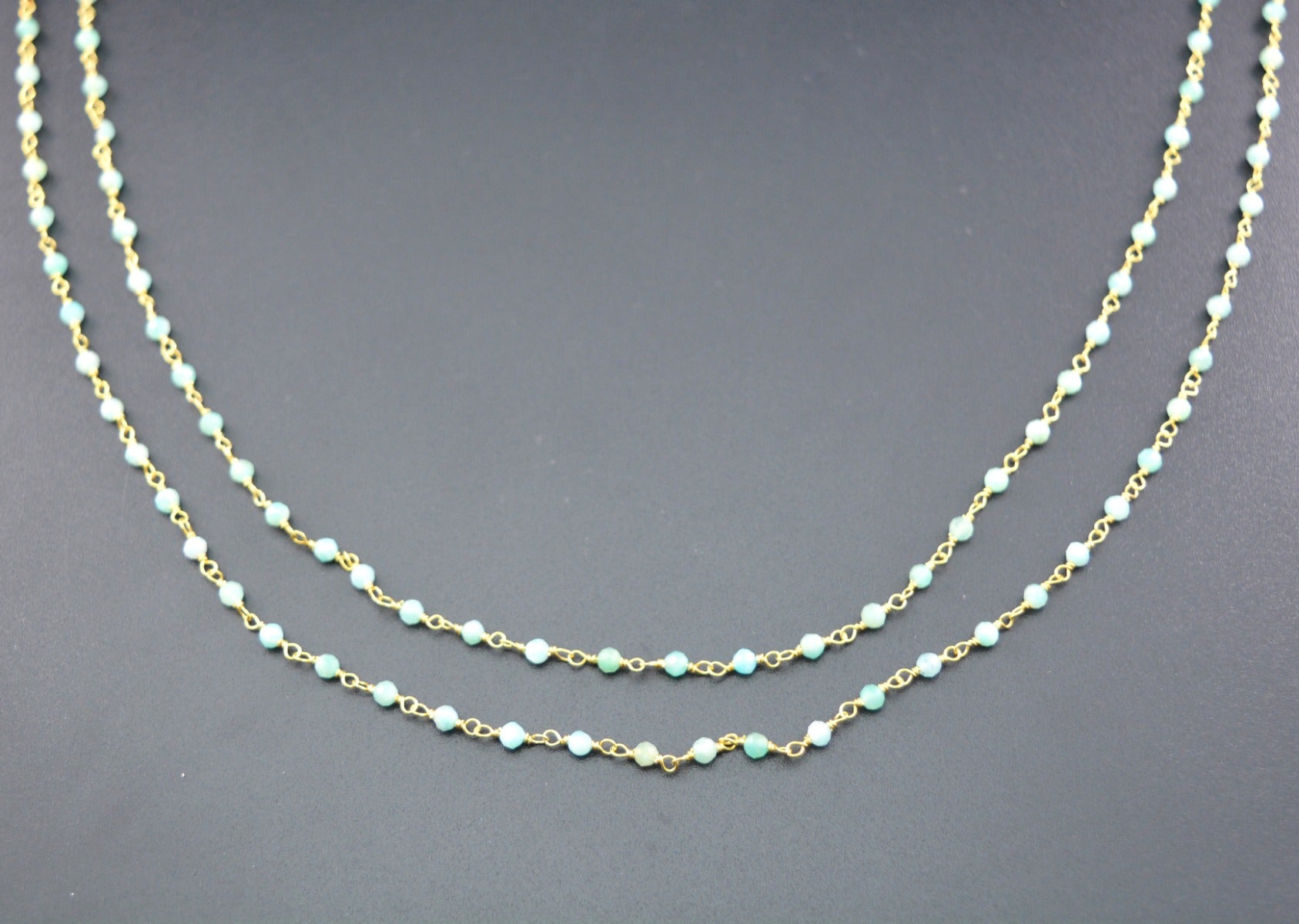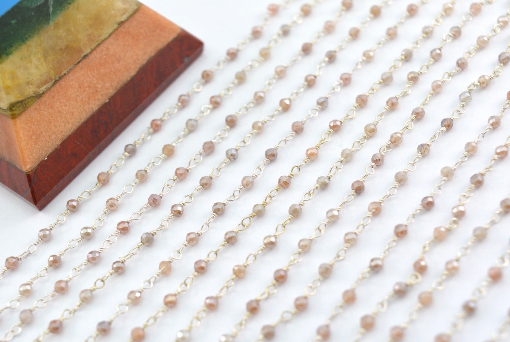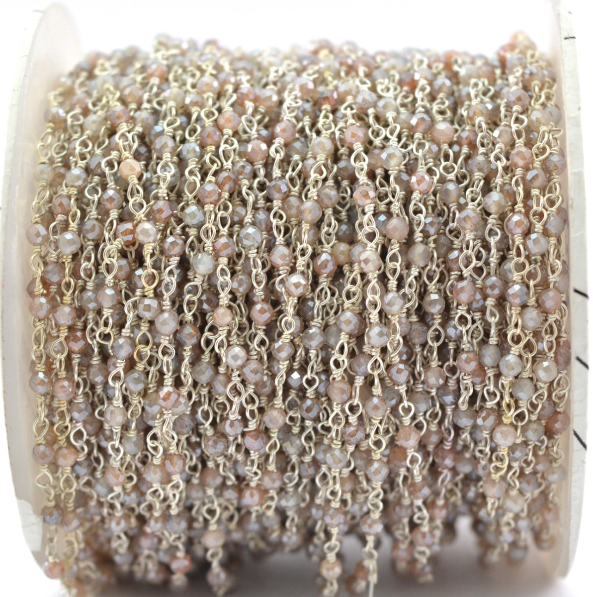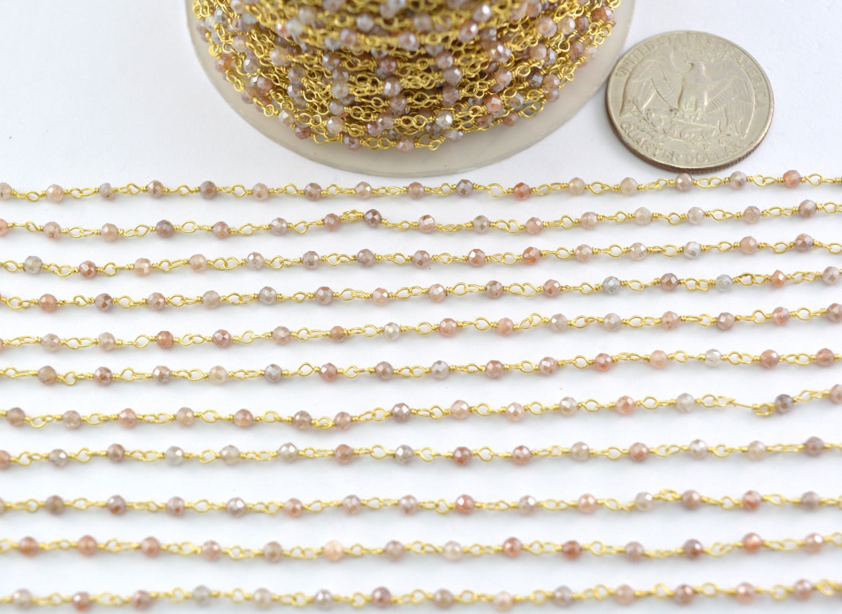 Moonstone Rosary Chain - 925 Silver Gold, 2mm