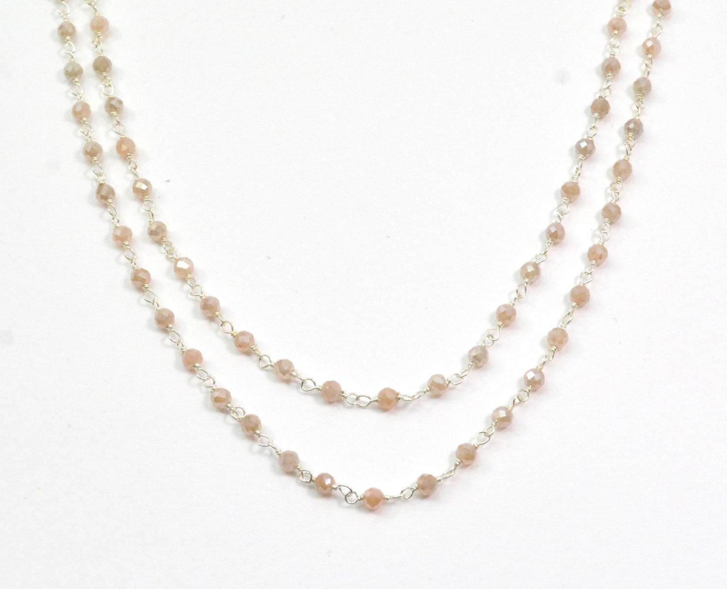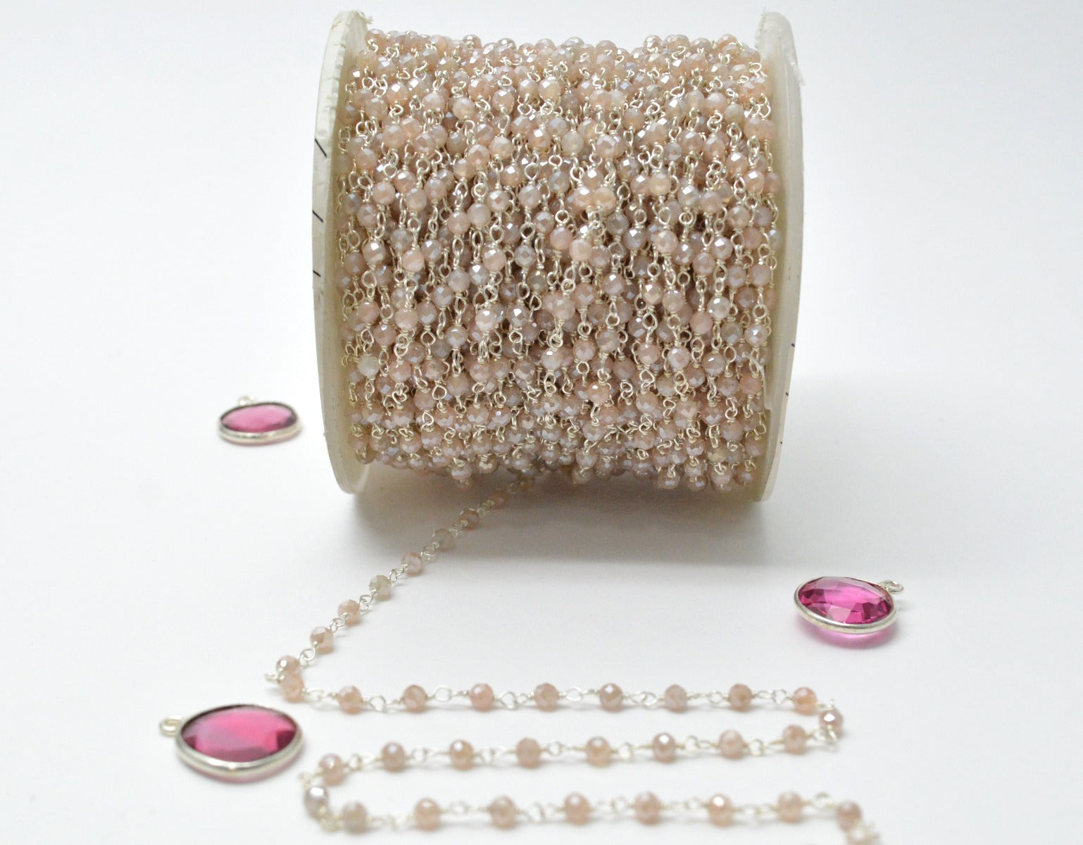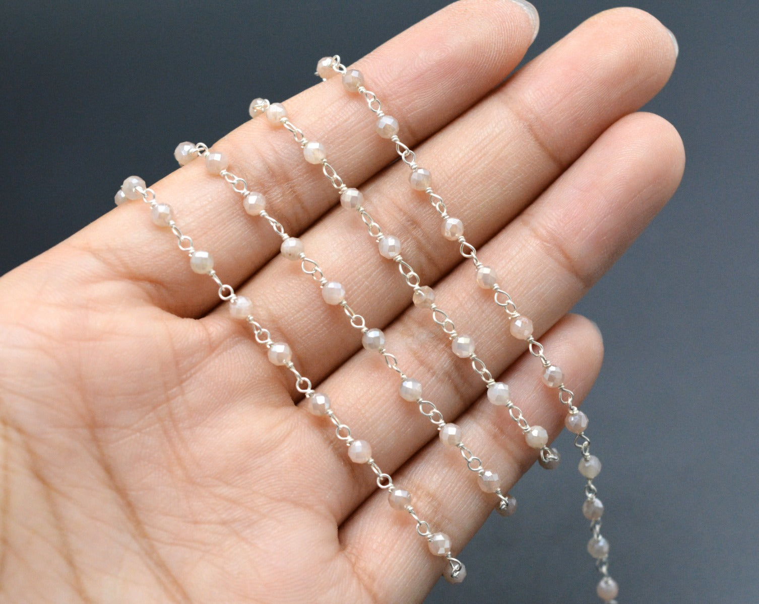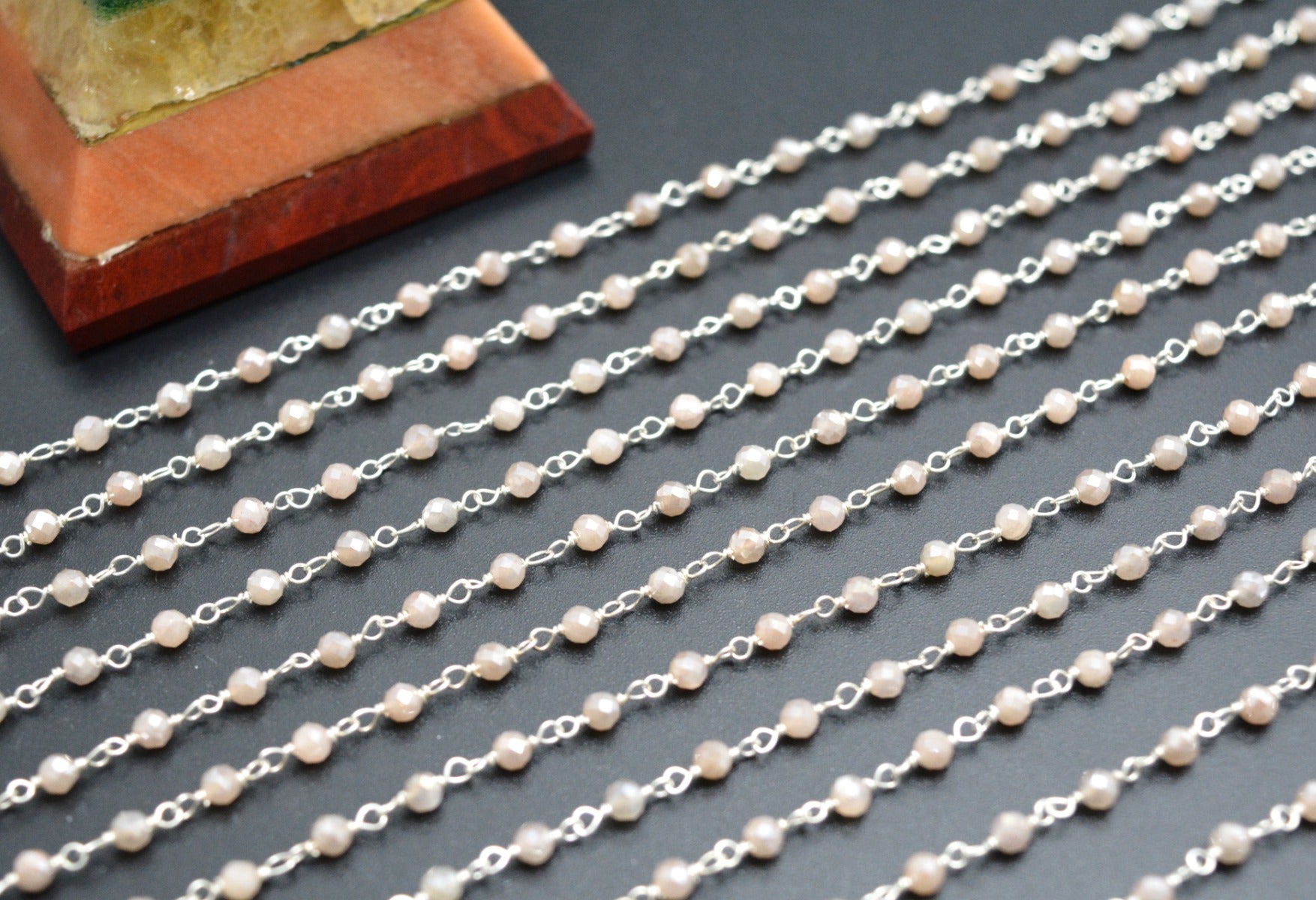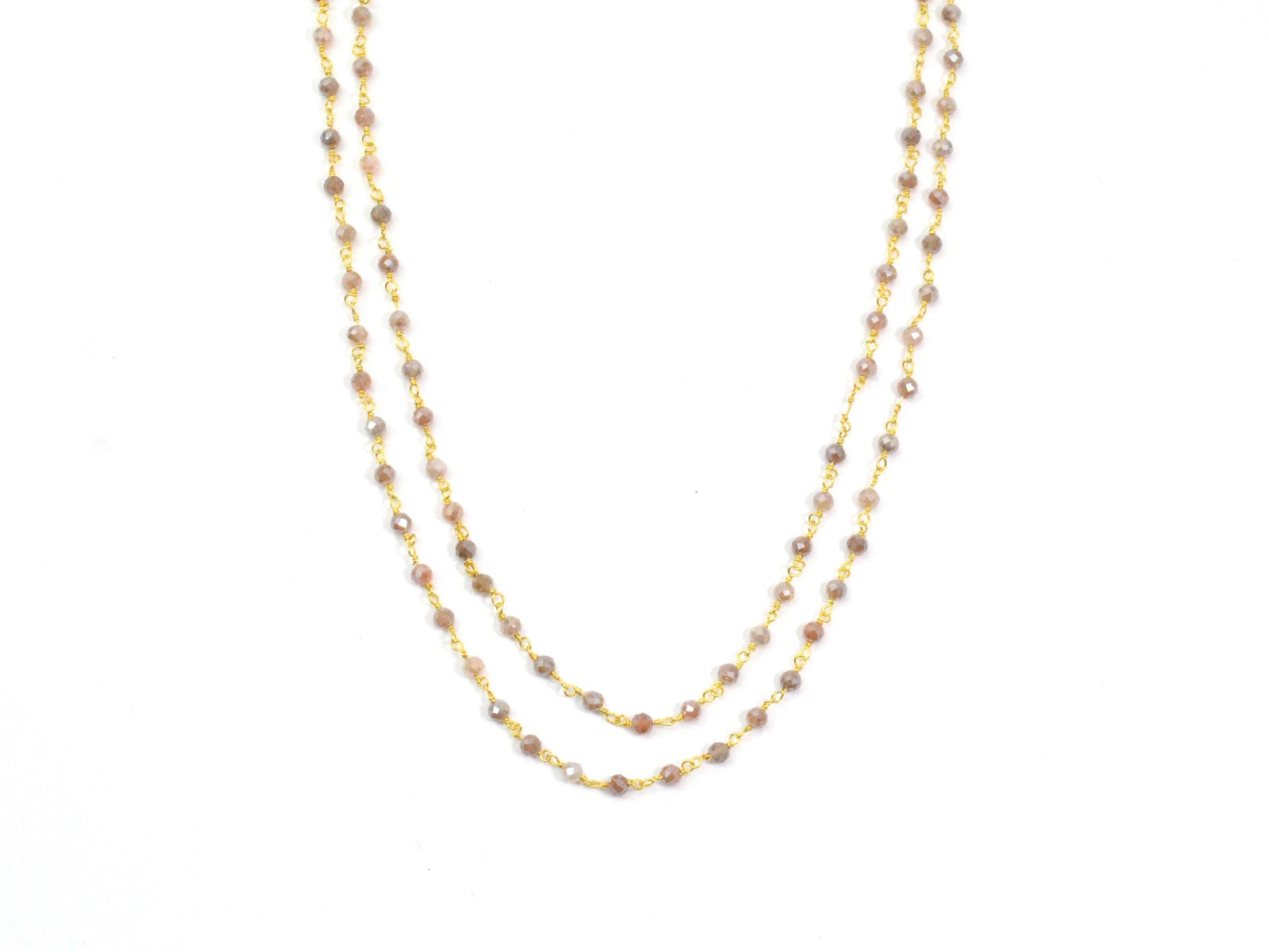 Moonstone Rosary Chain - 925 Silver Gold, 3mm