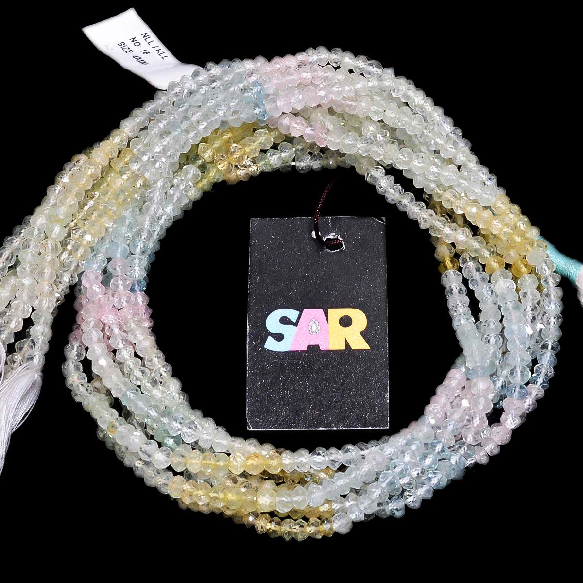 Multi Aquamarine Faceted Roundel Beads withAAA Quality (4mm)