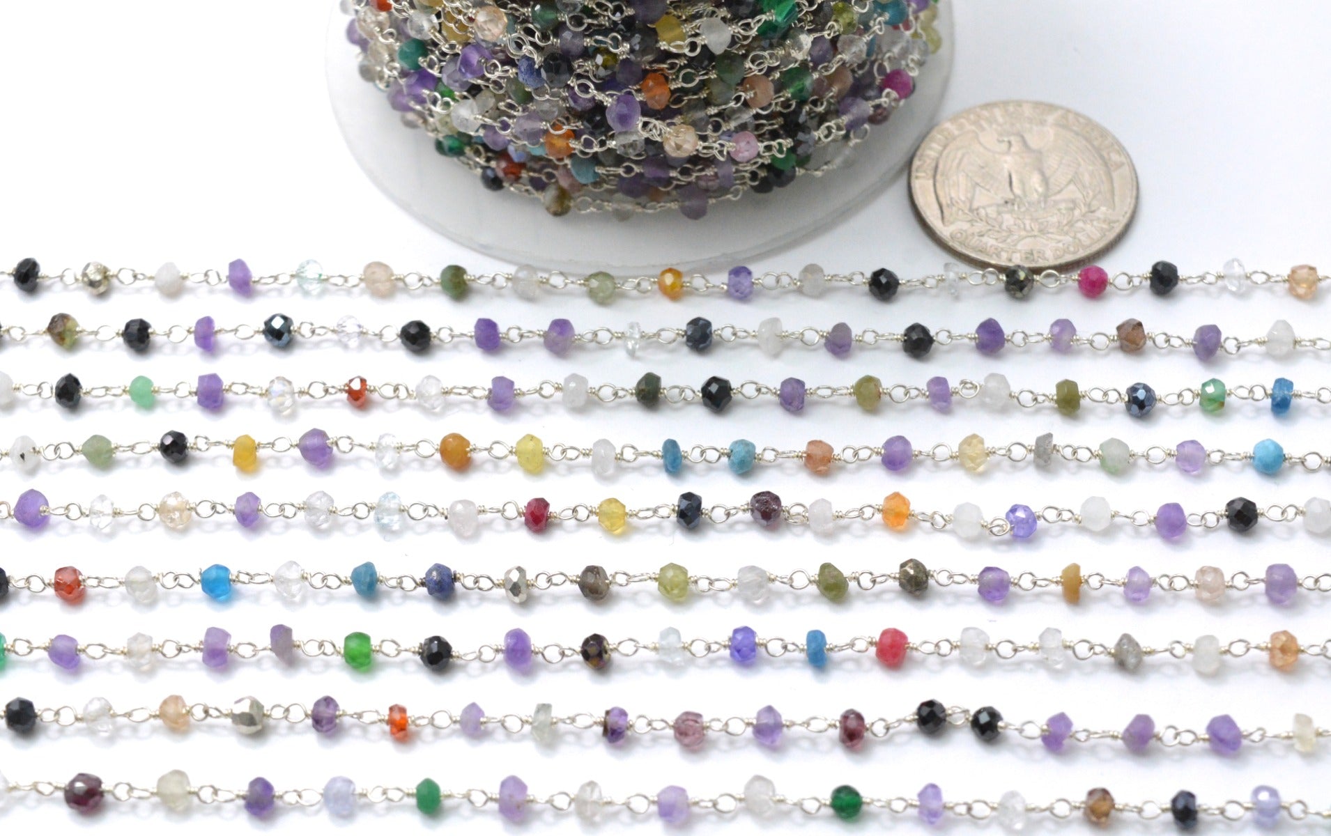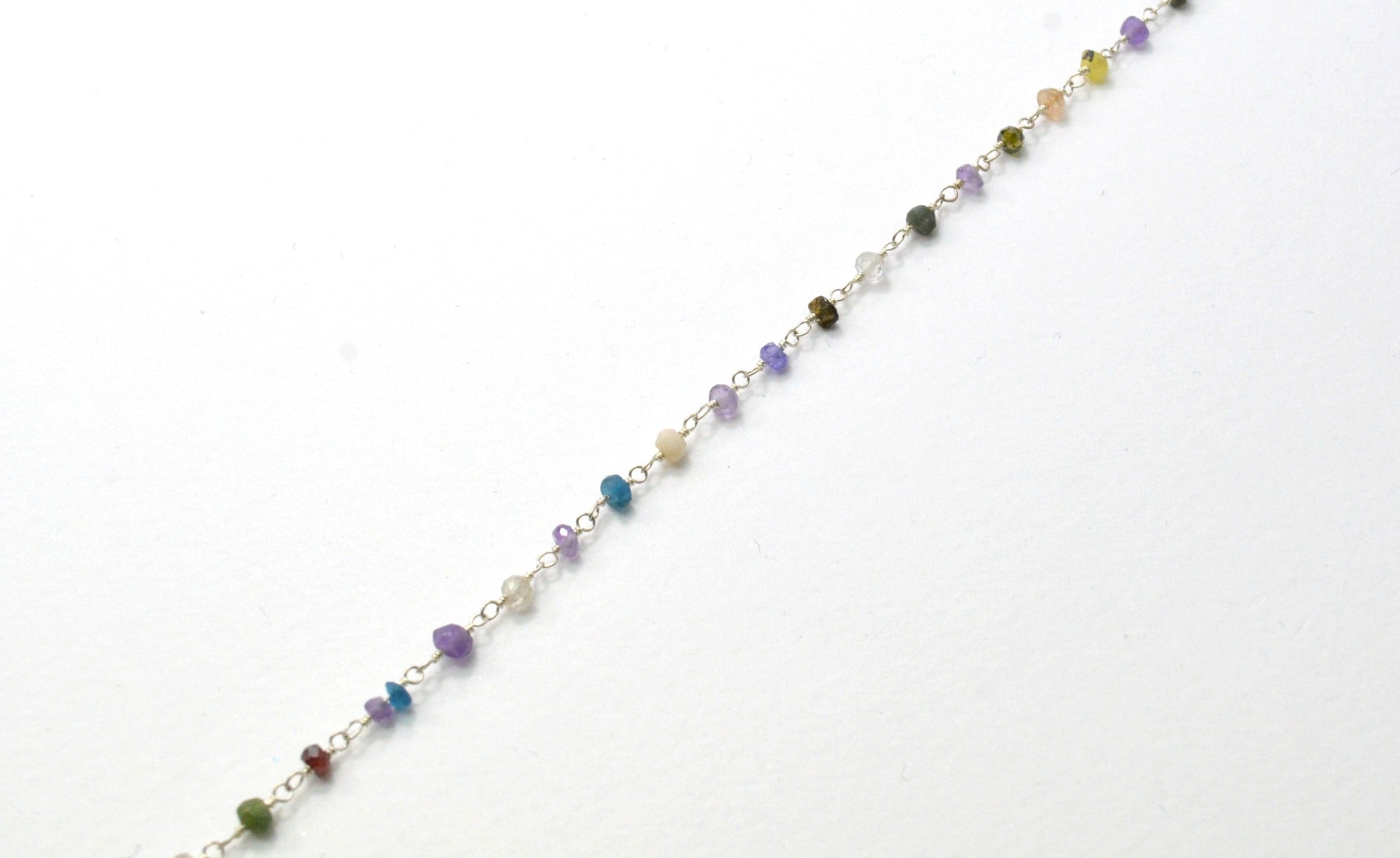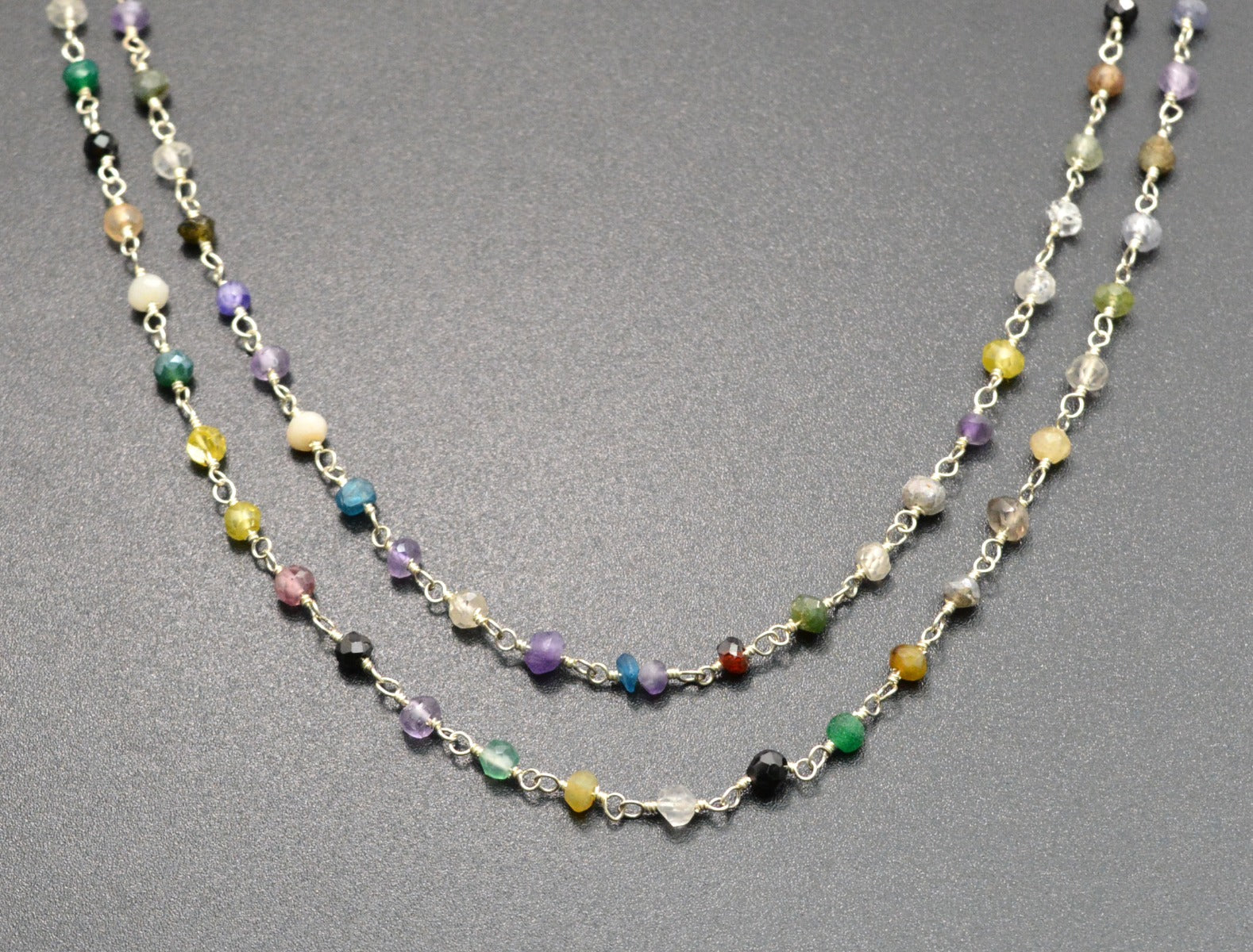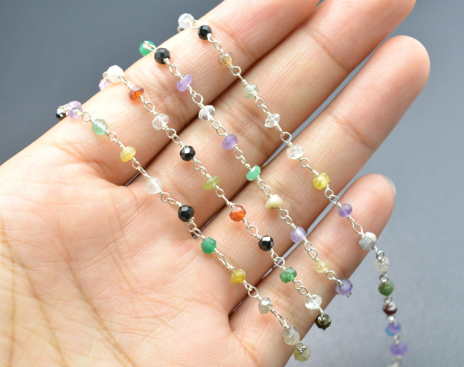 Multi Stone Rosary Chain - 925 Gold Silver, 2mm