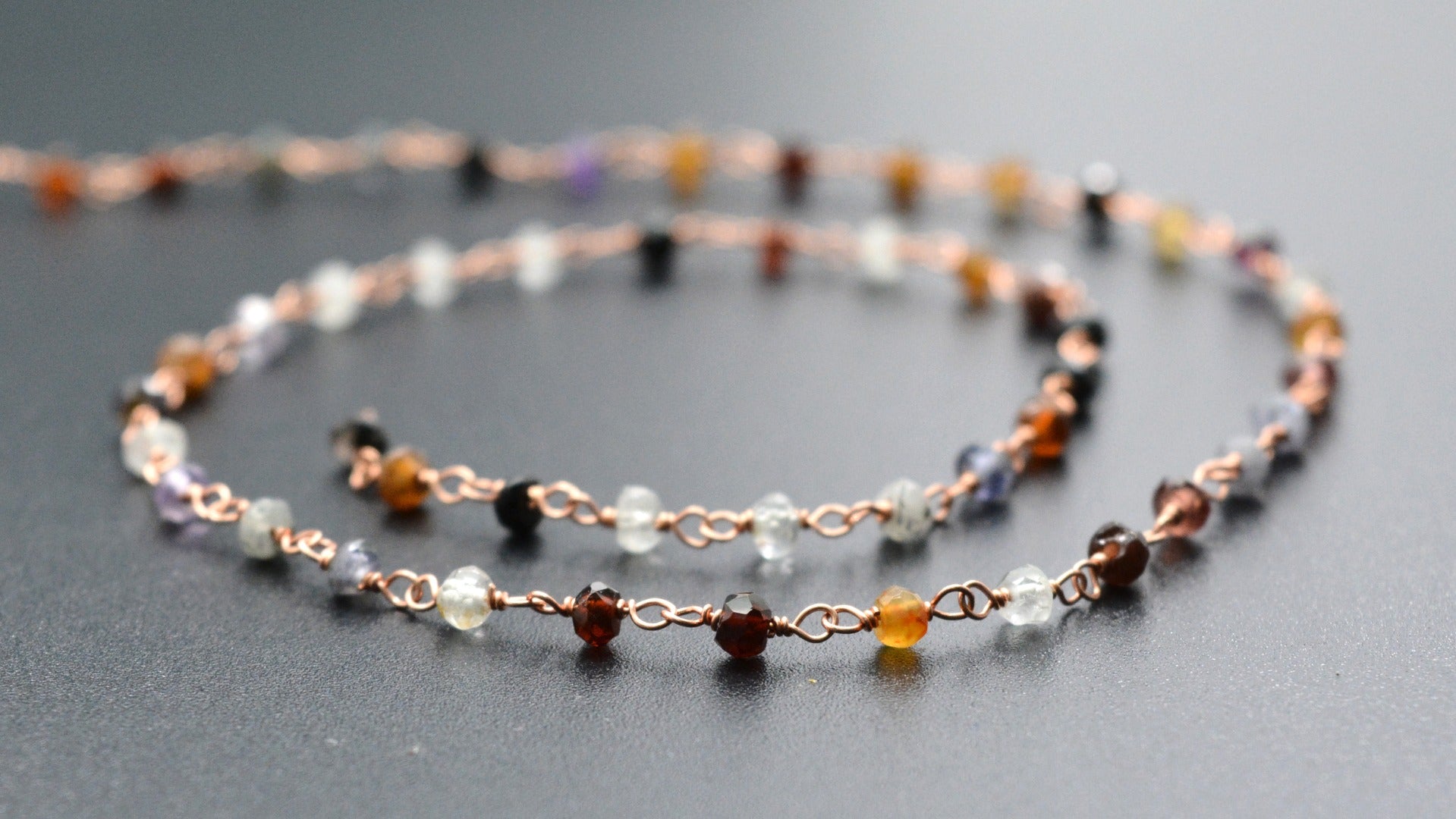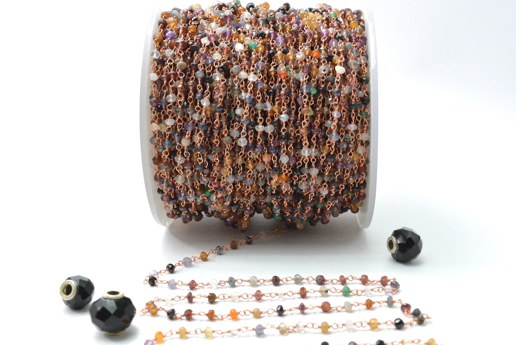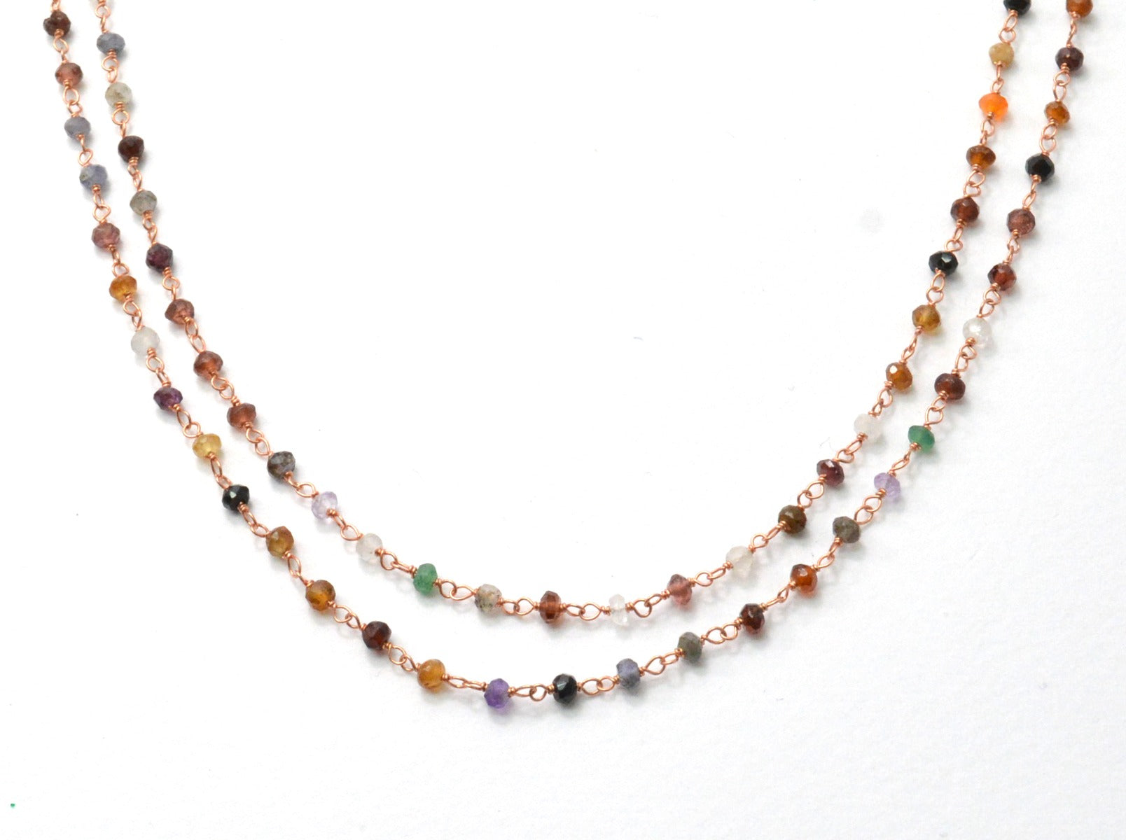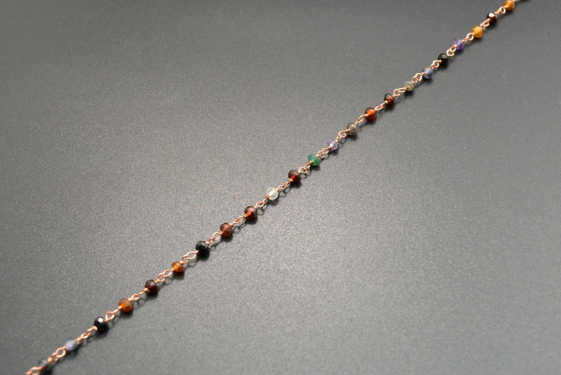 Multi Stone Rosary Chain - 925 Silver Gold, 3mm
