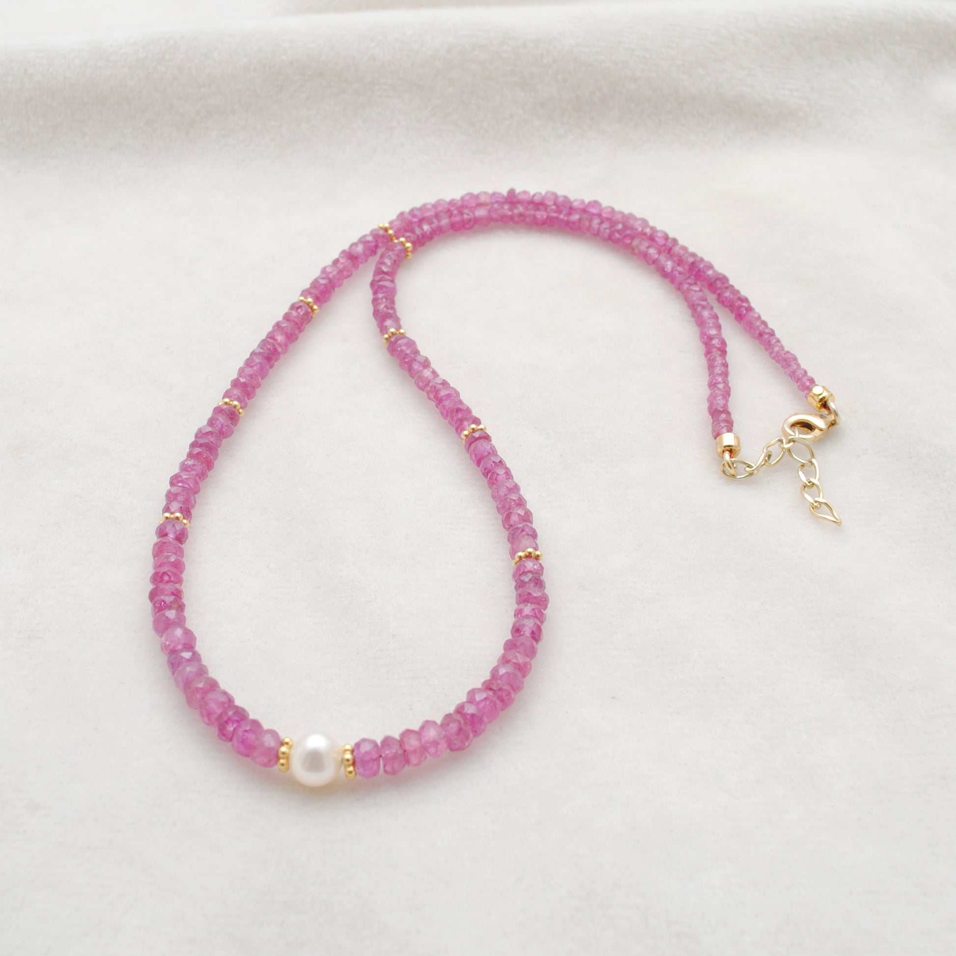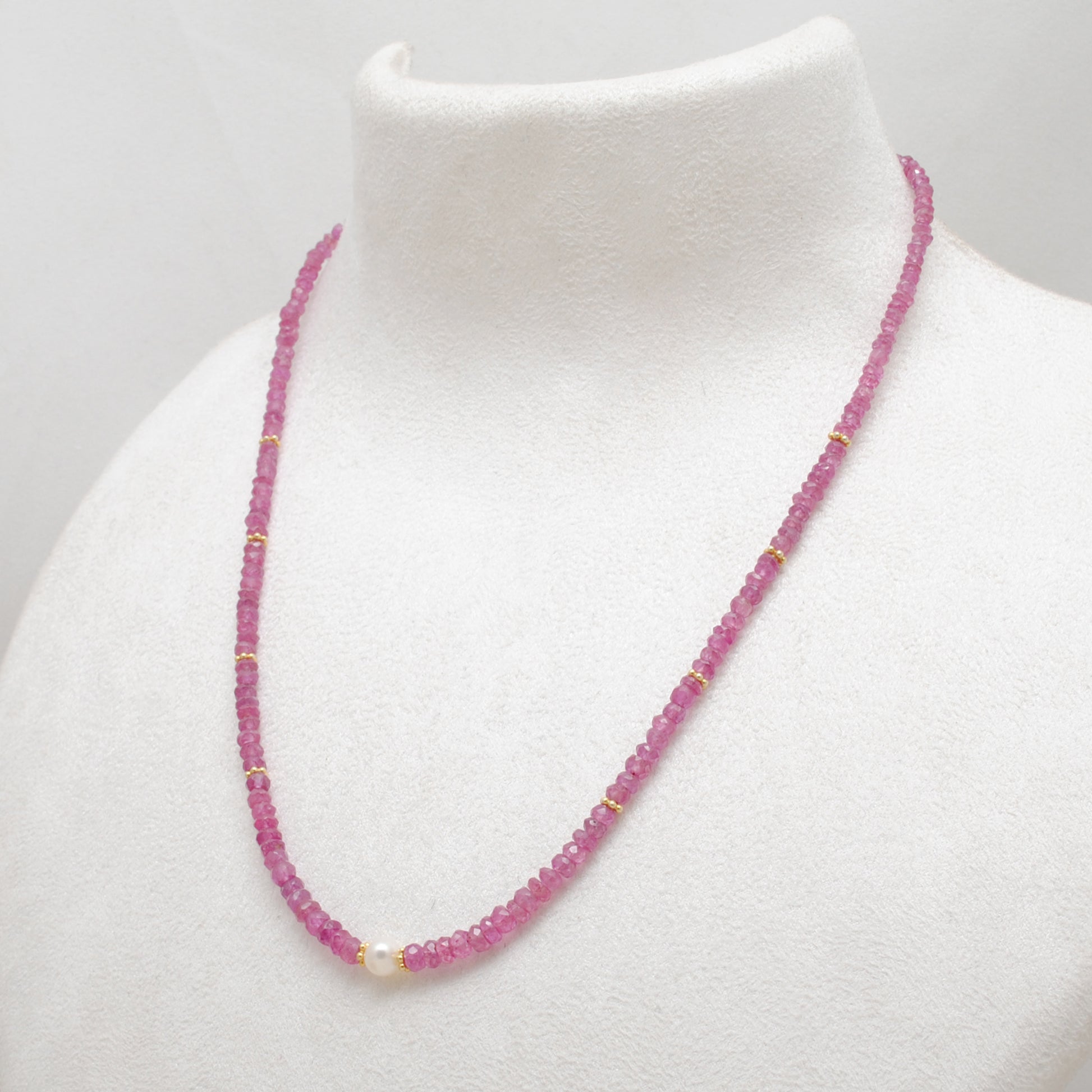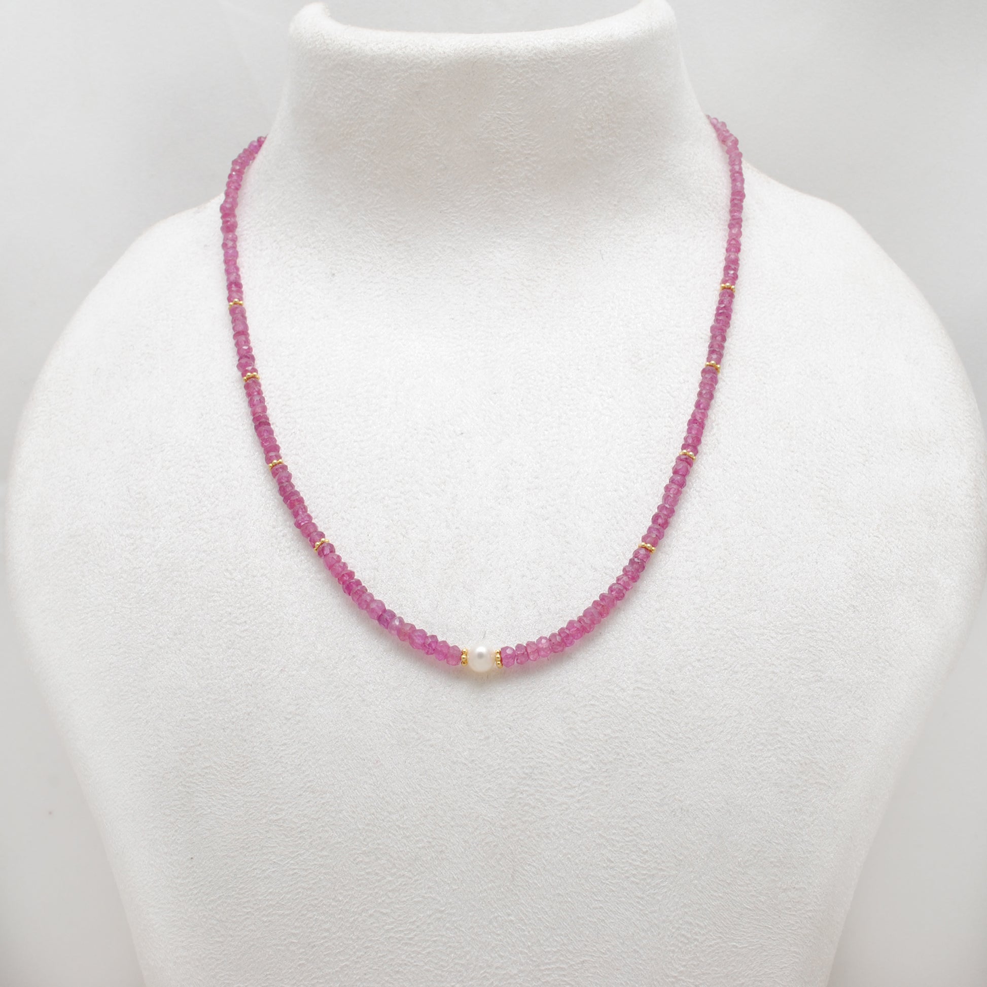 Handmade Natural Ruby & Pearl Beaded Necklace