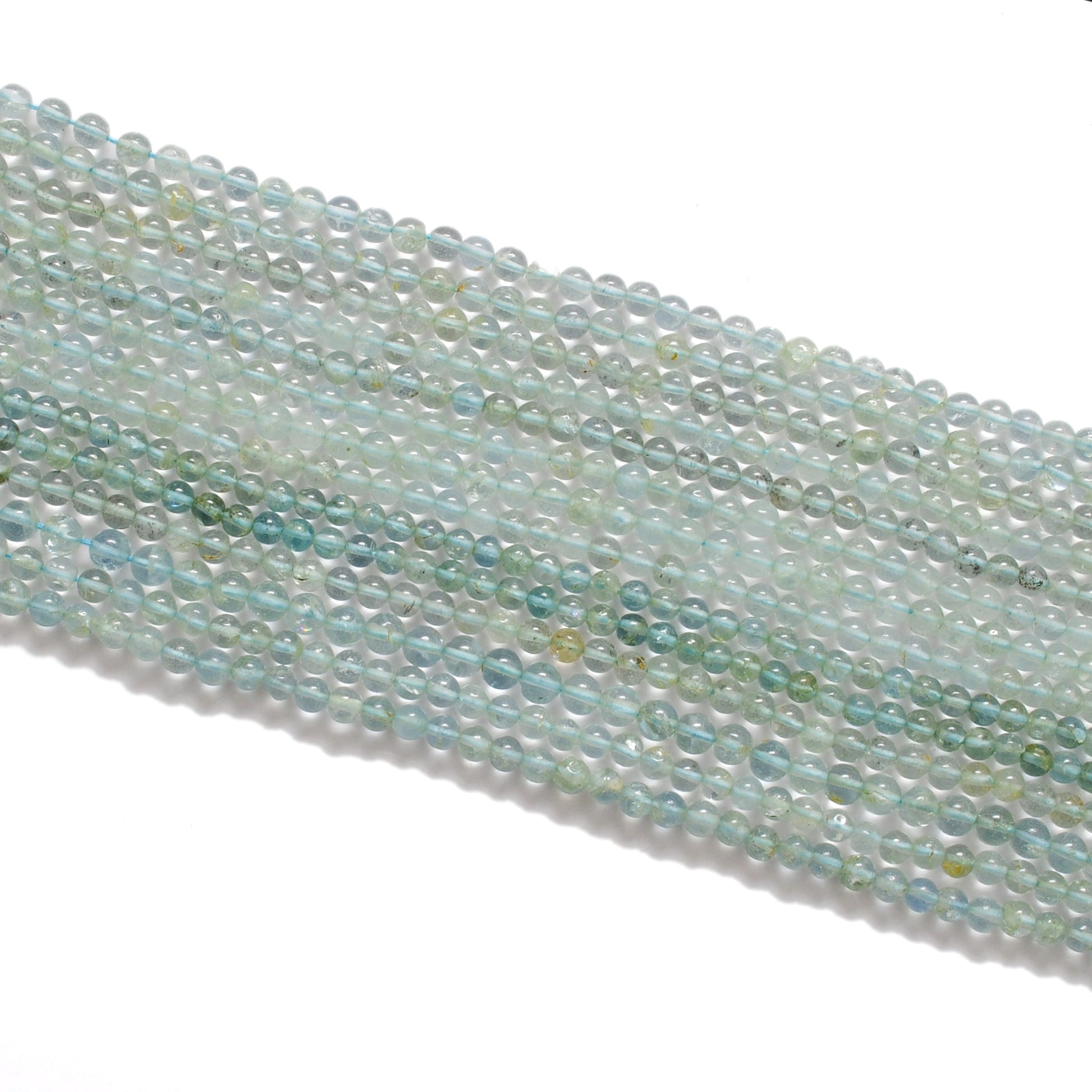 Natural Aquamarine Round Gemstone Beads, 4-5mm – 15" Strand – Handmade Jewelry