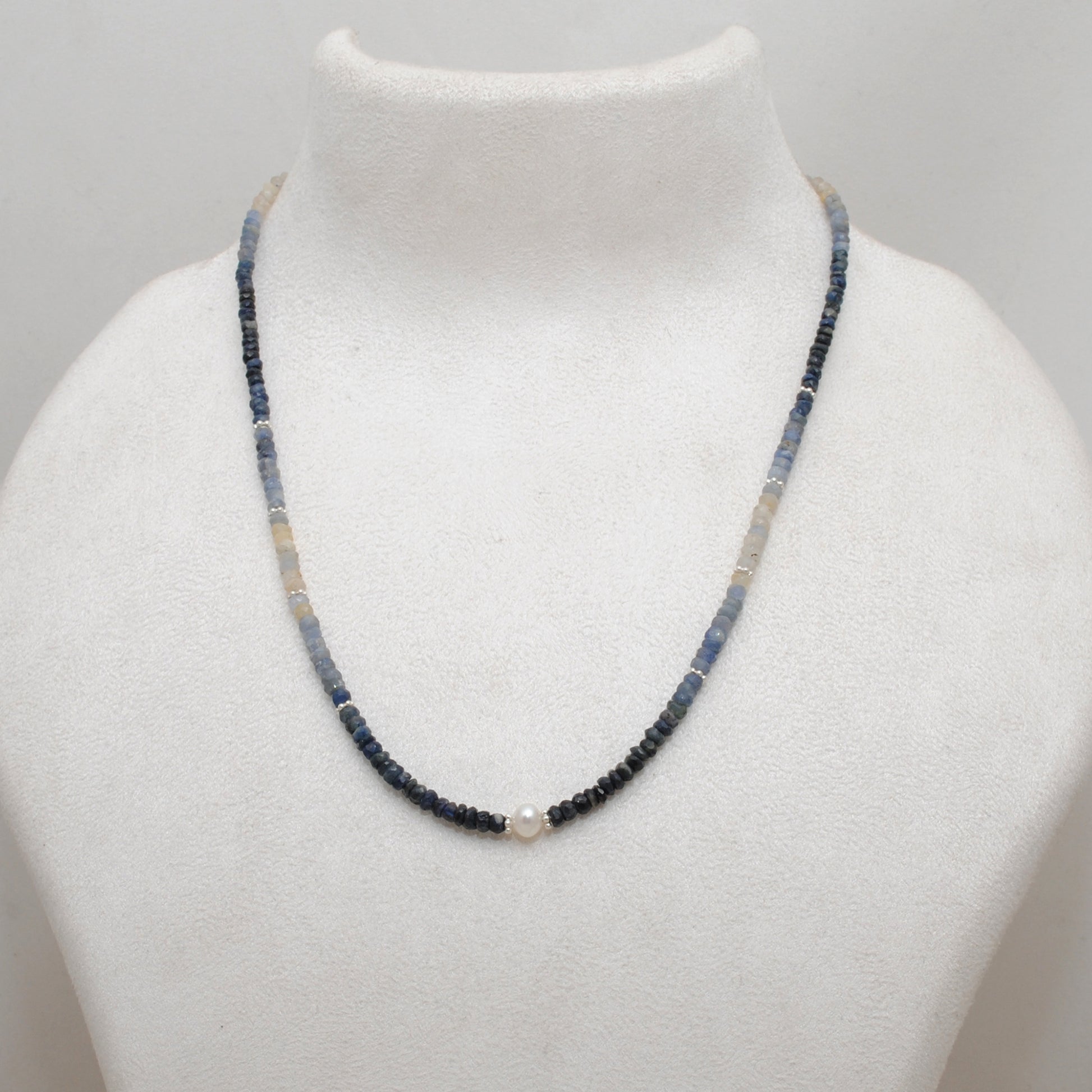 Natural Blue Sapphire Beaded Necklace 3–4mm with Freshwater Pearl Pendant